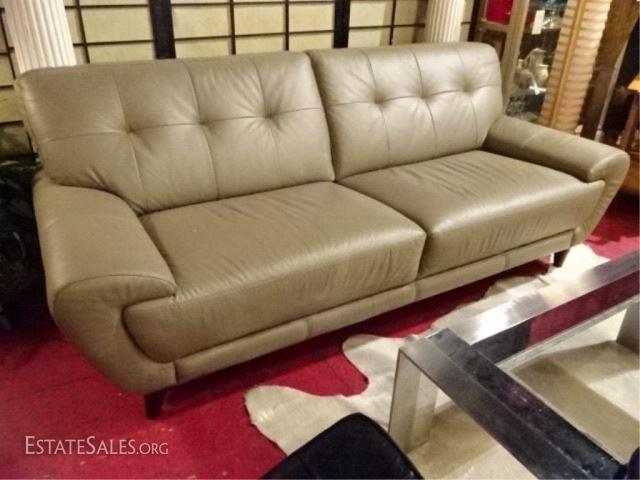 LOT 59: MODERN DESIGN TAUPE LEATHER SOFA - 2 AVAILABLE!