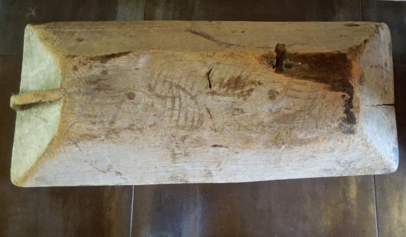 Lot 59: Primitive Wood Trench Kneading Bowl with Stones