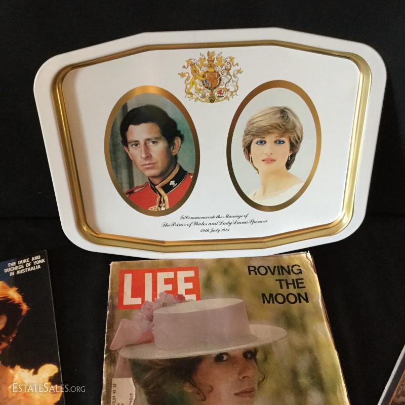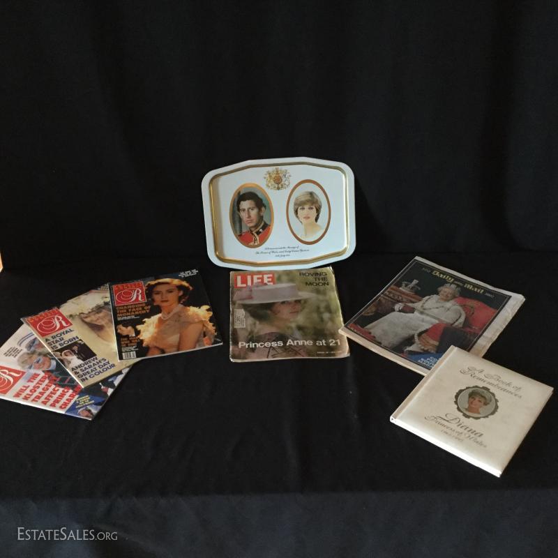 Princess Diana Book of Remembrances and collectible tray from marriage to Prince Of Wales. Royalty Monthly Magazines included.
