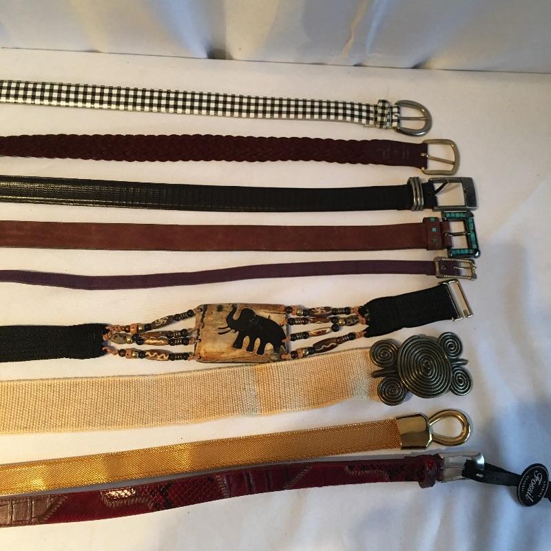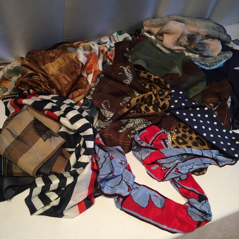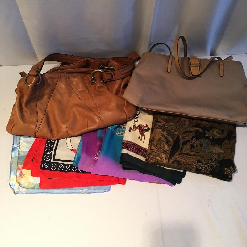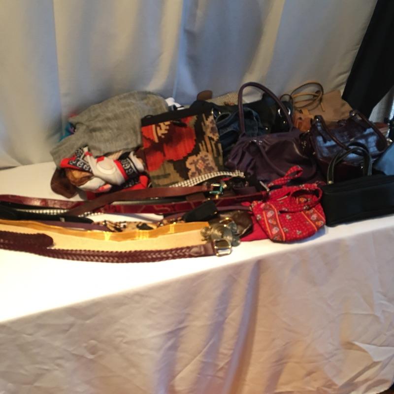 A plethora of scarves and dickies along with purses and belts make this a very useful lot. Brands include Tignanello, Tommy Hilfiger, Vera Bradley, Maxx, Fossil, Liz Claiborne and more.