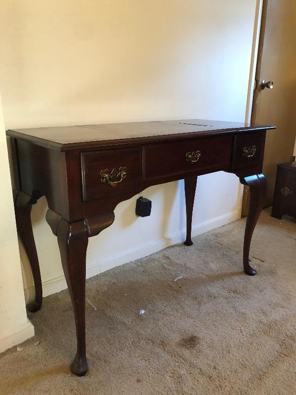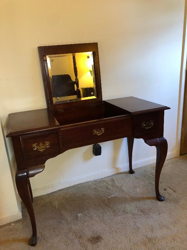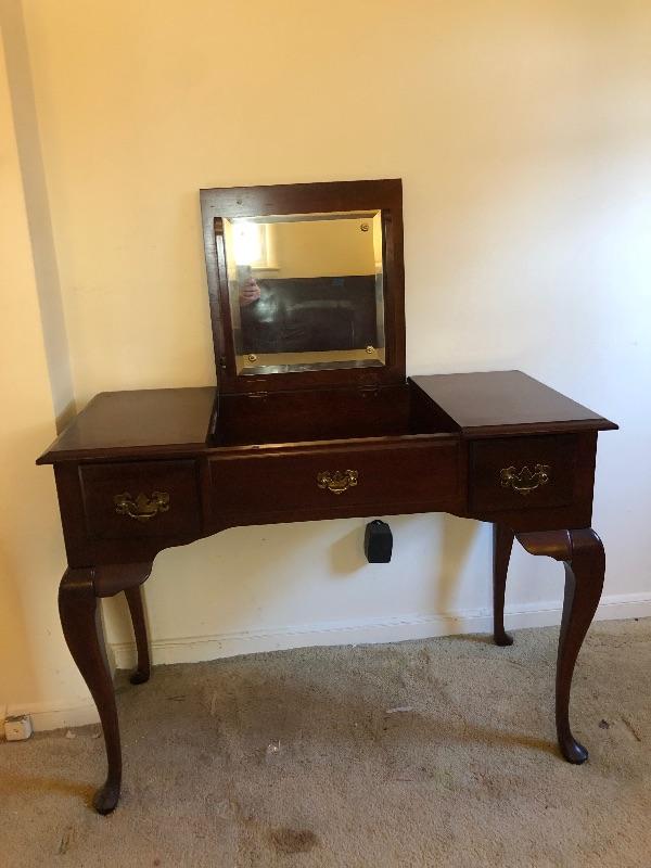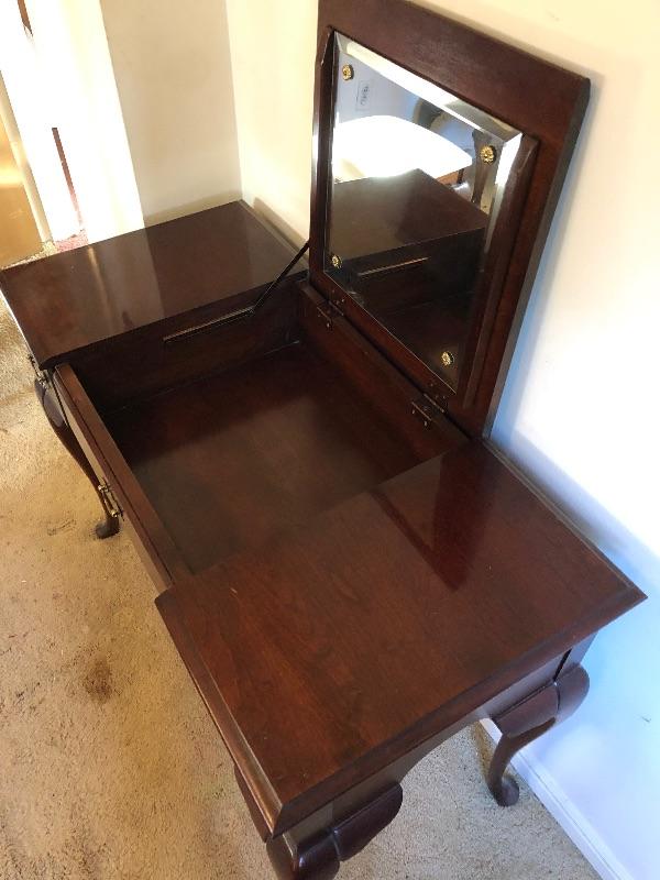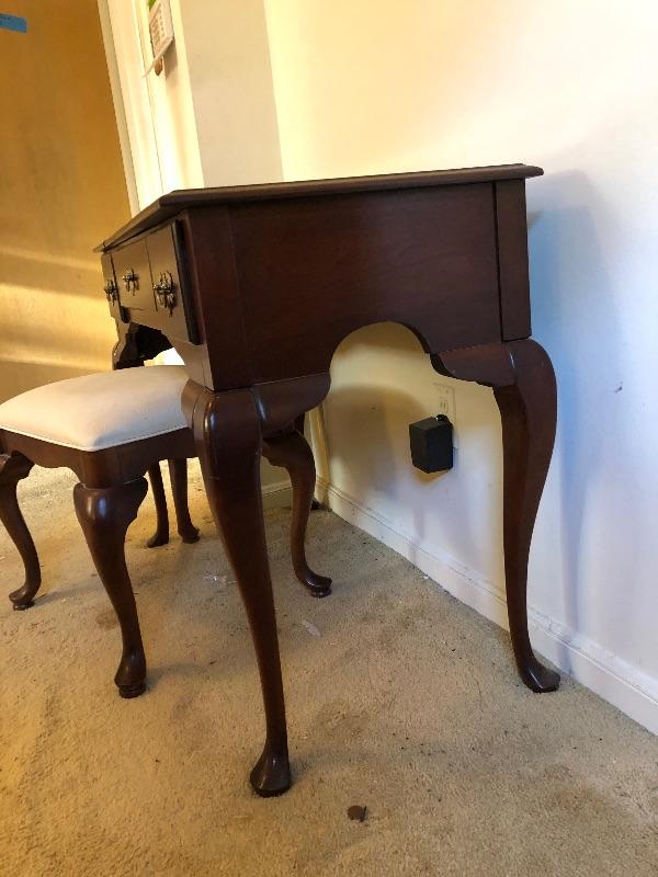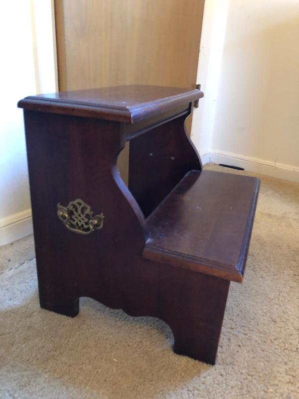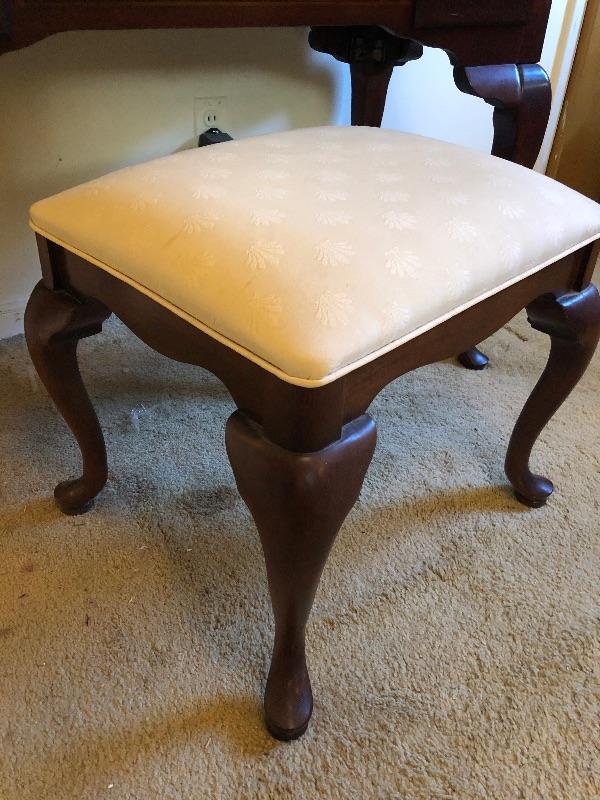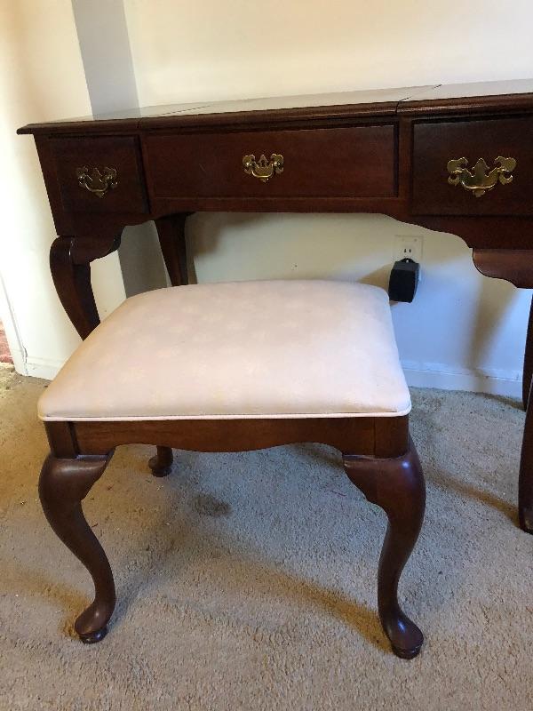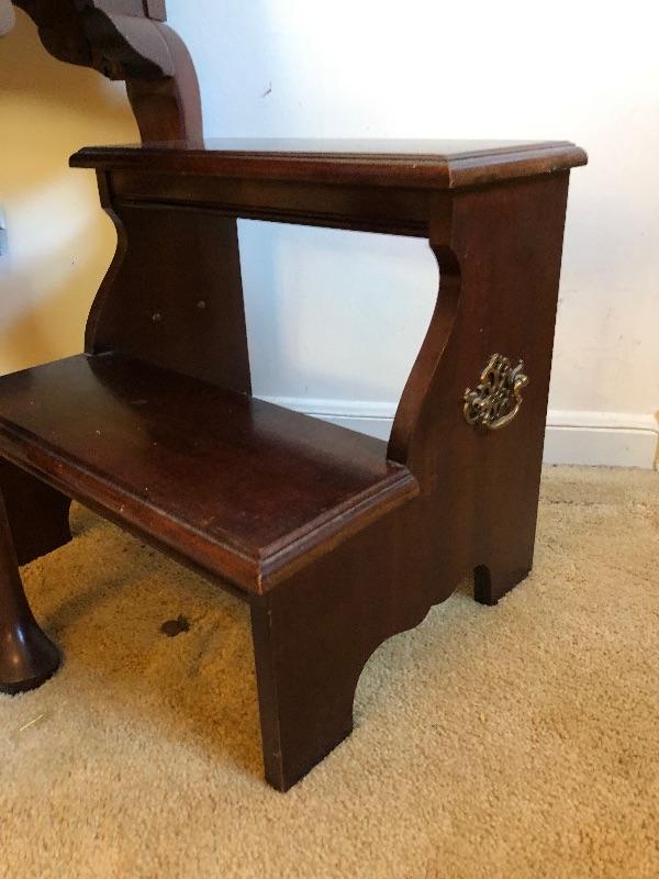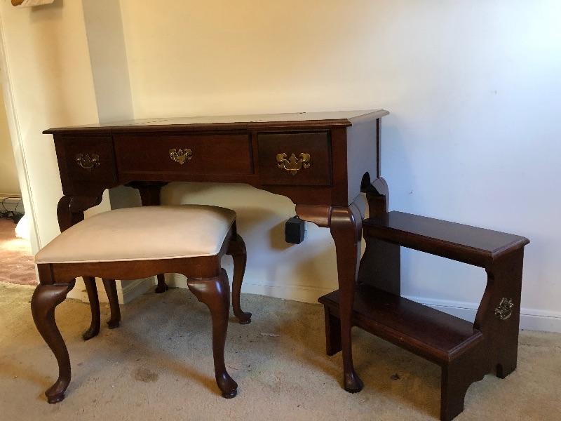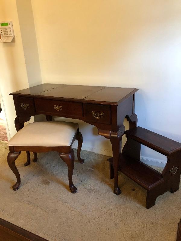 Mahogany Vanity with stool and wood steps. Stool has some washable marks.