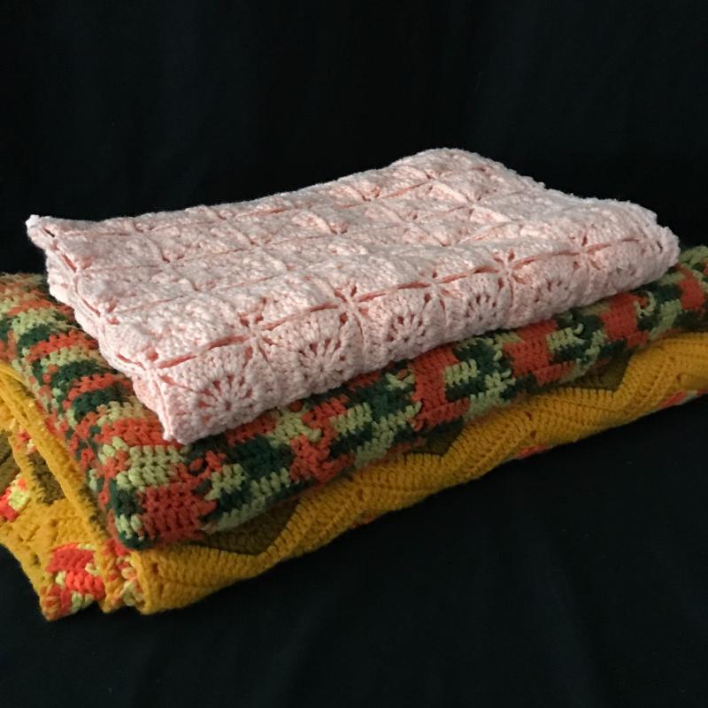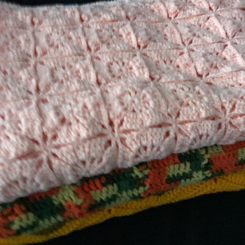 Hand knitted afghans. Largest measures 52” x 71”. Shipping or local pick up in Maggie Valley.