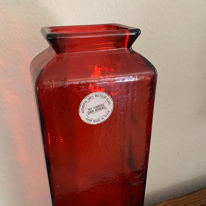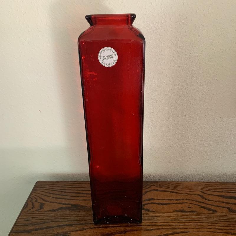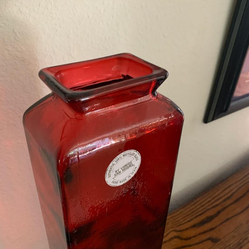 VIDRIOS SAN MIGUEL RED VASE. W5.5" D3.5 "H 22"