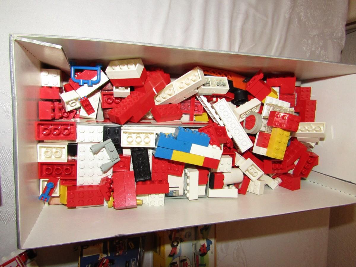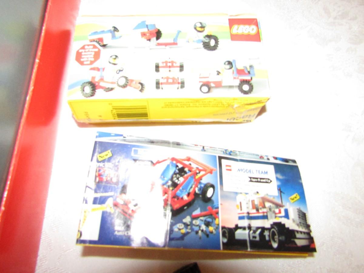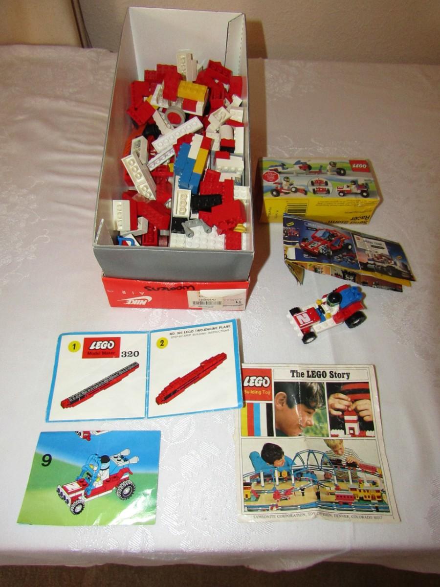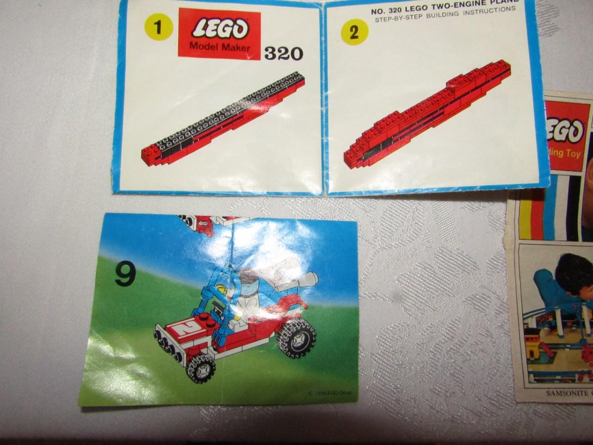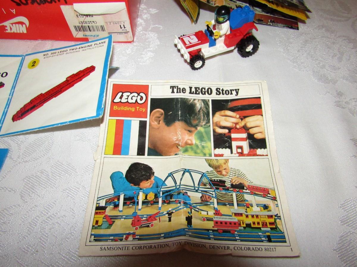 SHOEBOX OF VINTAGE LEGOS INCLUDING A 3 DIGIT NUMBER LEGO SET, INSTRUCTION BOOKS AND ADDITIONAL LEGO PIECES