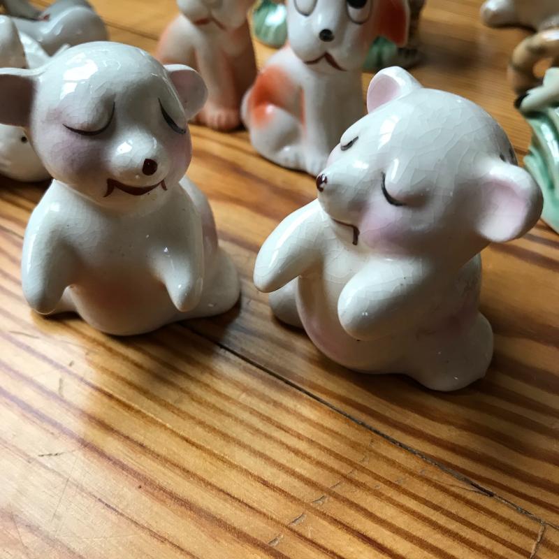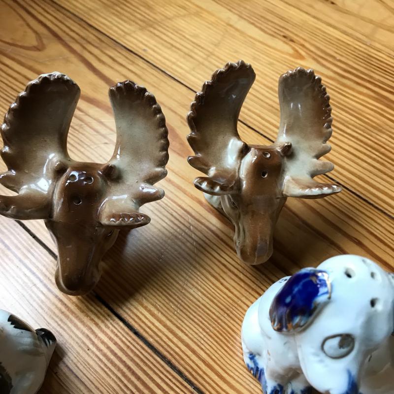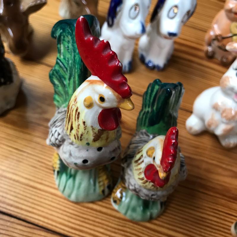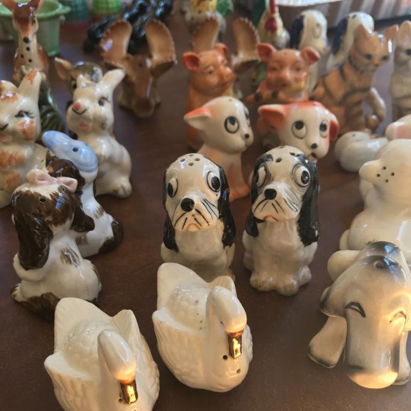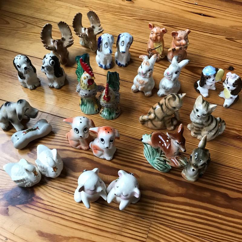 13 sete of vintage salt and pepper shakers. All are old and show signs of wear but seem to be in good condition. Not all have corks in bottom. Shipping available or local pickup in Asheville, NC.