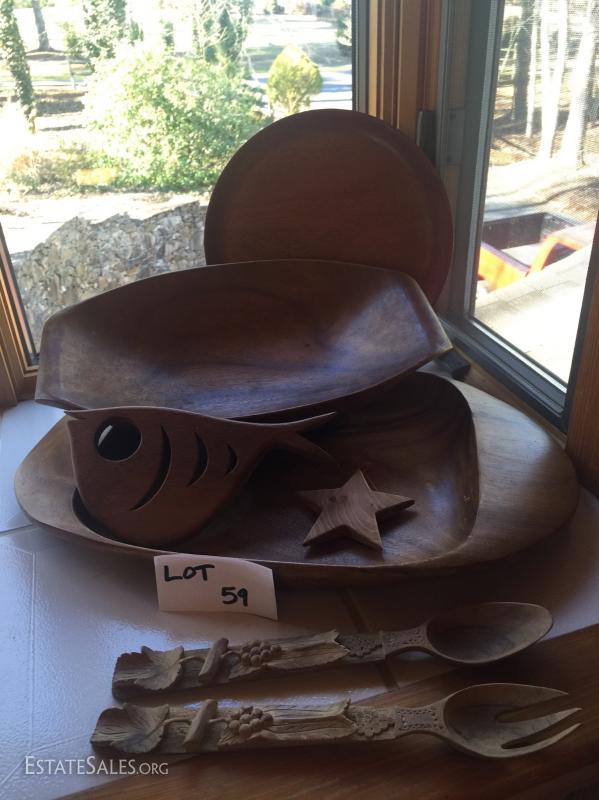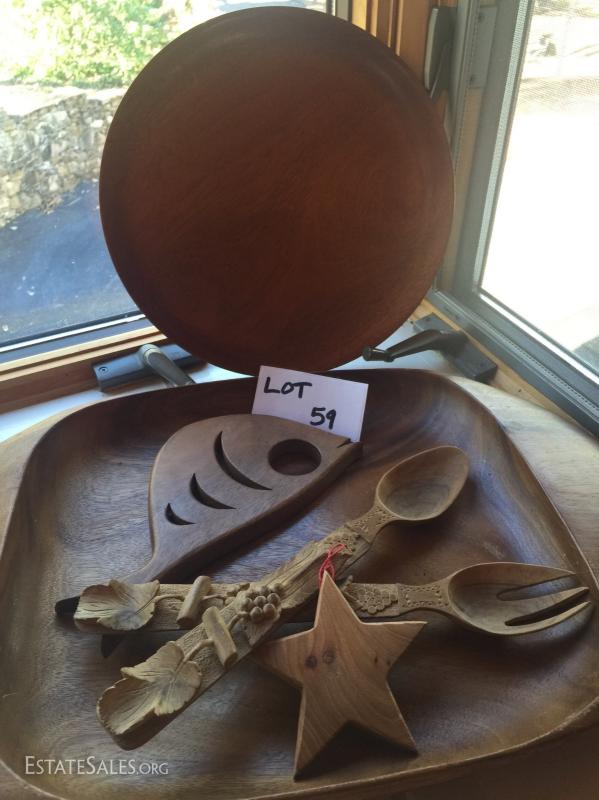 Lot 59  - Wood Platter, plate, bowl, serving pieces and decor.