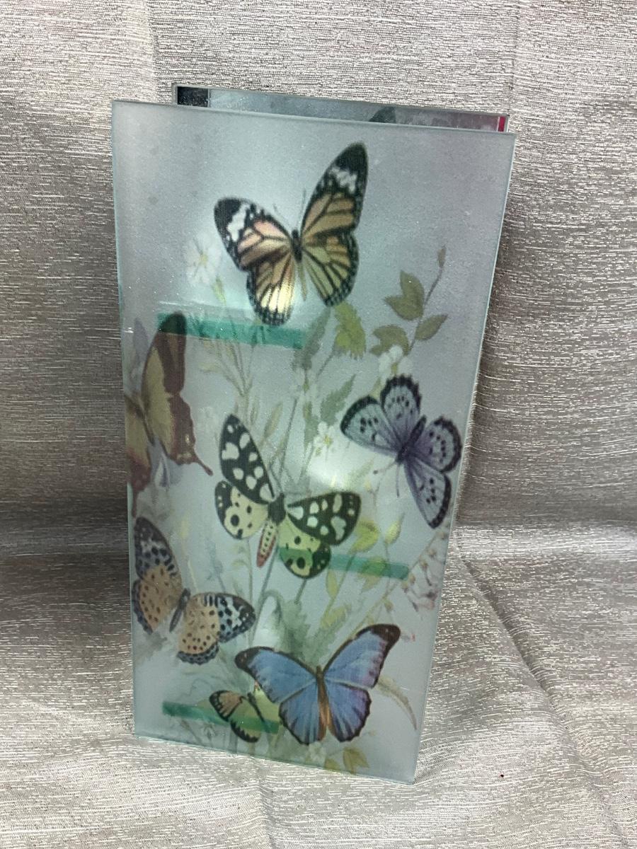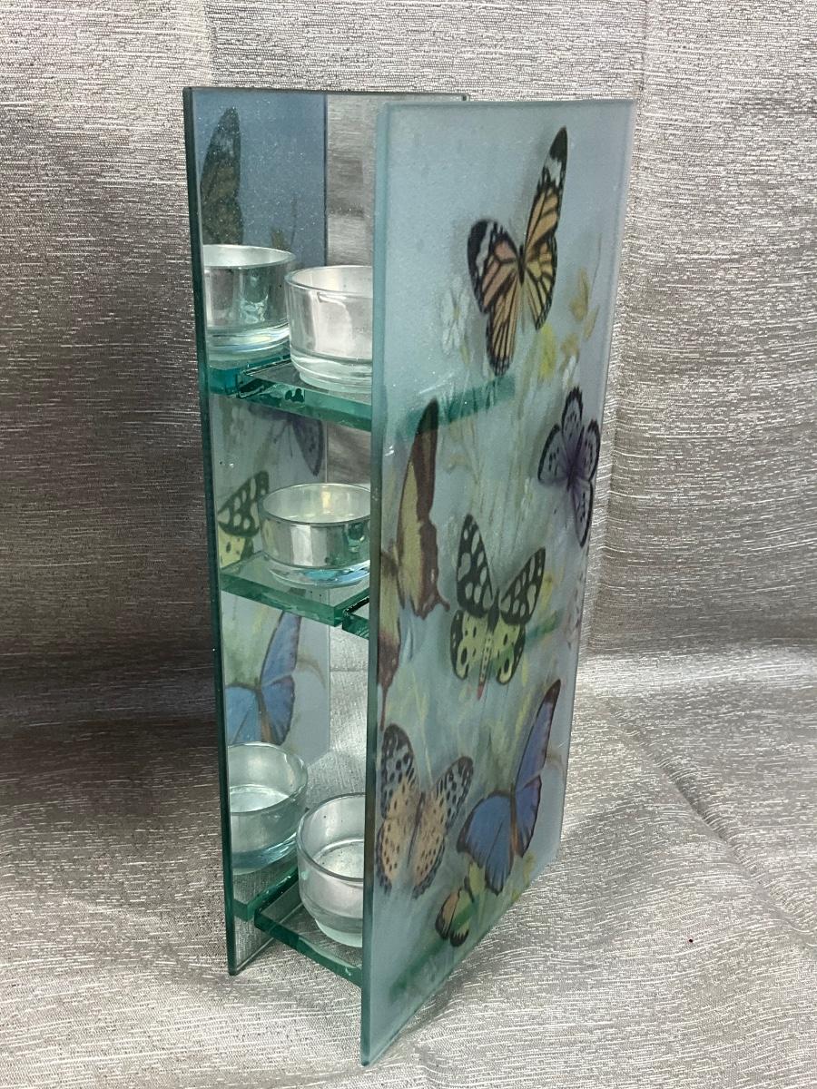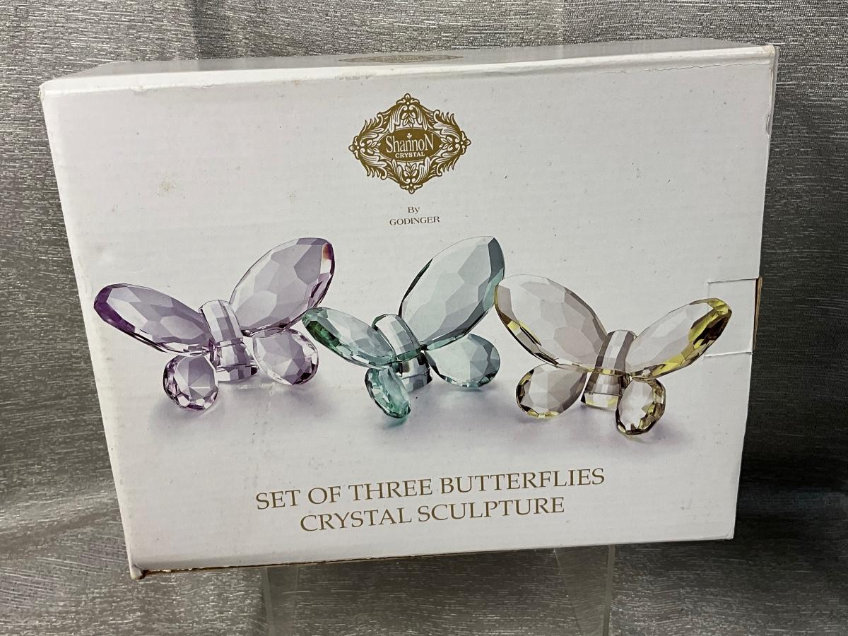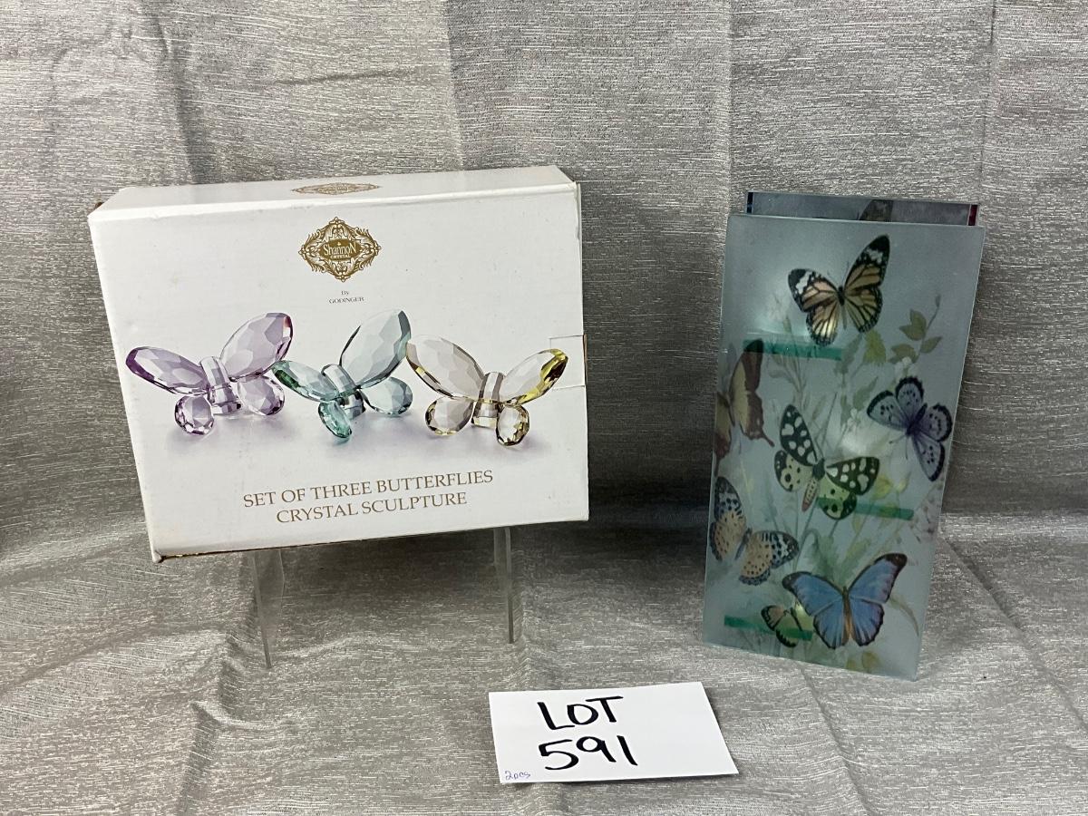 The lot contains Shannon crystal trio of butterflies, butterfly 3 tier votive holder.