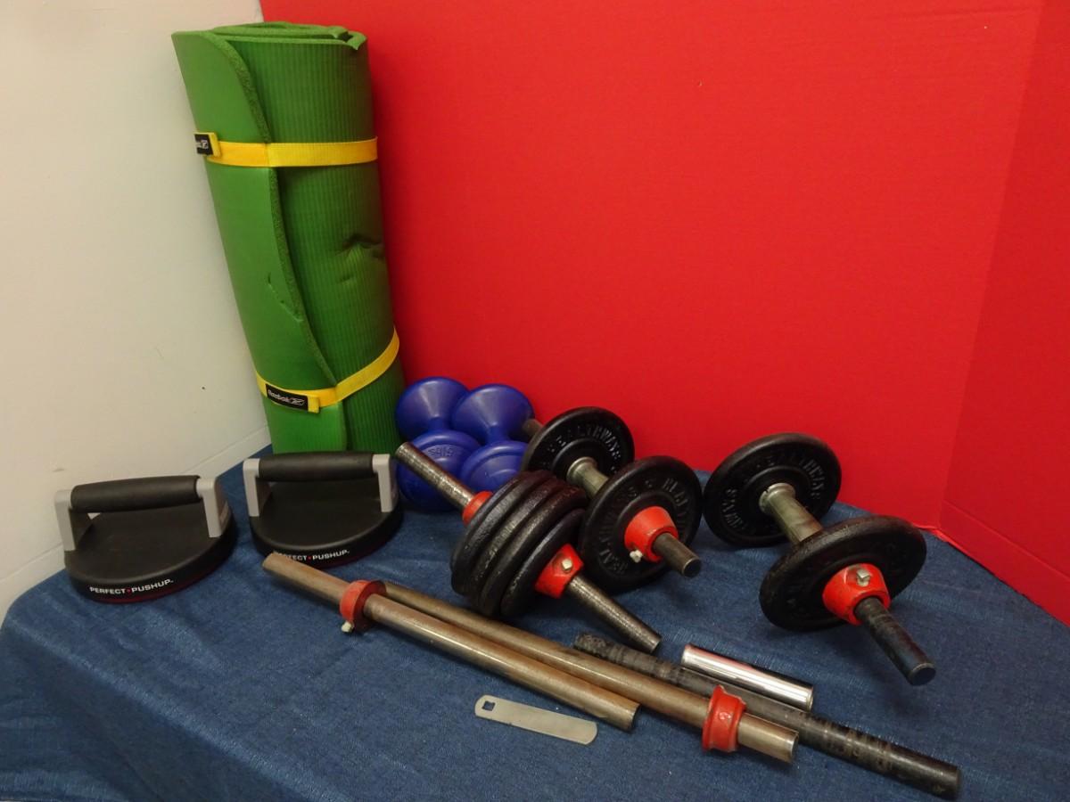 LOT 593. WEIGHTS AND EXERCISE GEAR