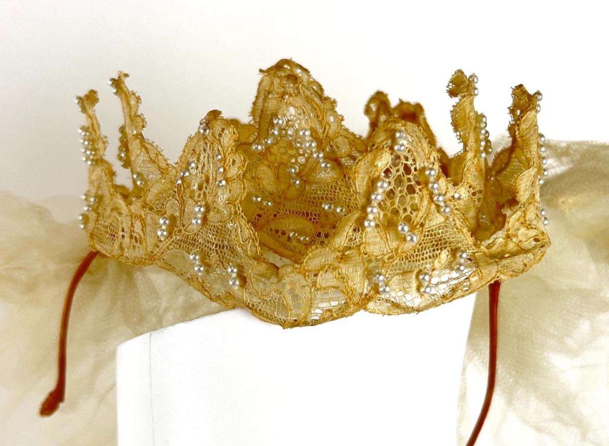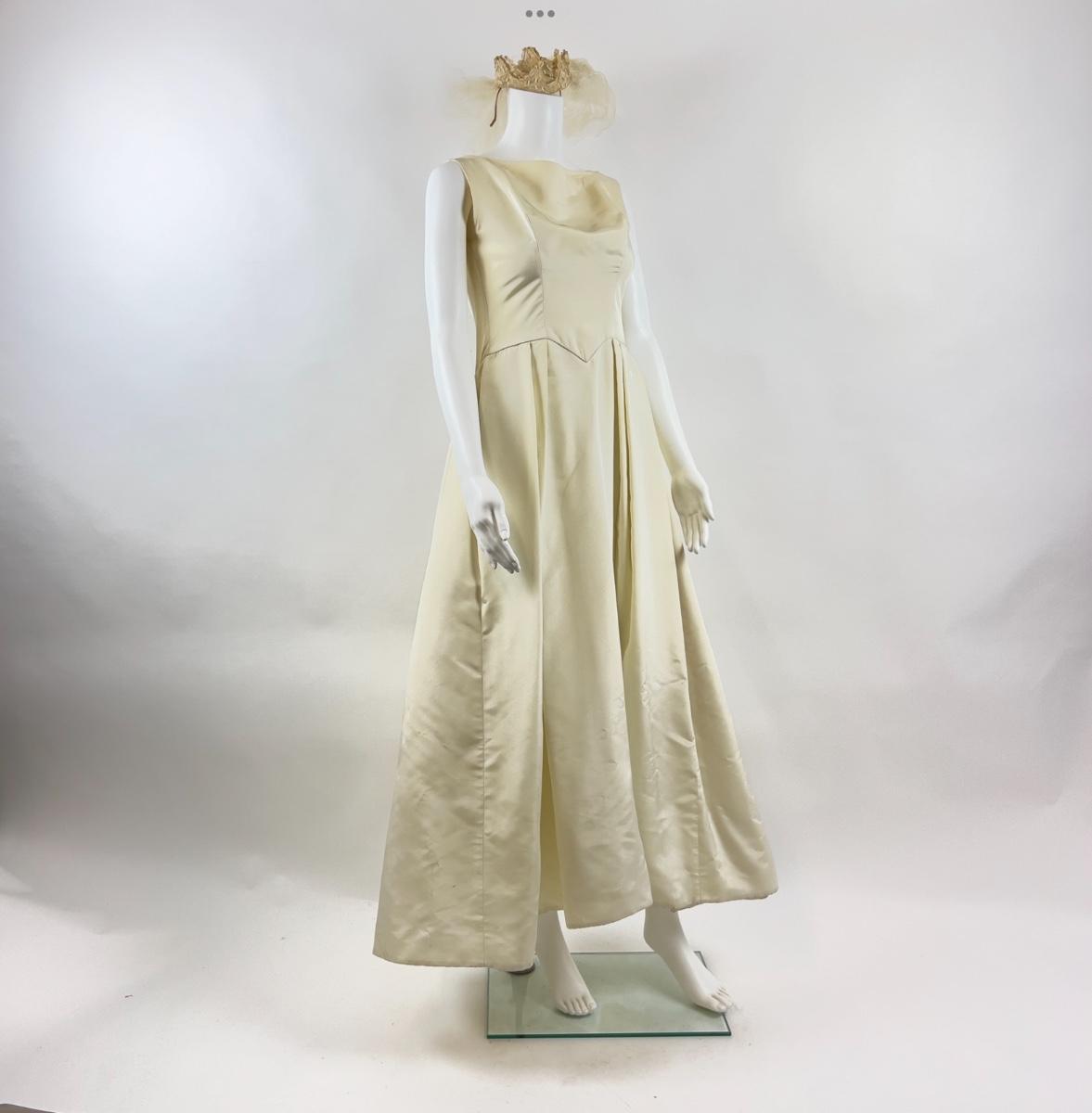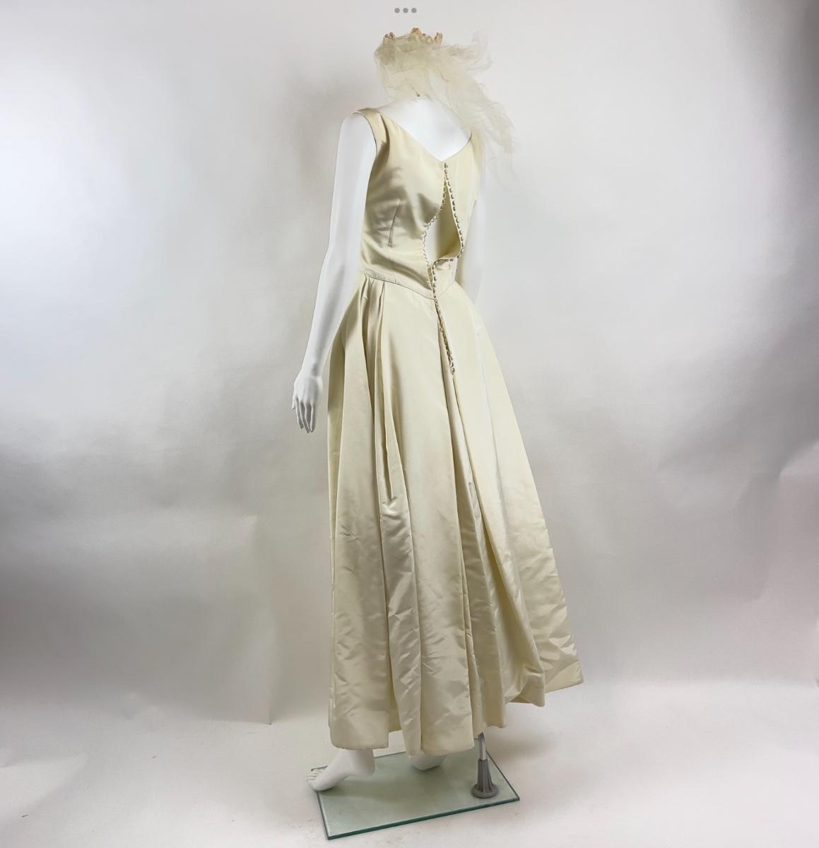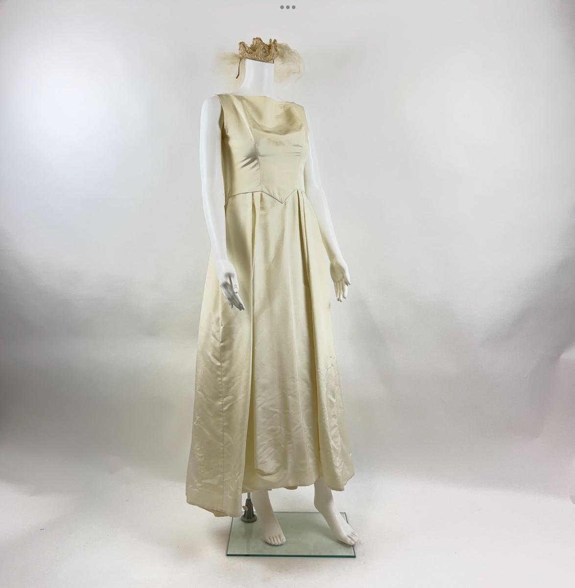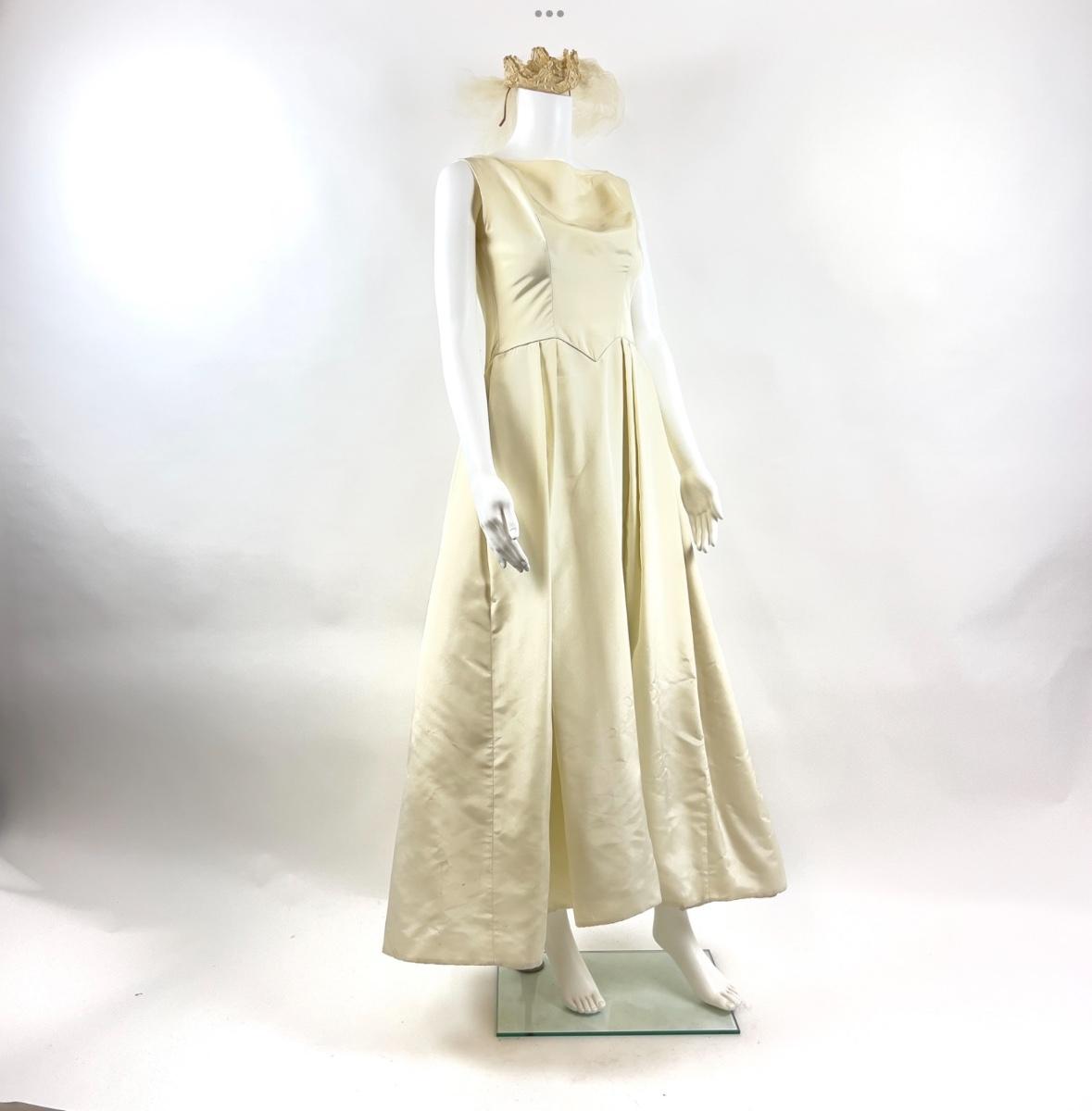 Vintage Off-White Taffeta Wedding Dress & Vail