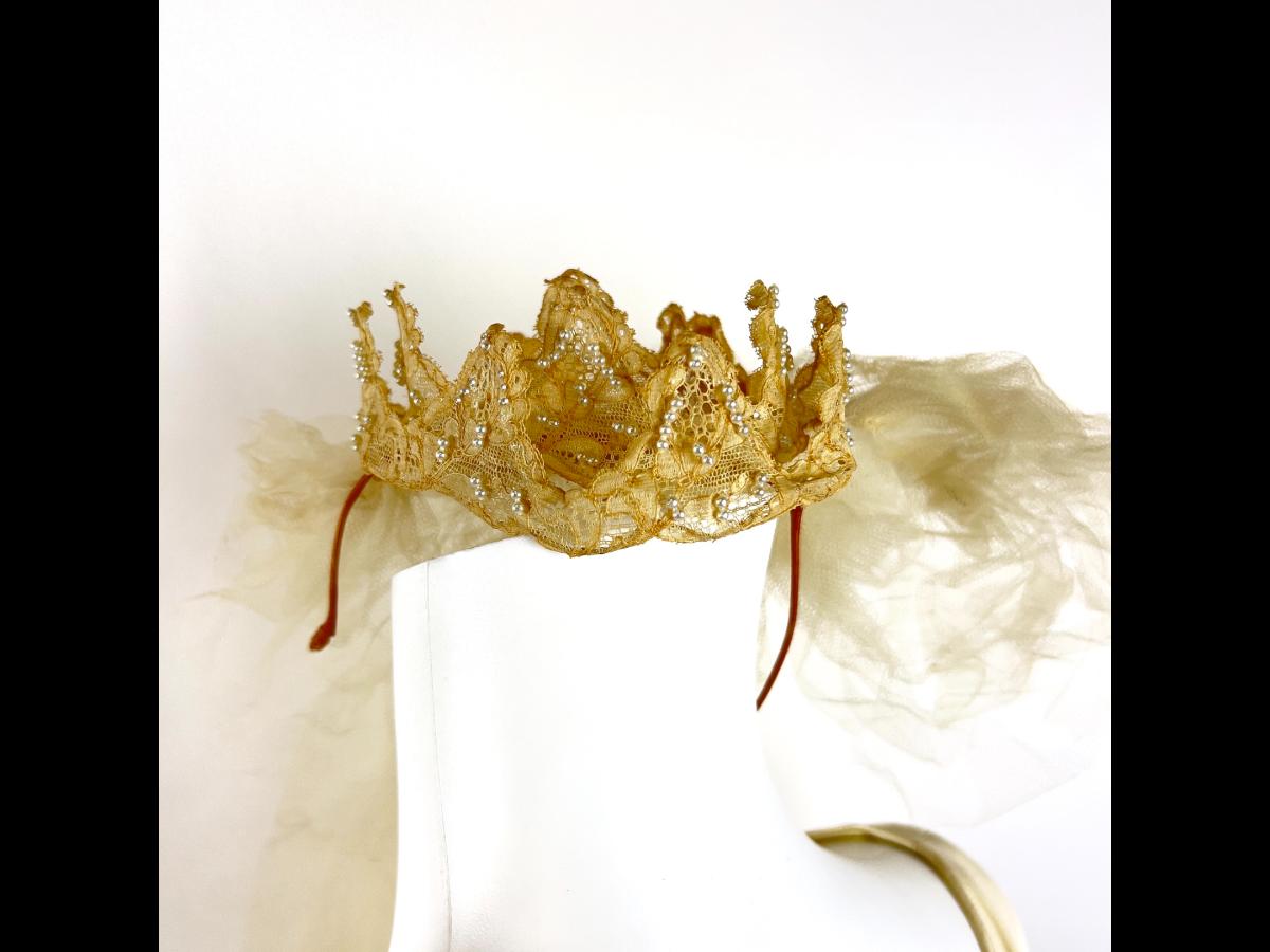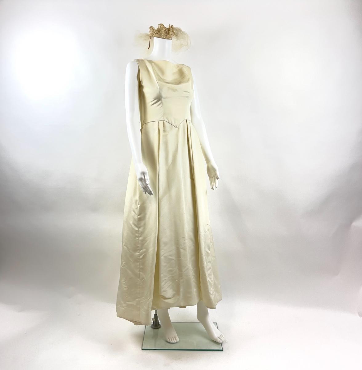 Lot 595 Vintage Off-White Taffeta Wedding Dress & Vail