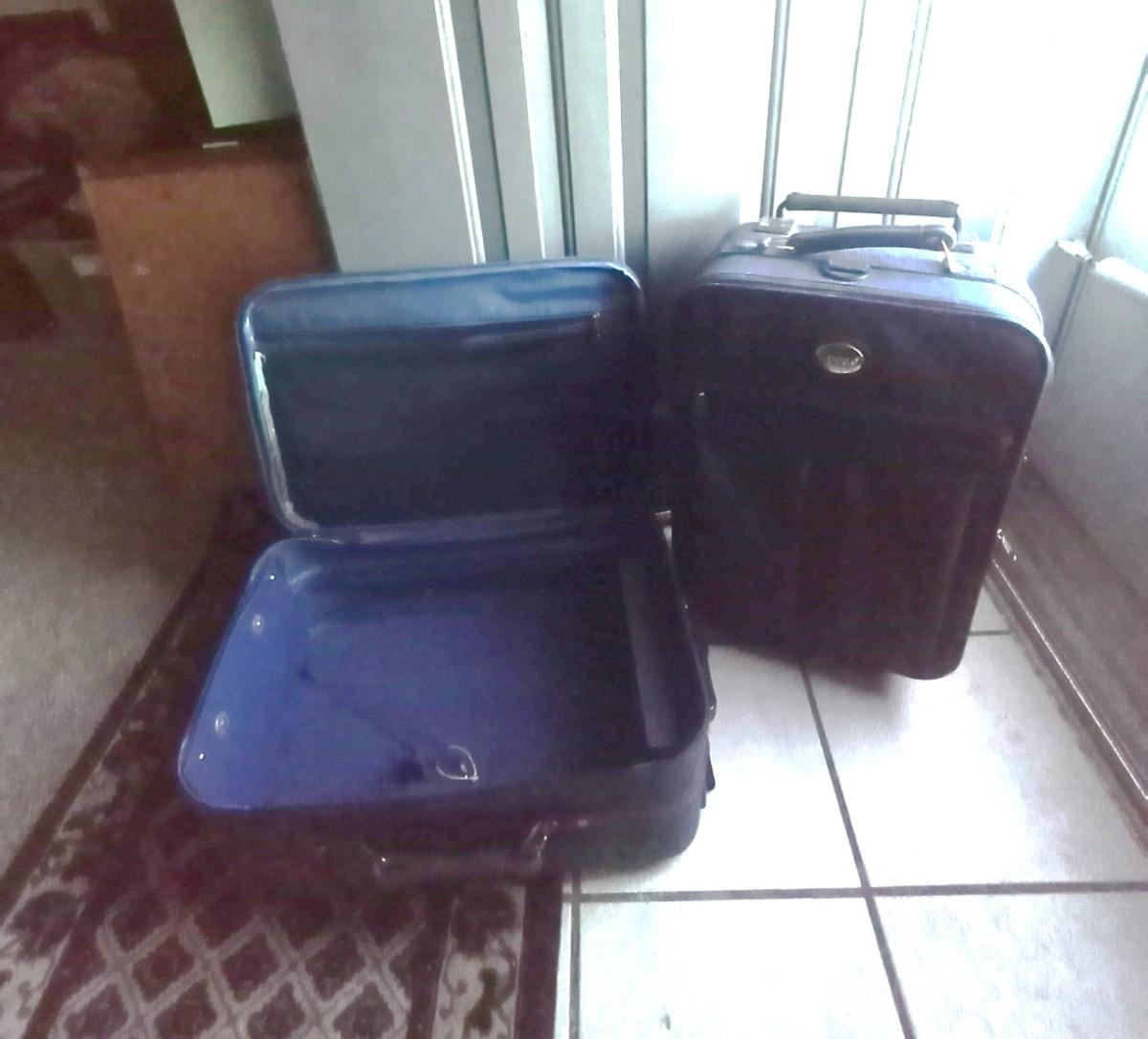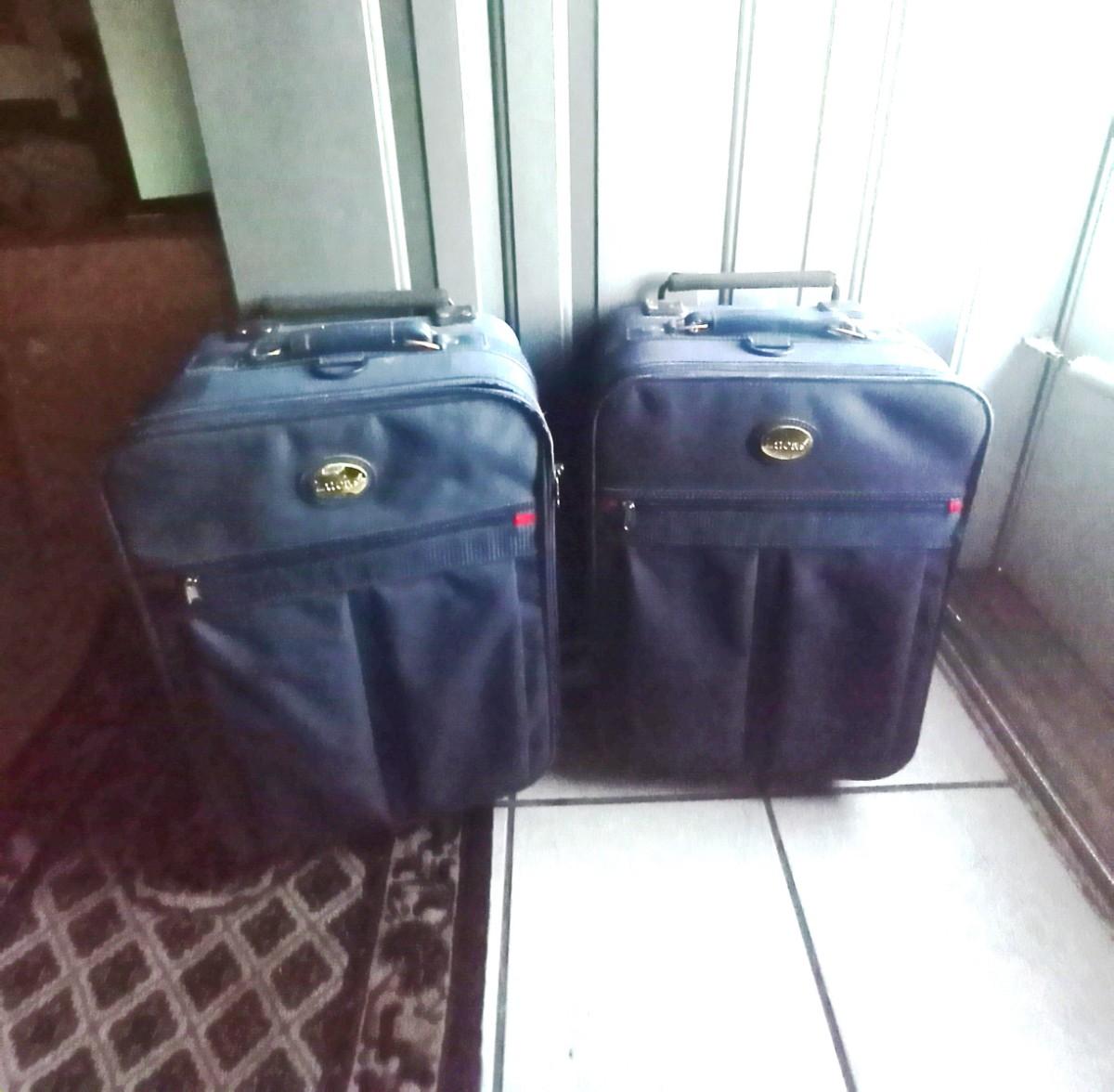 TWO MATCHING LUCAS SUITCASES ON CASTERS WITH PULL HANDLES