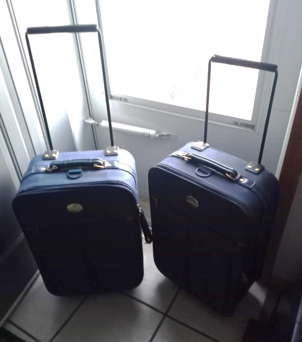 2 MATCHING SUITCASES ON WHEELS WITH PULL HANDLES APPROX. 14X22"