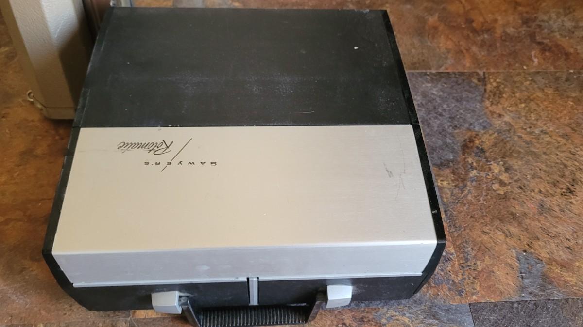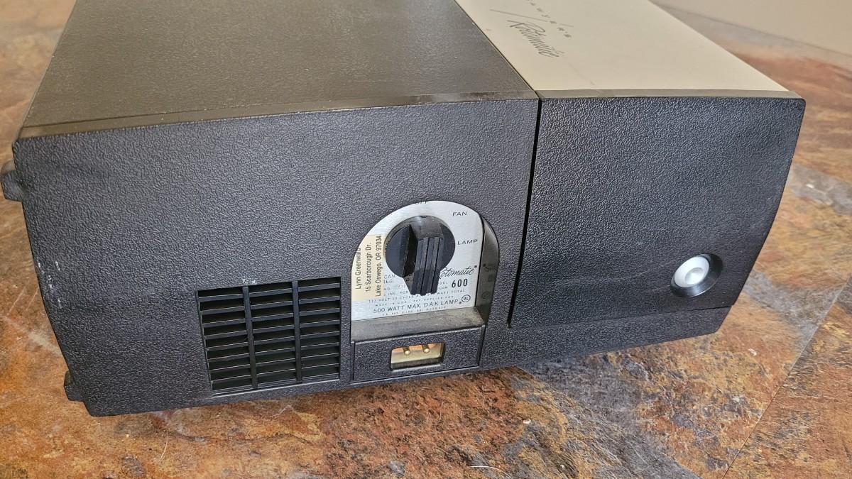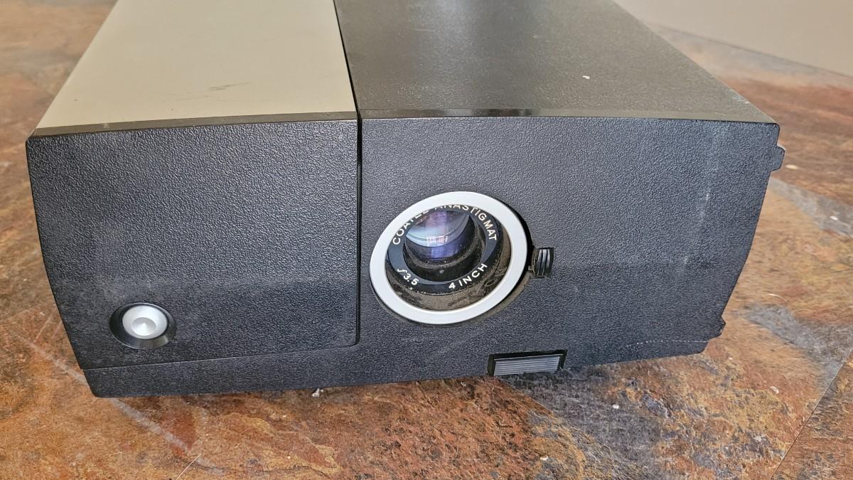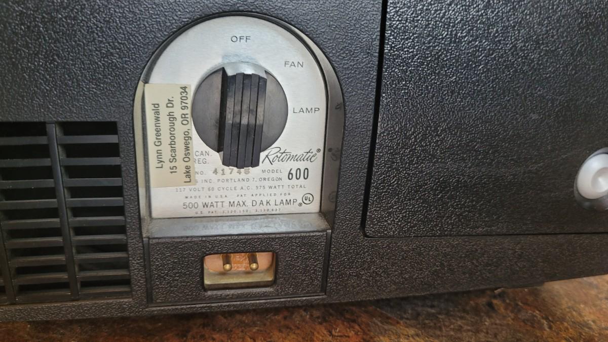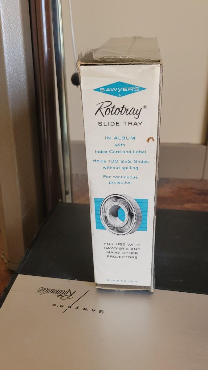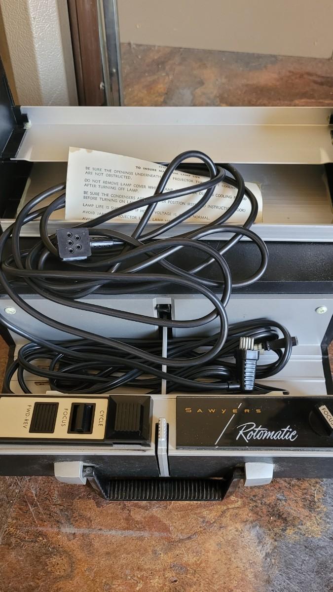 Lot 596: Vintage Projection Screen, Sawyers Rotomatic 600 Projector and Rotary Slide Tray