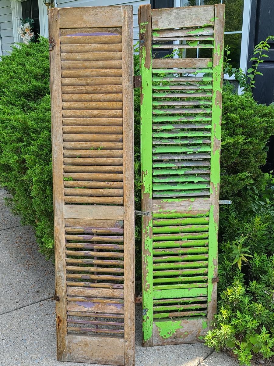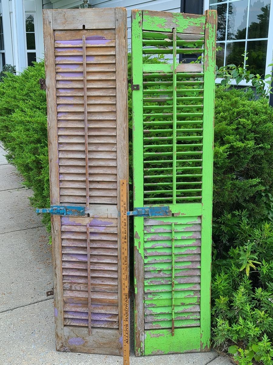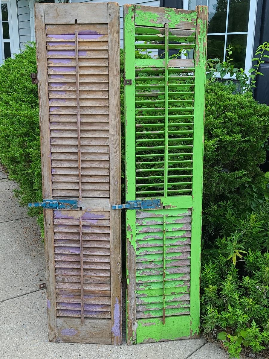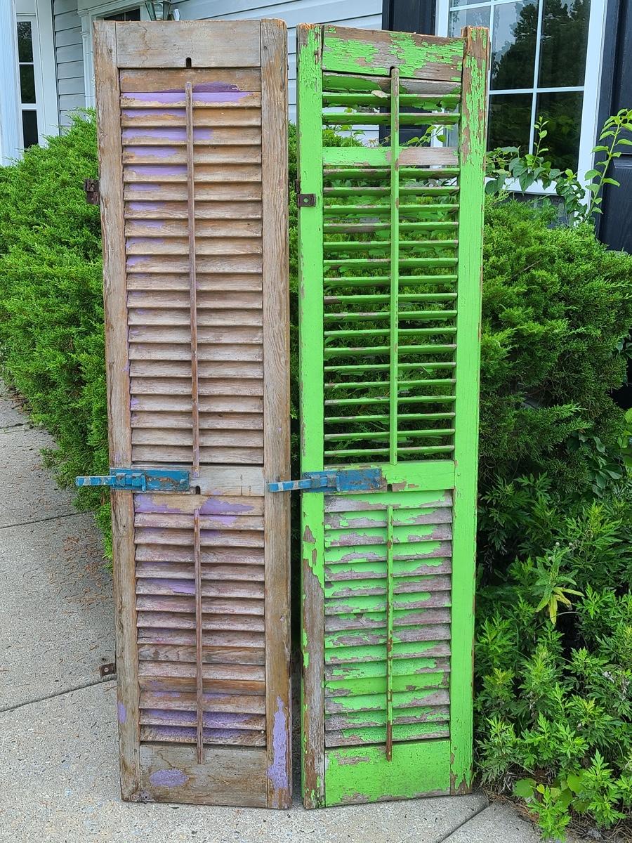 Lot 69: Antique Wood Shutters (Lilac & Lime Green)