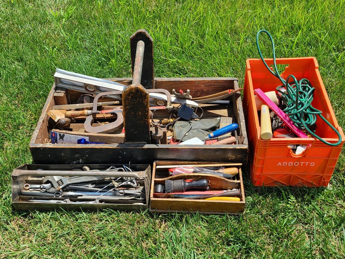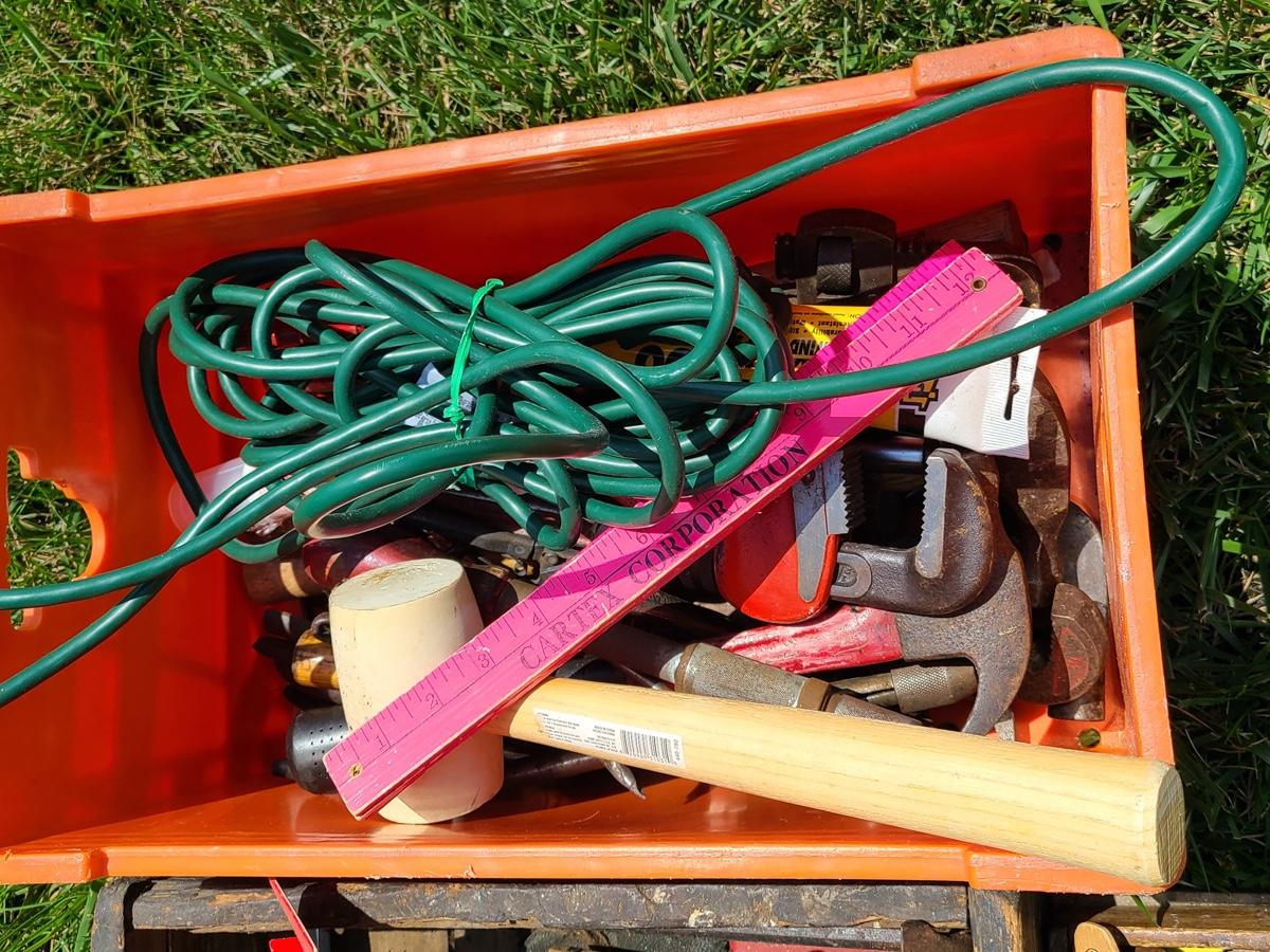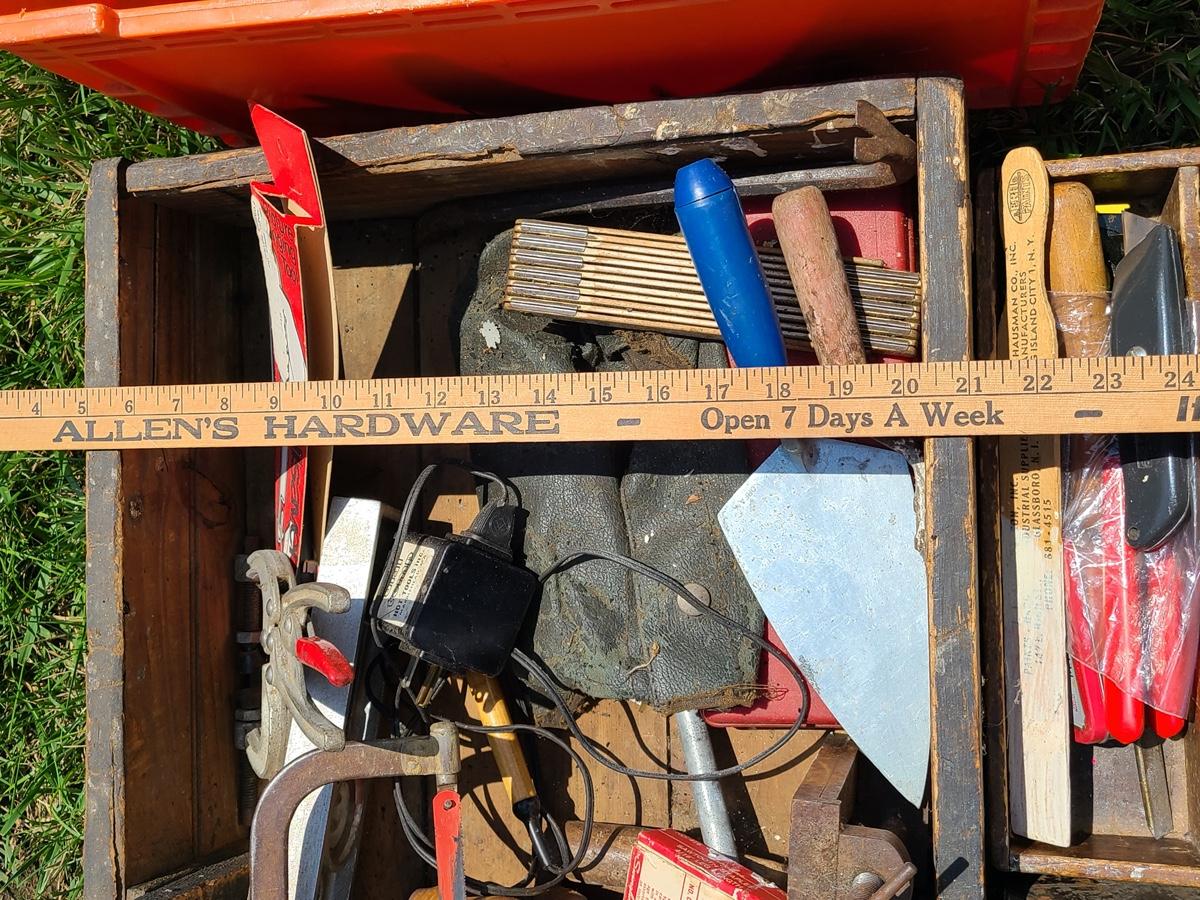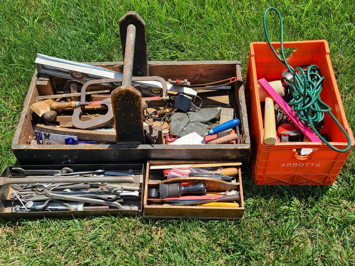 Lot G5: Tool Lot/ Vintage Wood Tool Tray/Extension Cords