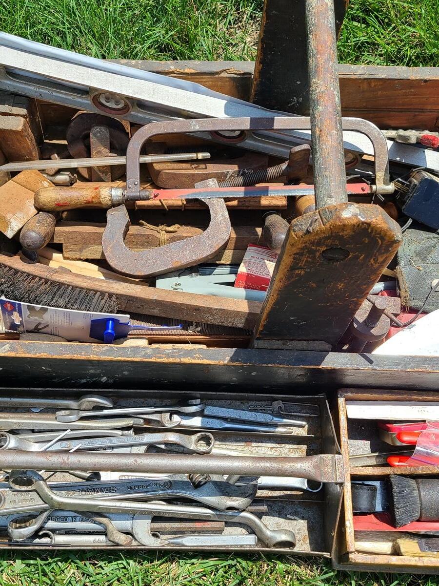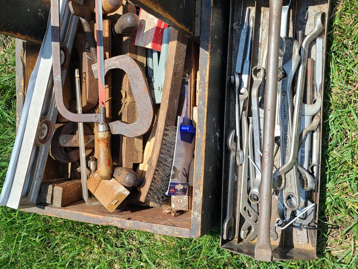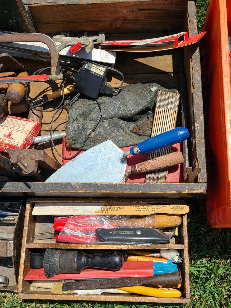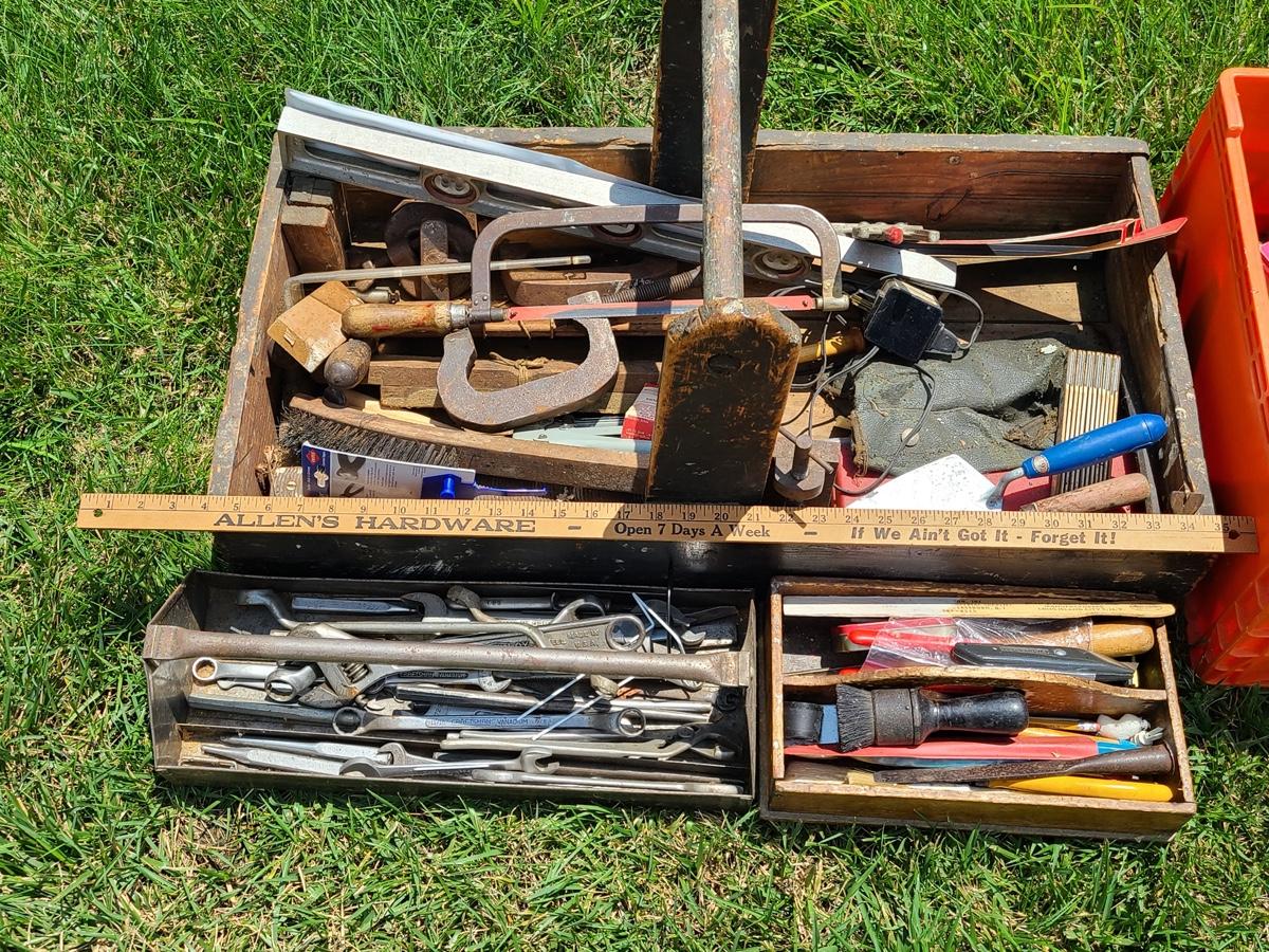Lot G5: Tool Lot/ Vintage Wood Tool Tray/Extension Cords