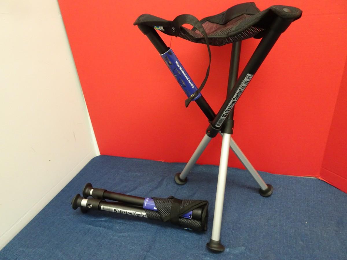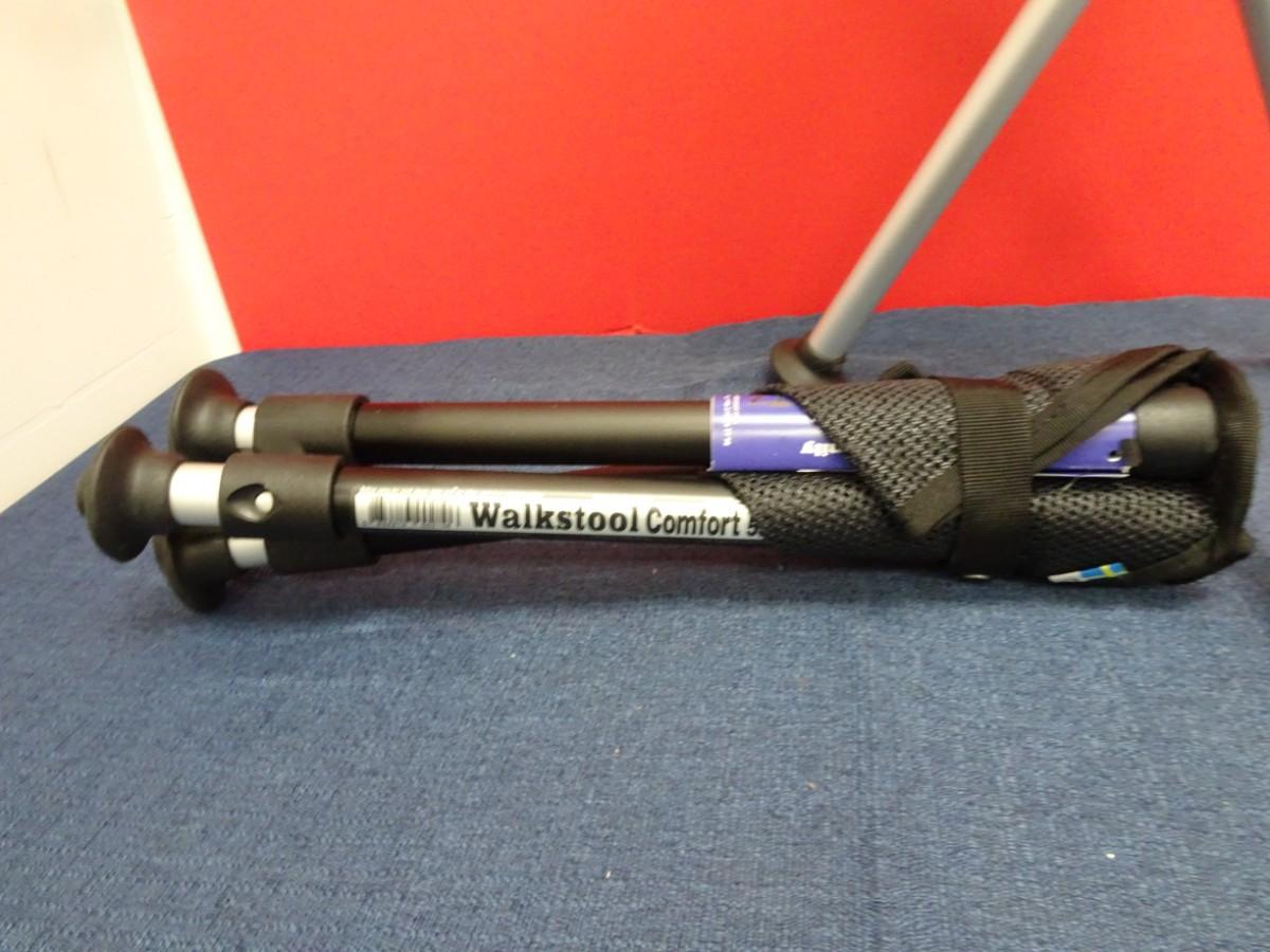 LOT 597. TWO WALKSTOOL BRAND ALUMINUM FOLDING STOOLS (MADE IN SWEDEN)