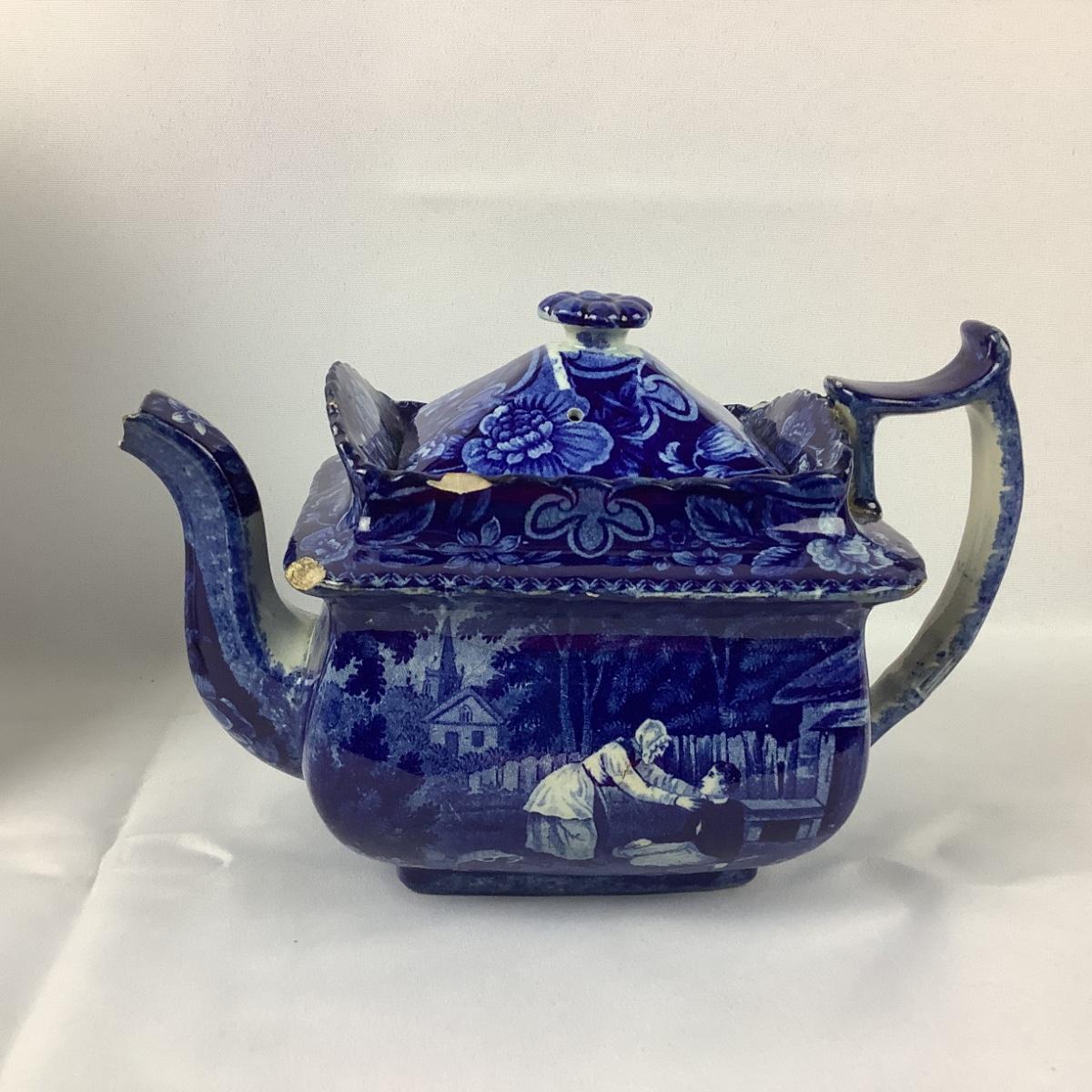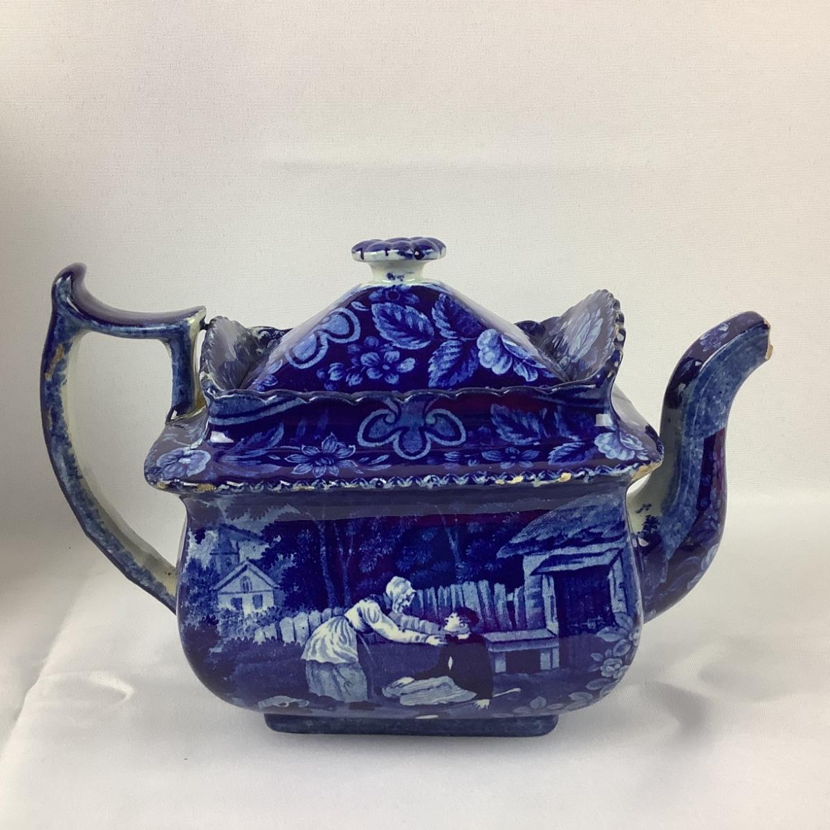 - Vintage, 19th Century FloBlue Teapot, deep rich color.