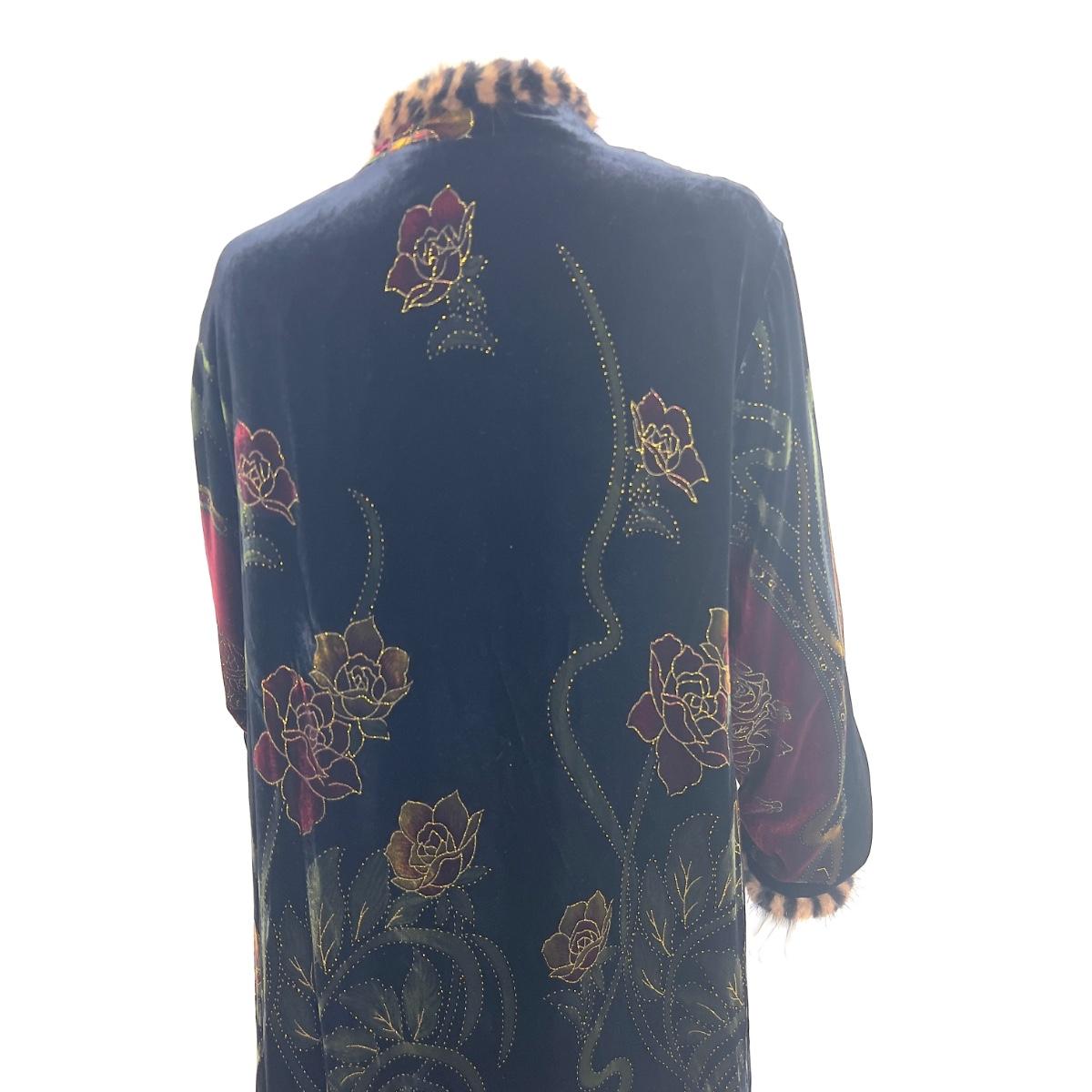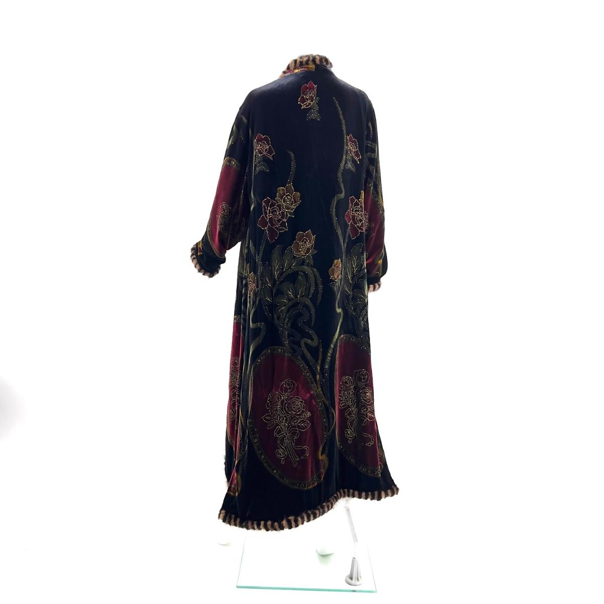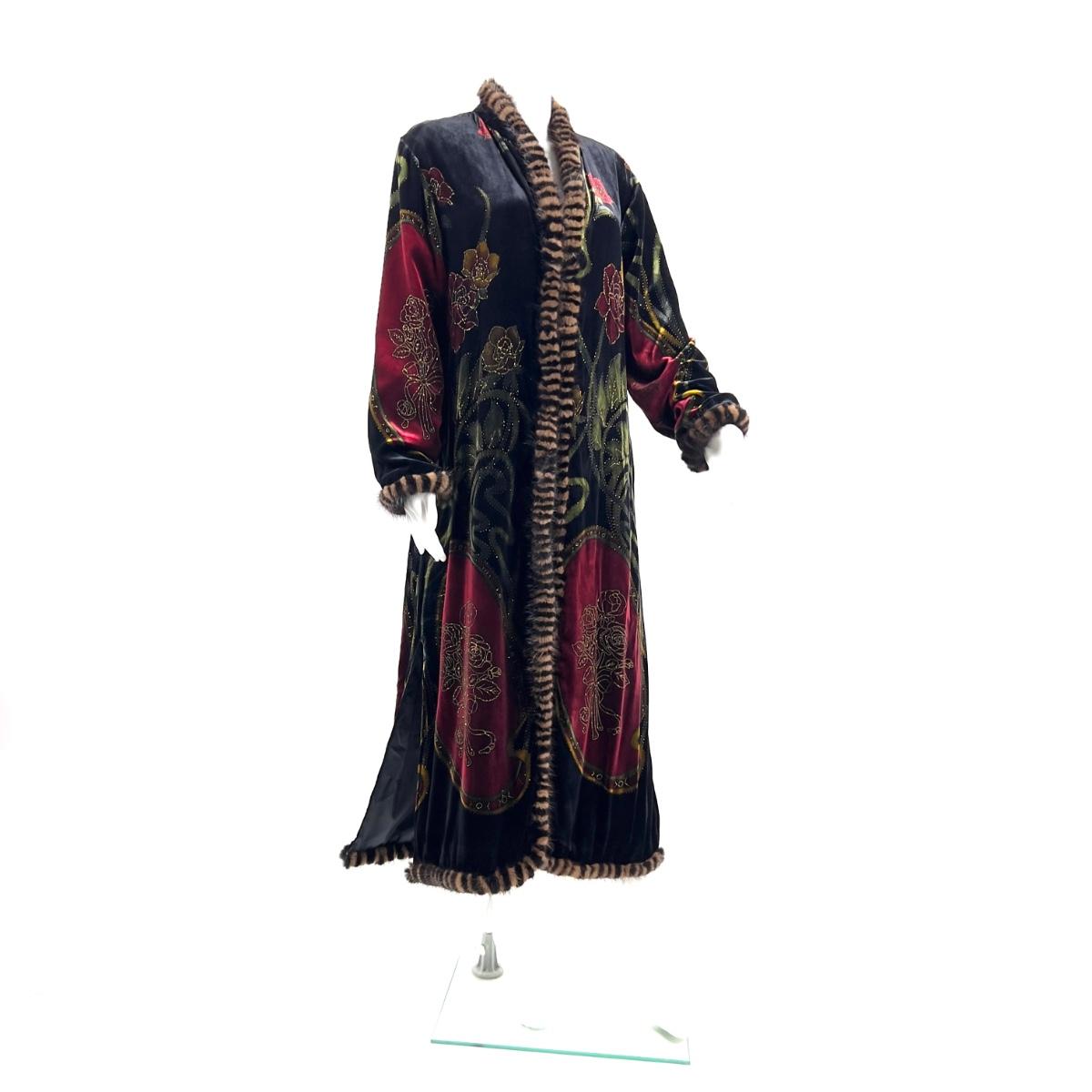 Vintage Jinjiao Crushed-Velvet Cover, Faux Fur Trim, Side Slits