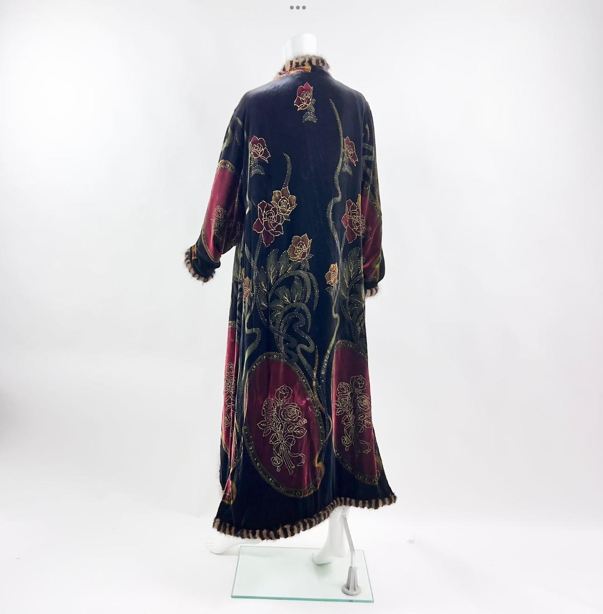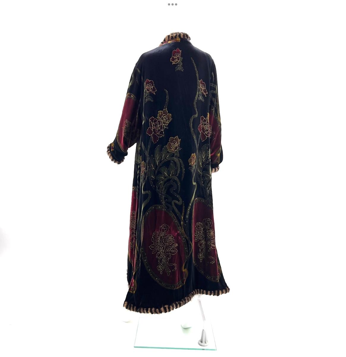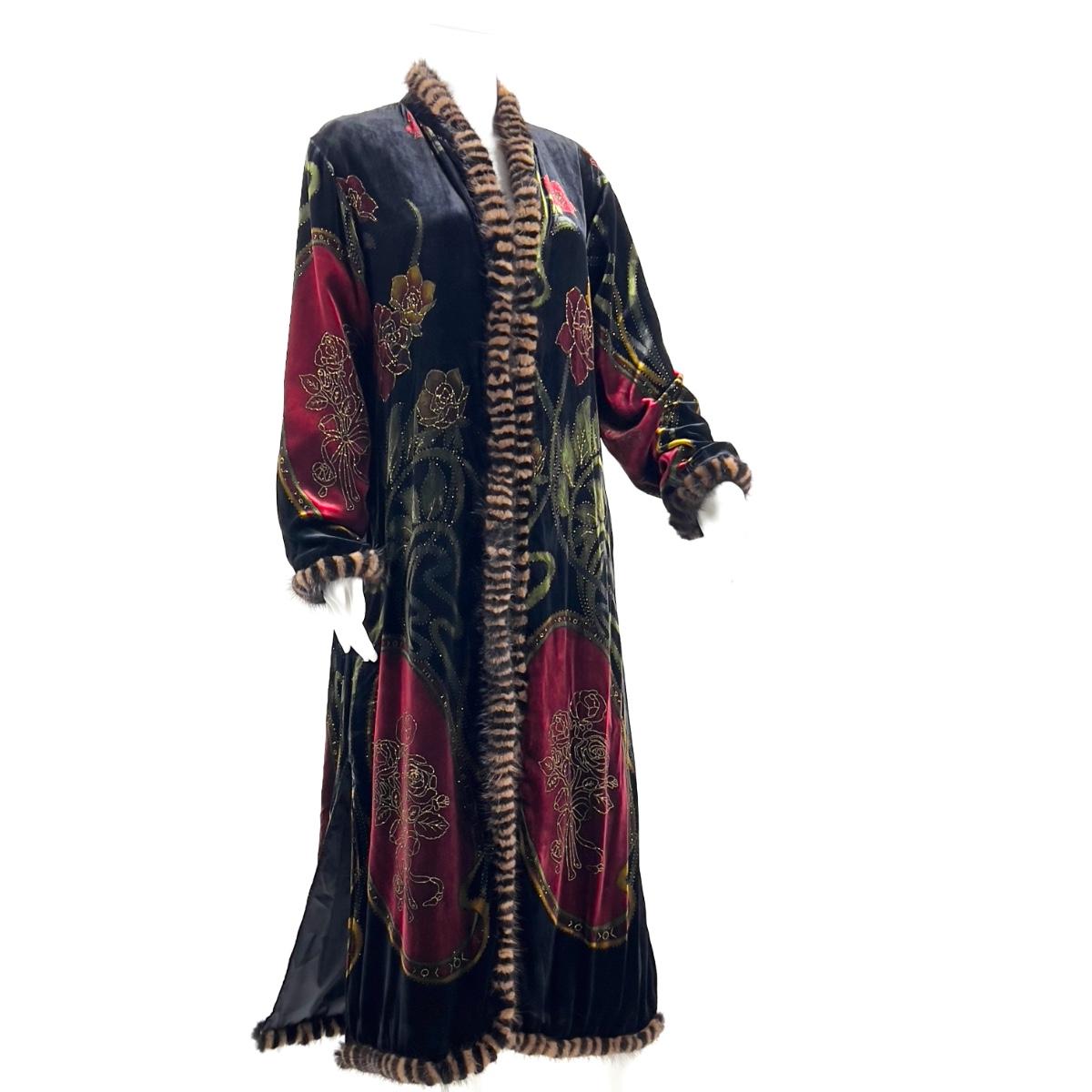 Vintage Jinjiao Crushed-Velvet Cover, Faux Fur Trim, Side Slits