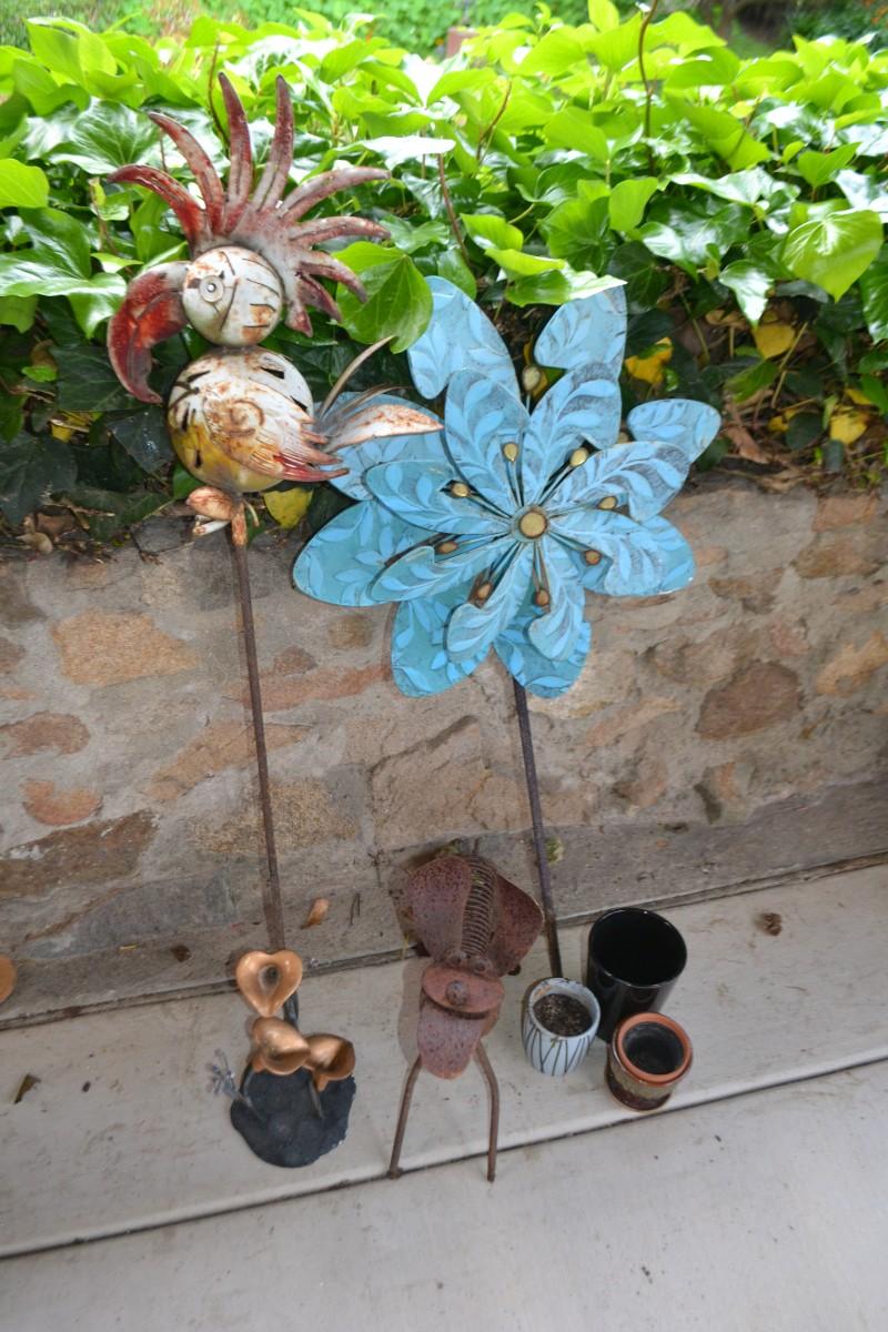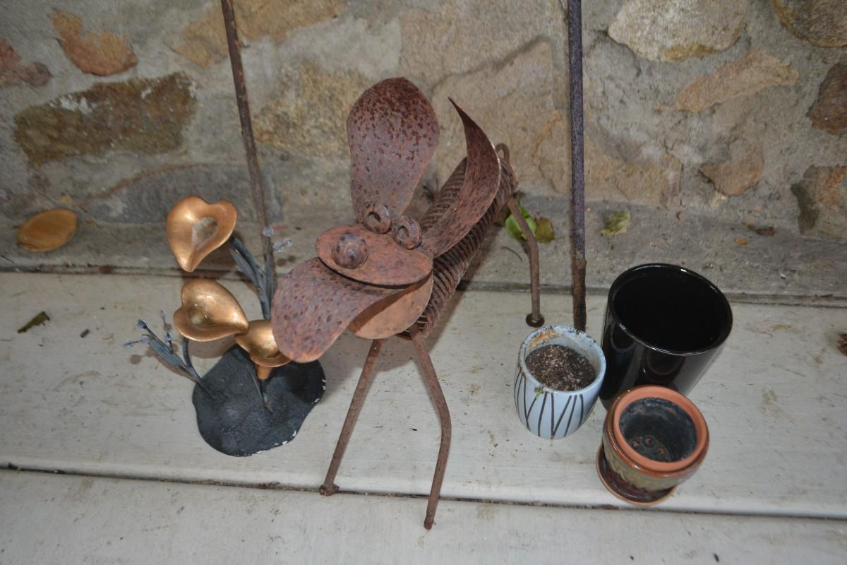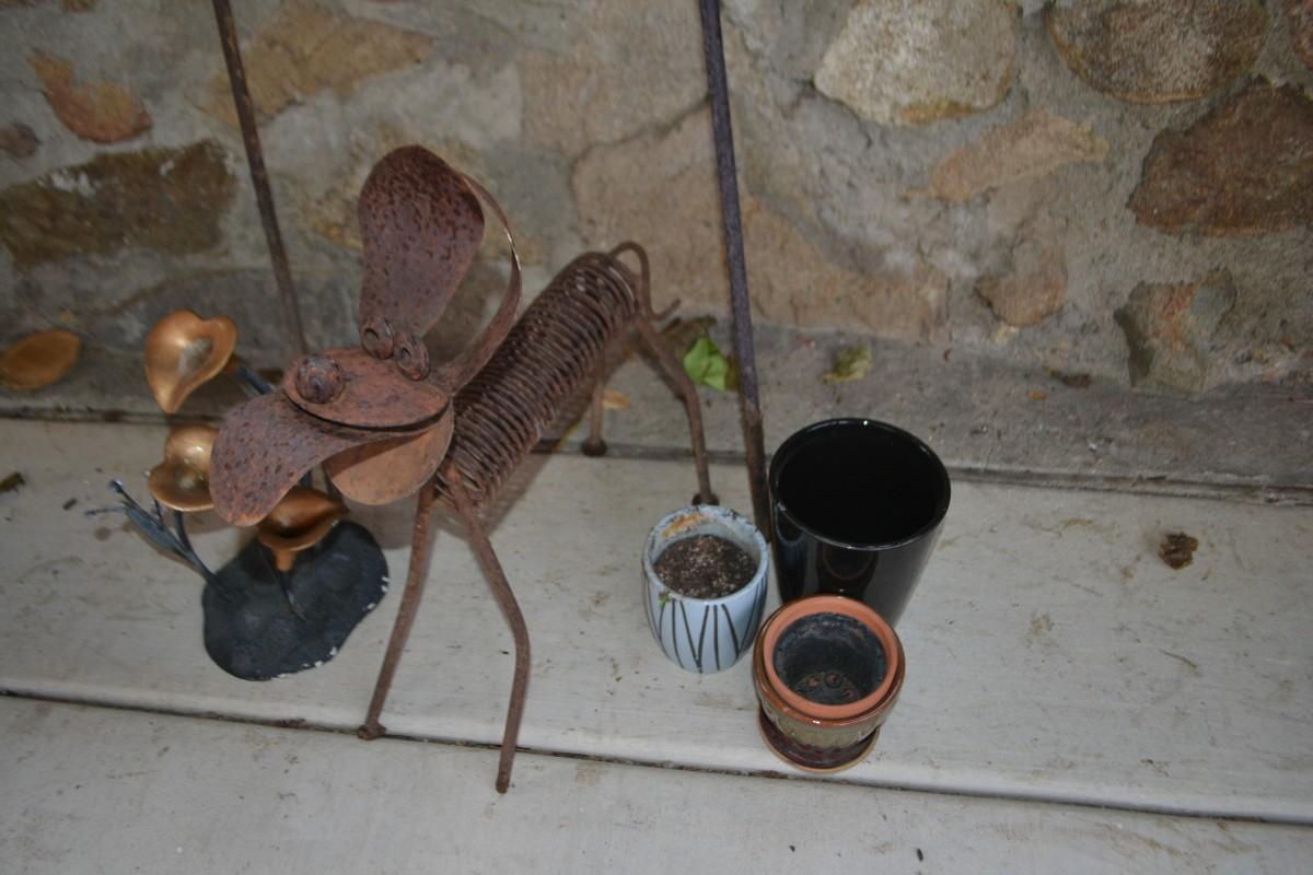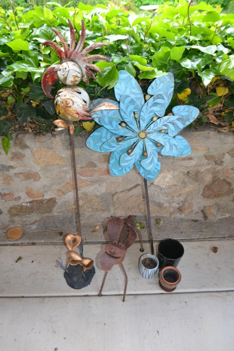 LOT 598 COLLECTION OF YARD DECOR AND POTS