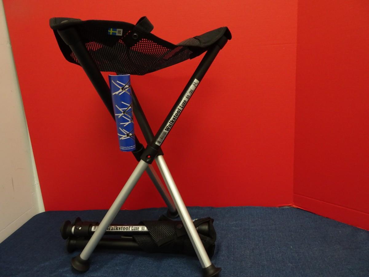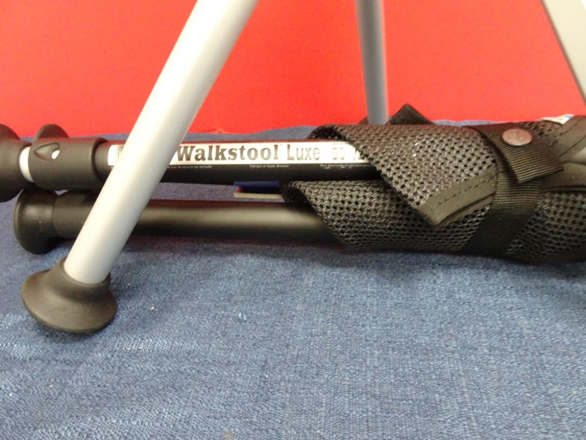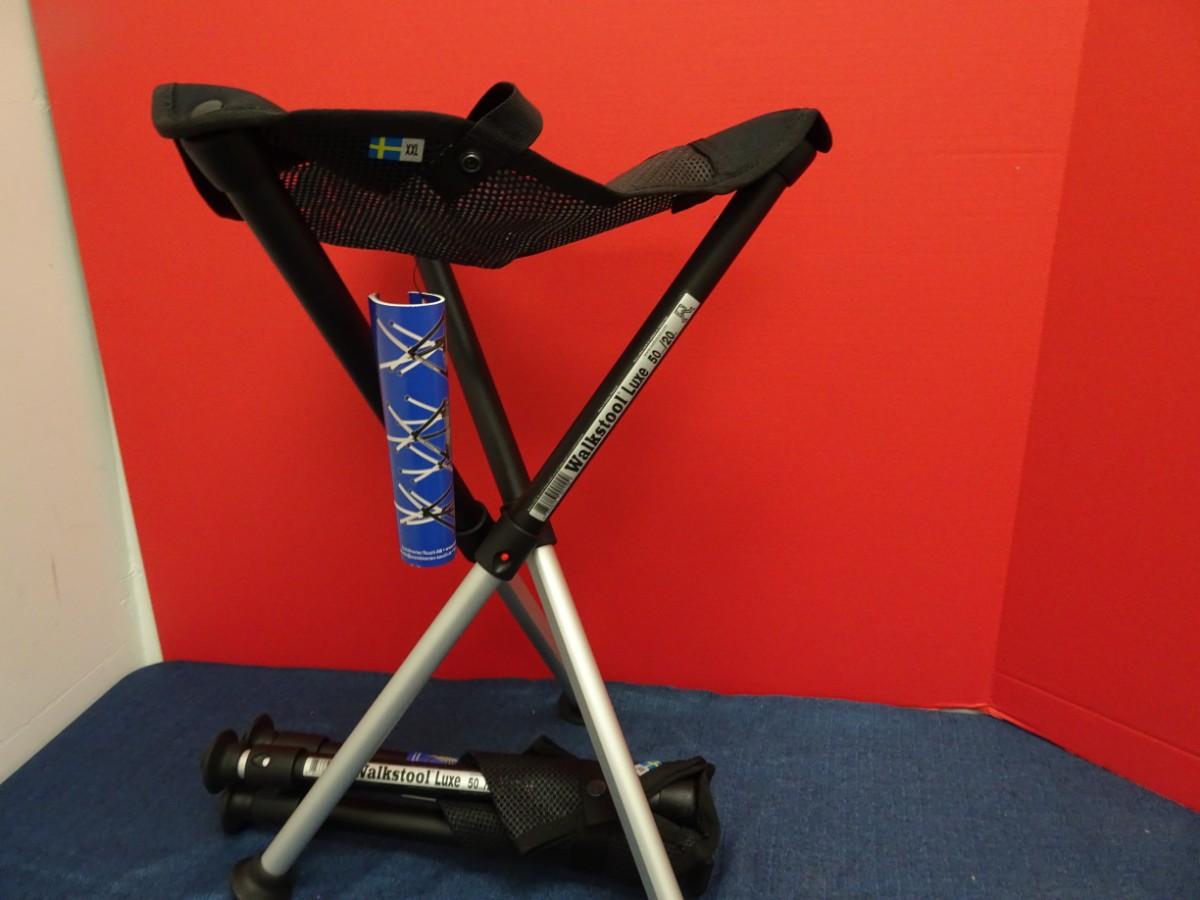 LOT 599. TWO WALKSTOOL BRAND ALUMINUM FOLDING STOOLS (MADE IN SWEDEN)