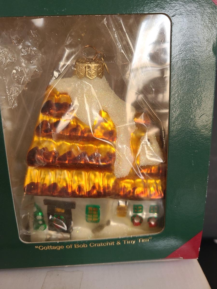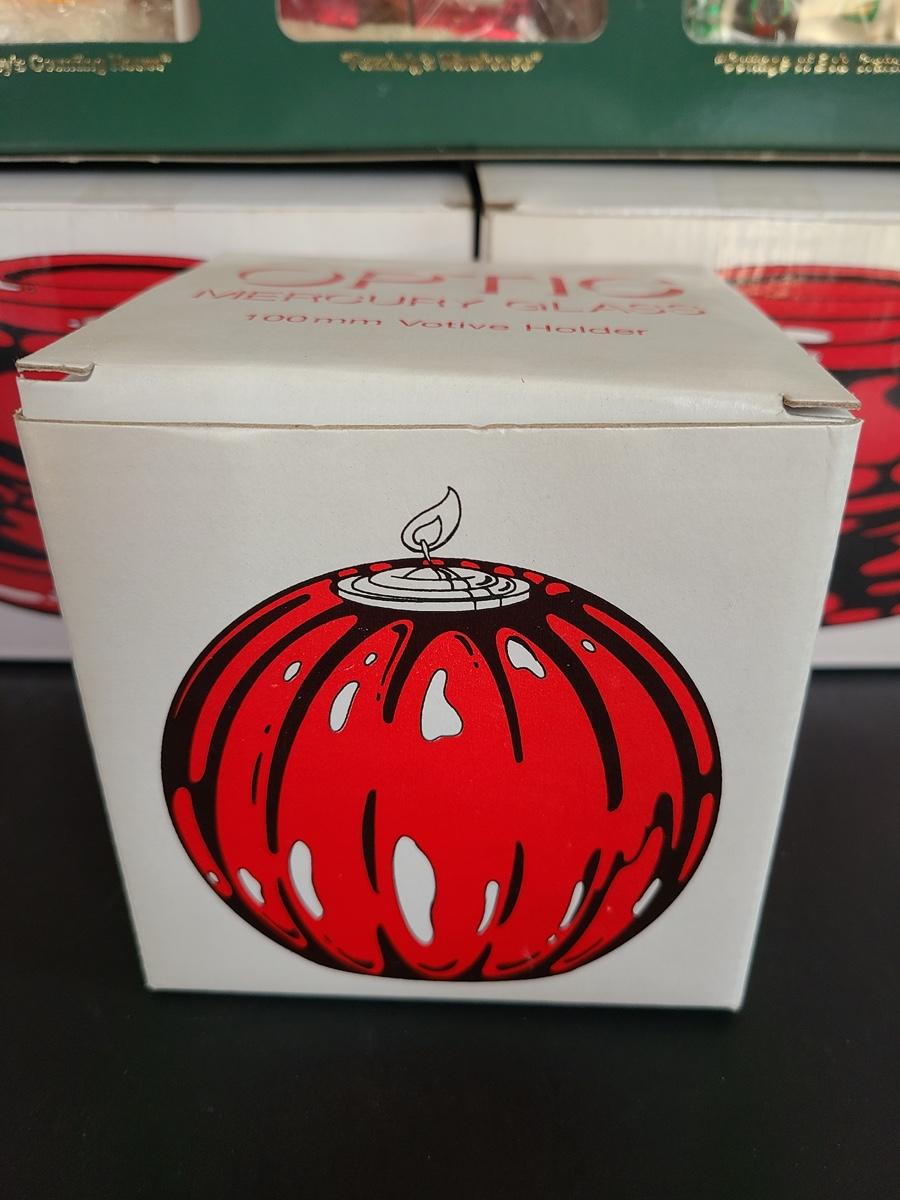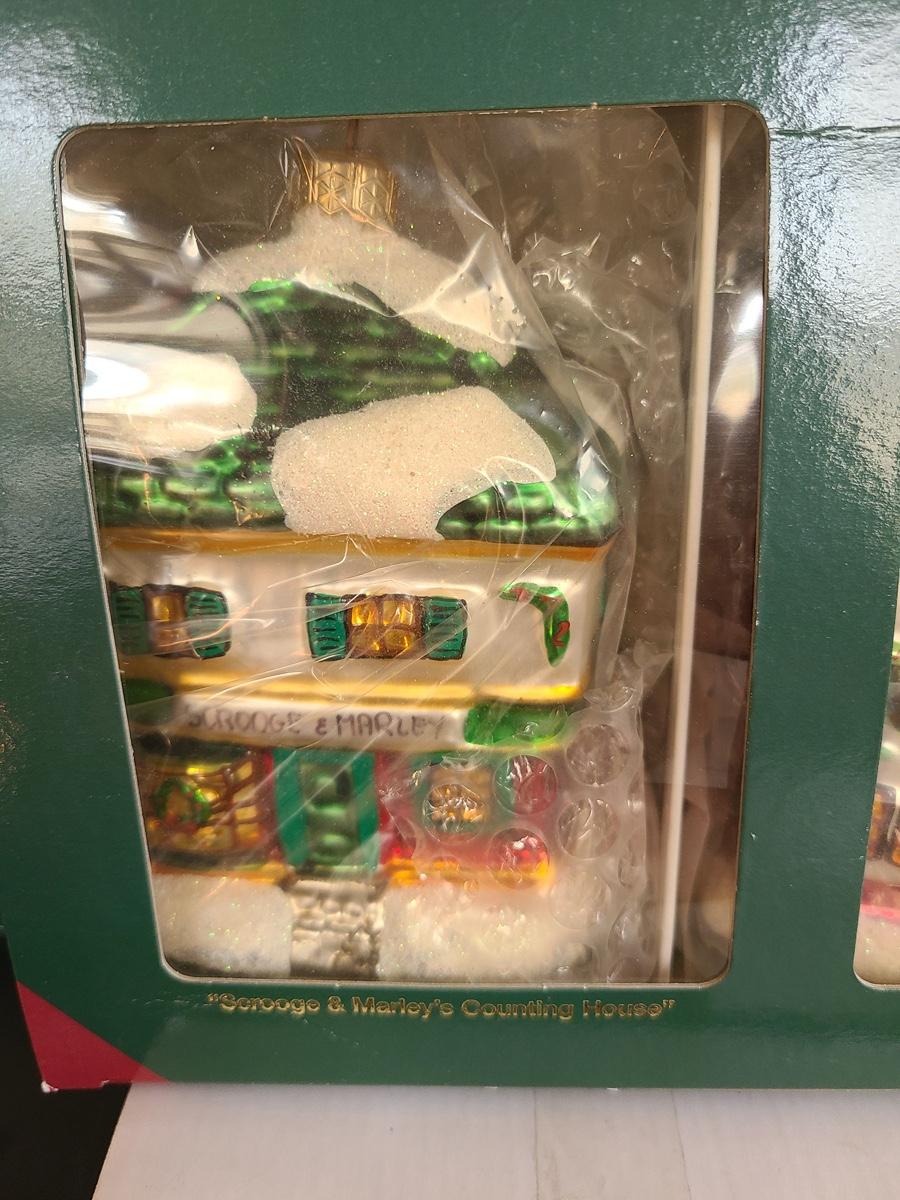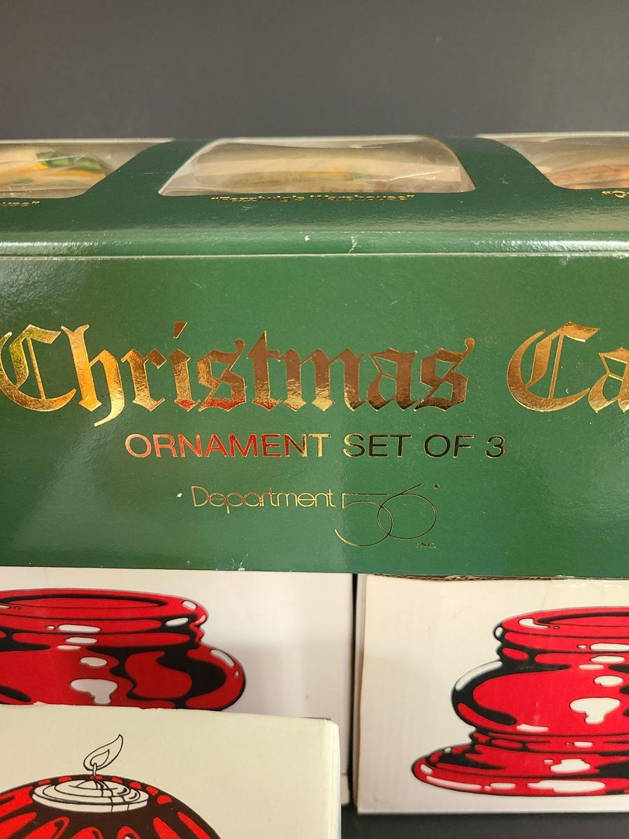 Lot 51: Dept 56: Christmas Carol Blown Glass Ornaments and Mercury Glass Candle Holders