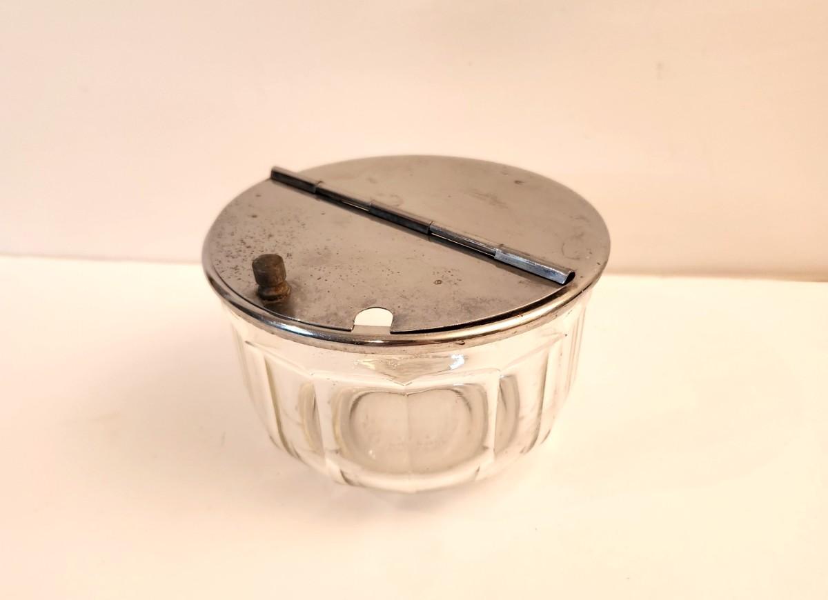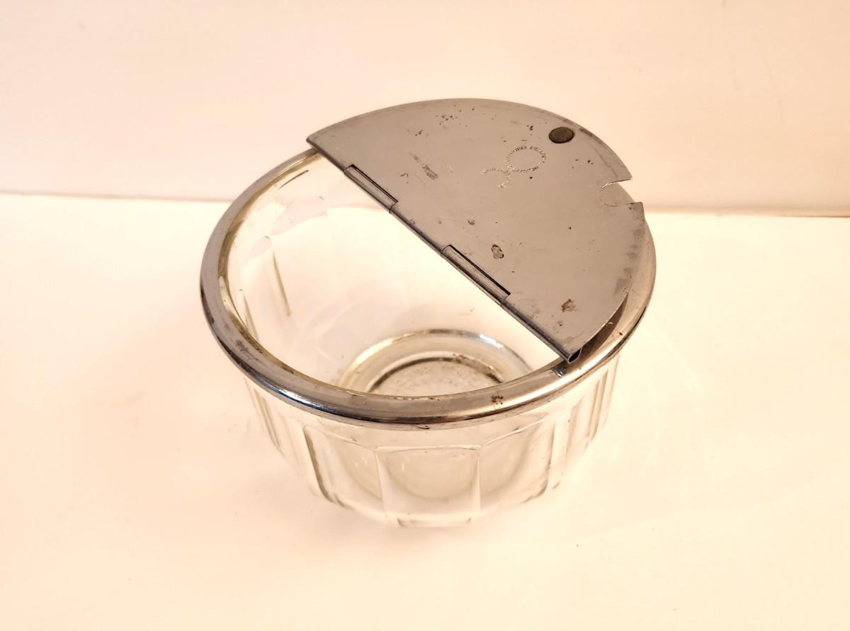 At one time this was in every New Orleans kitchen! Old style hinged sugar bowl, 4" tall, 5.5" across. Good vintage condition.