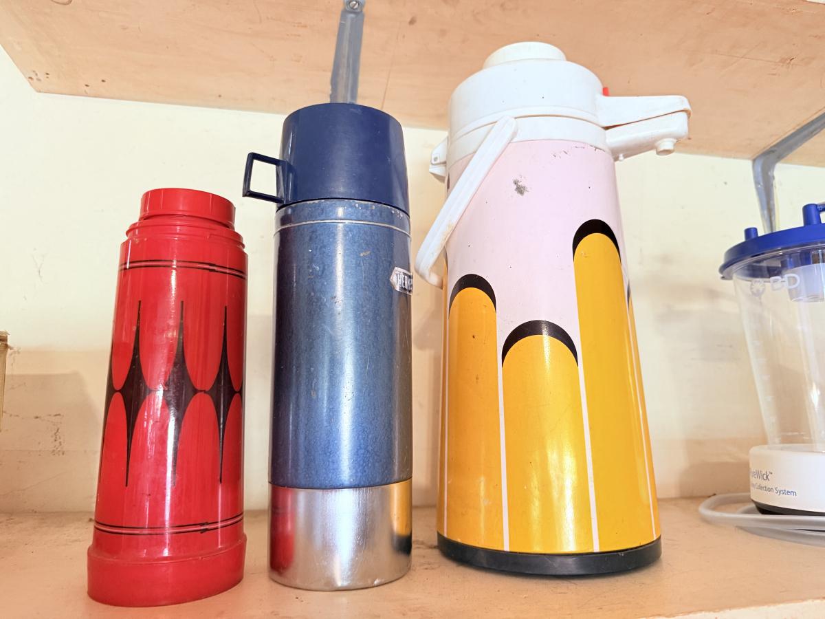 - White table on right is ours and the shelving in it isn’t included as well.