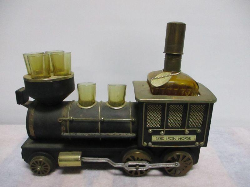 Lot 6 - 1880 Iron Horse Train Steam Engine Decanter Shot Glass Caddy