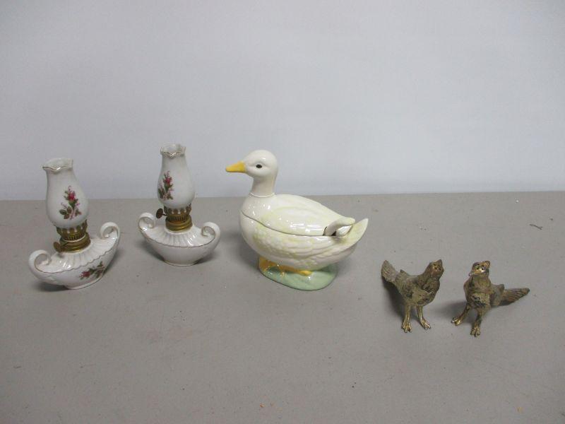 Lot 6 - Mini Oil Lanterns - Bird Shakers - Duck Gravy Boat