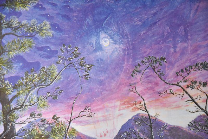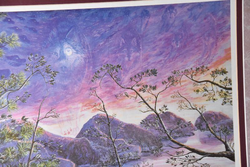 Signed and numbered framed print by Eli Thomas. Eli is known for his nature inspired Native American art. Hidden images are throughout this painting.
