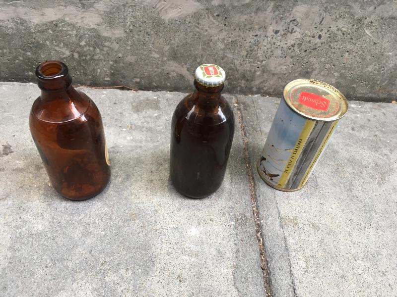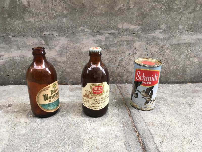 Lot 6 of 3 antique beer bottles 2 Blitz Weinhard bottles and one Schmidt Beer Can