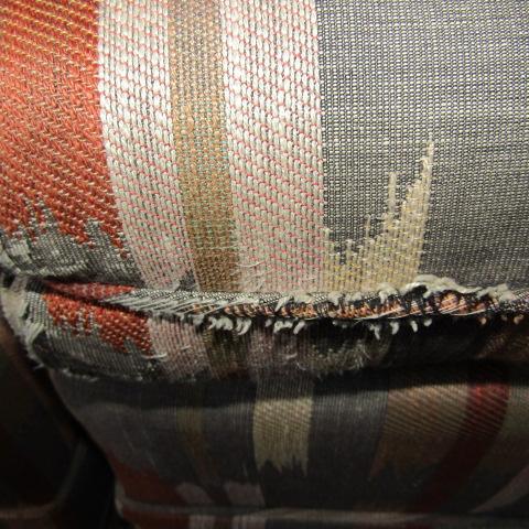 THE MATERIAL HAS FRAYED ALONG SOME OF THE SEAMS. IT CAN BE TRIMMED OFF AND THEN NOT NOTICABLE