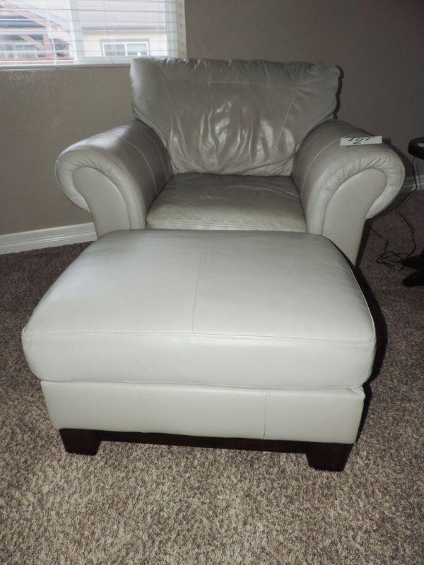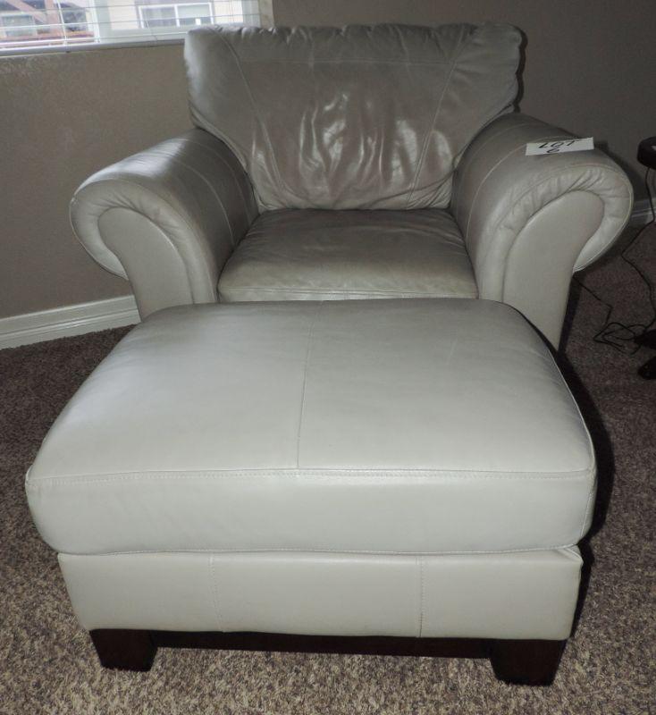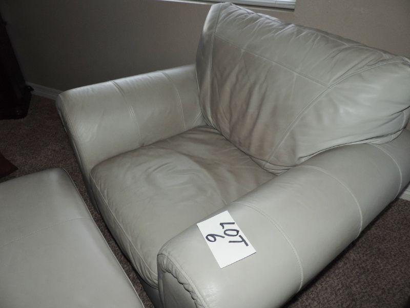 LOT 6 LEATHER LOUNGE CHAIR & OTTOMAN