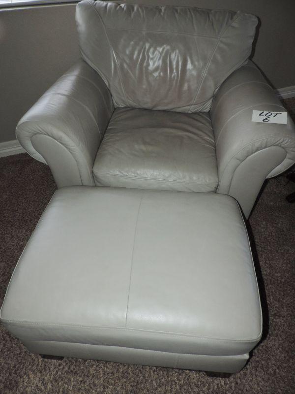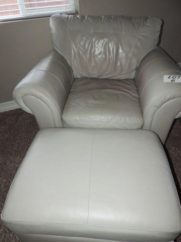 LOT 6  LEATHER LOUNGE CHAIR & OTTOMAN
