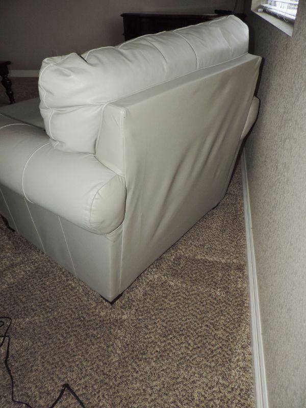 ASHLEY FURNITURE OFF WHITE LOUNGE CHAIR & OTTOMAN