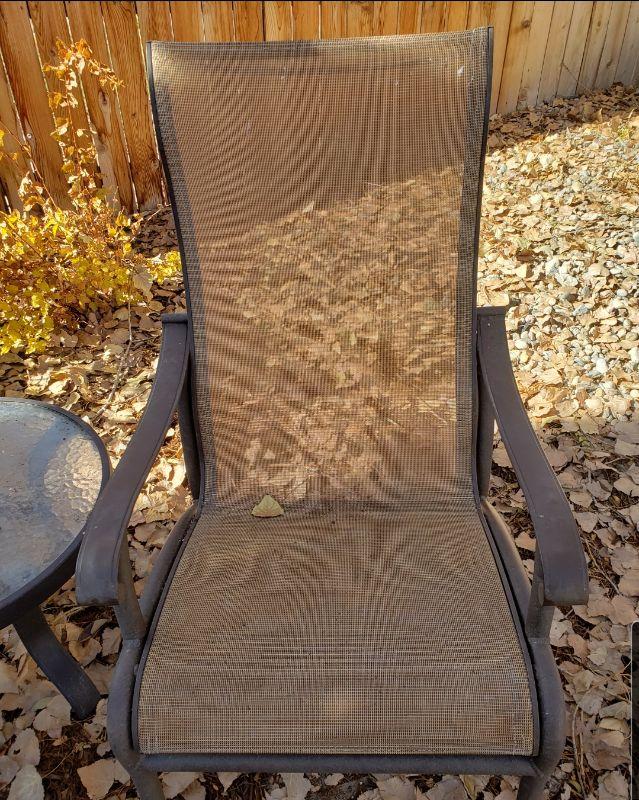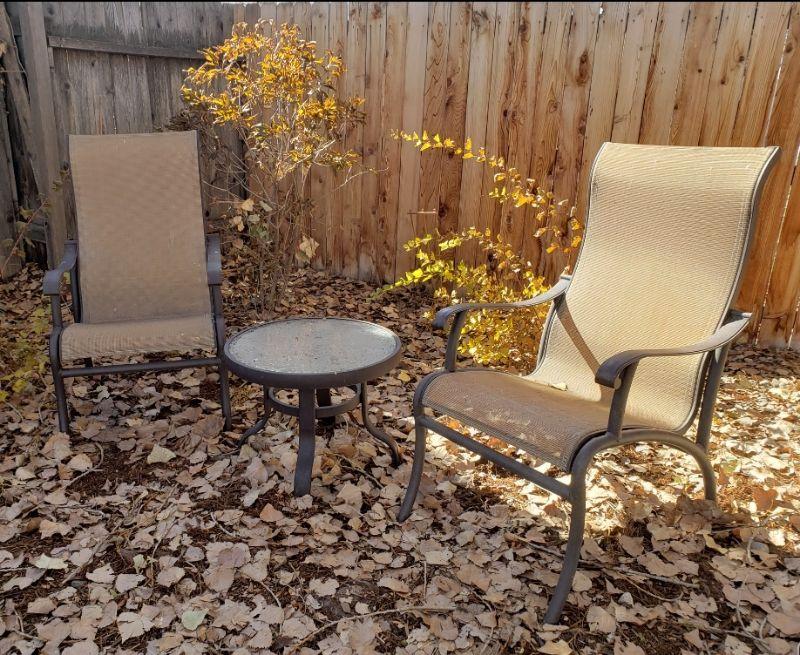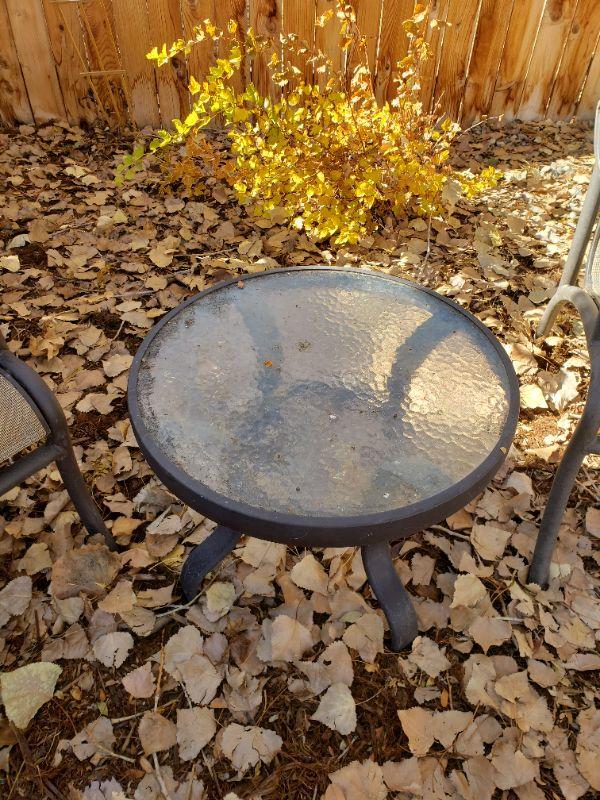 Lot 6: (2) Outdoor Chairs and Small Glass Top Side Table