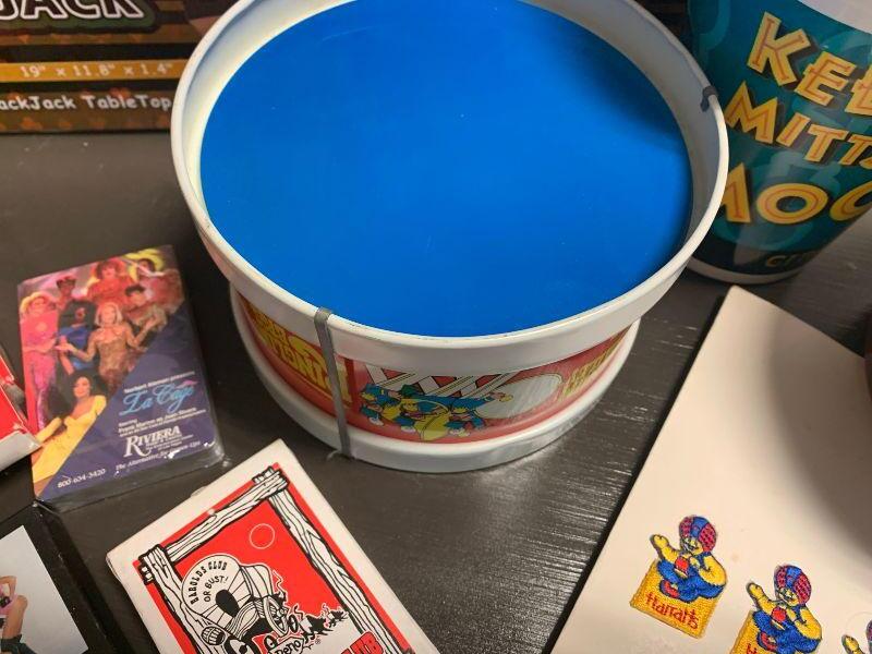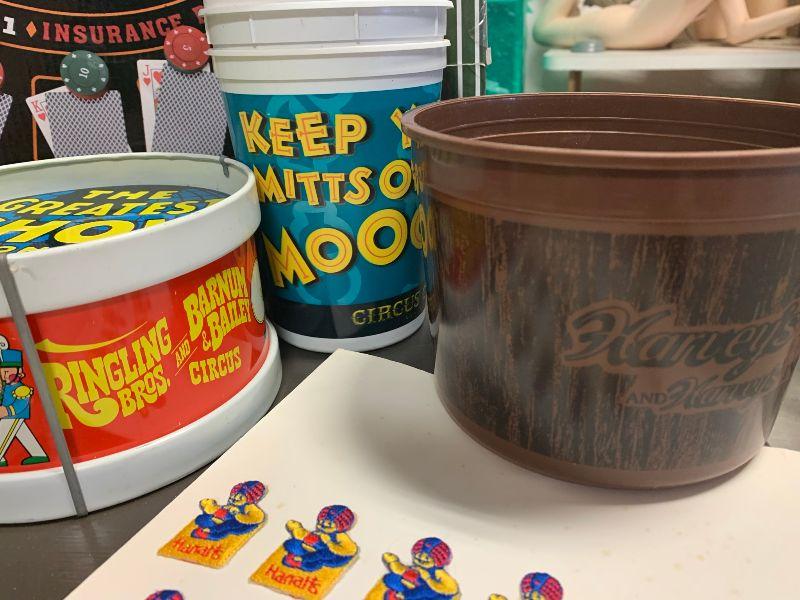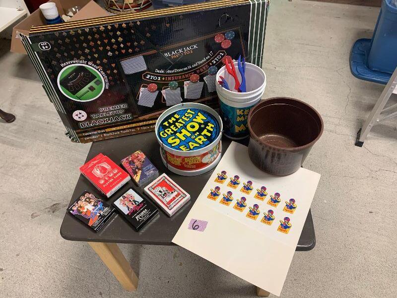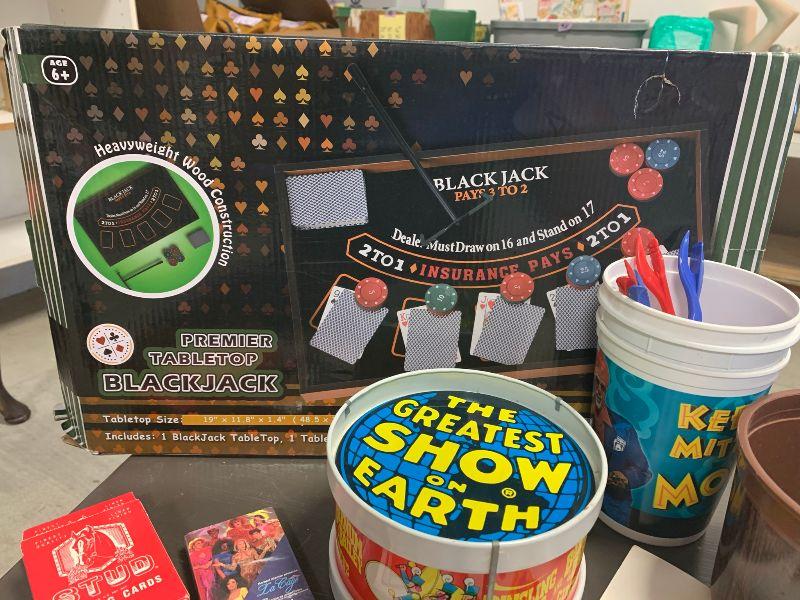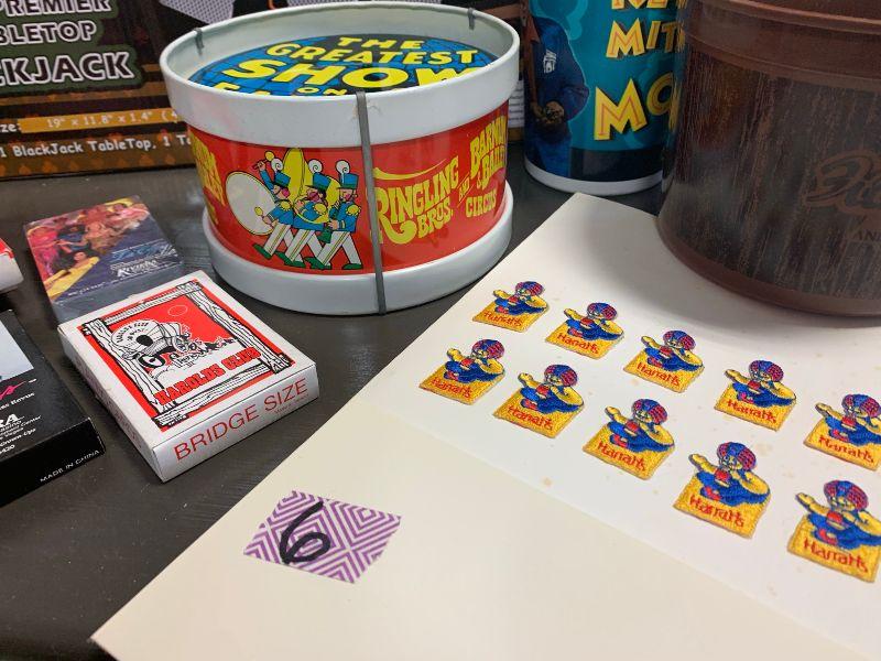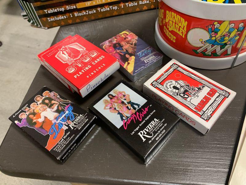 Casino/Gambling items including a vintage Barnum and Bailey Circus metal drum
