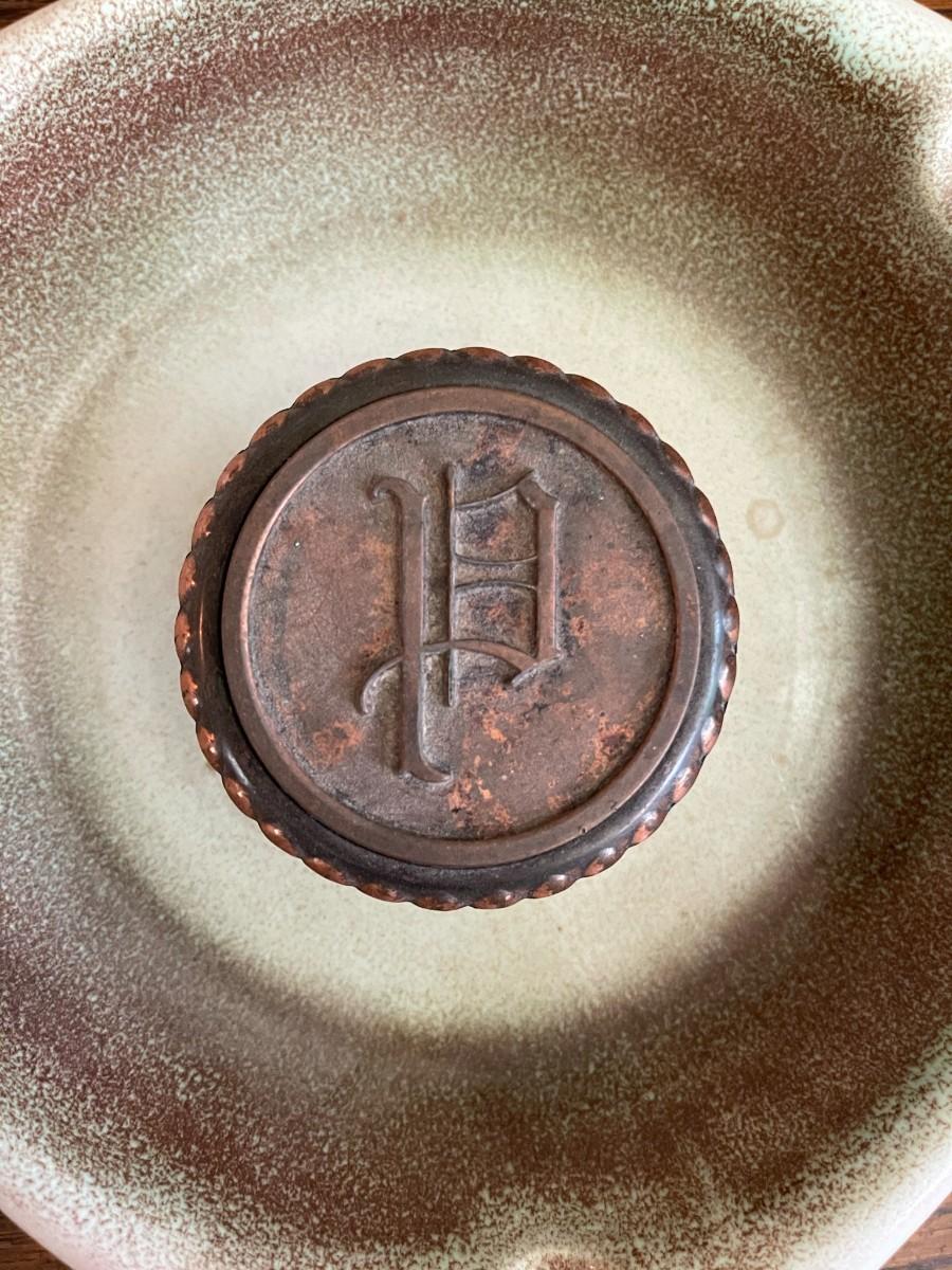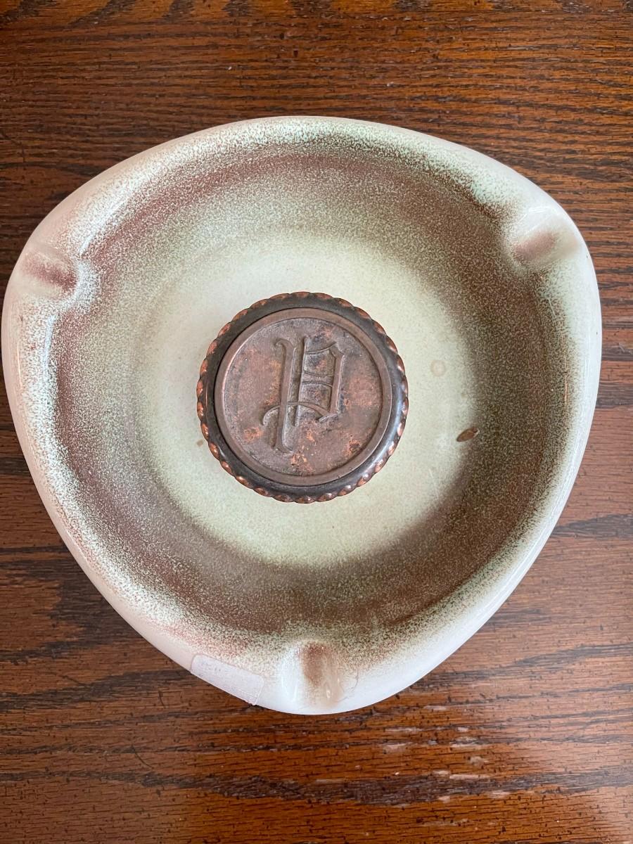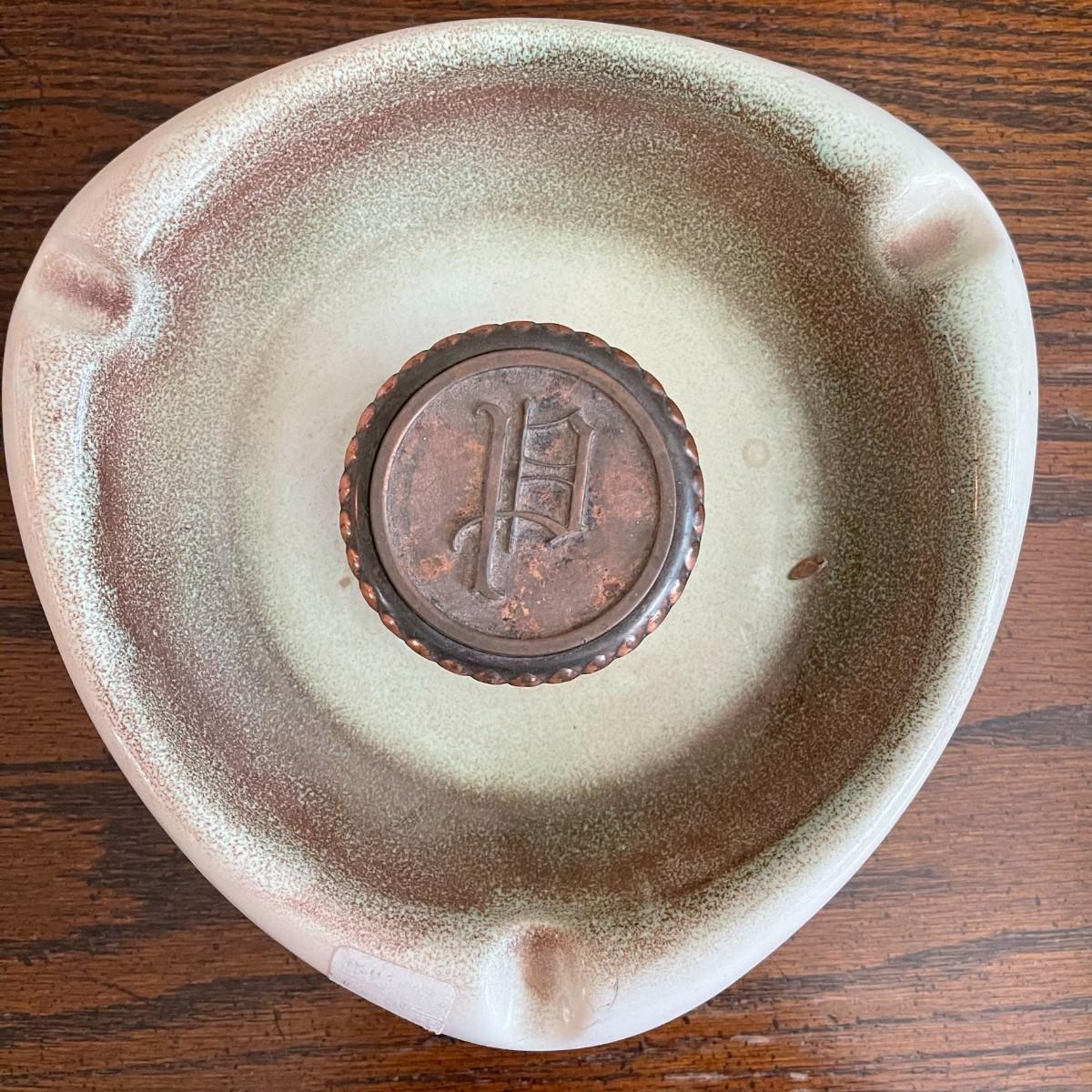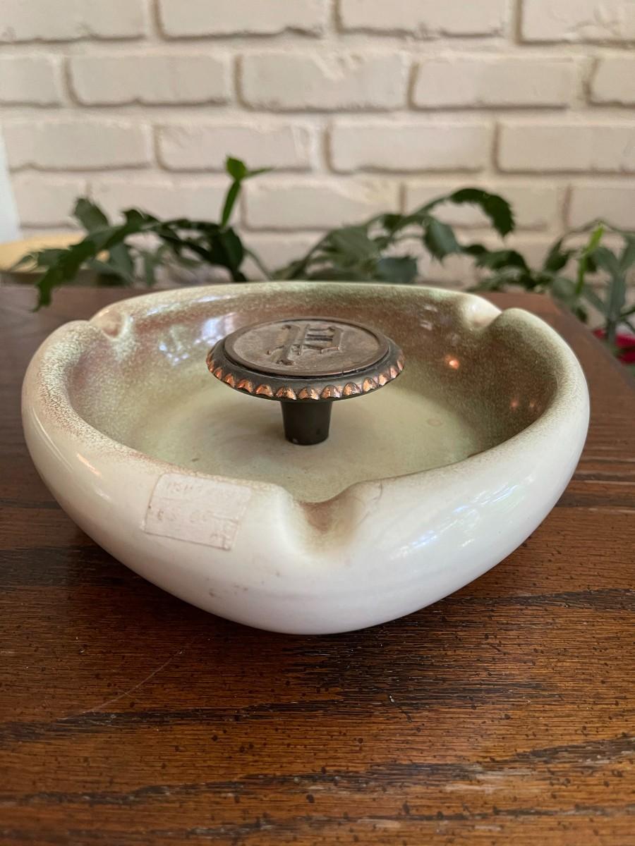 Vintage Roseville Pottery, The Hyde Park, No.1985, Triangular, "P" Monogram Medallion, Ashtray, Cream,