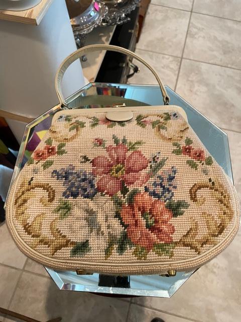 Lot #6 -- Ivory Two Roses needlepoint purse