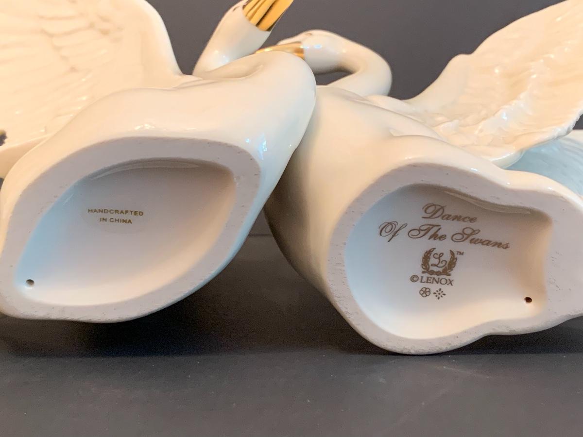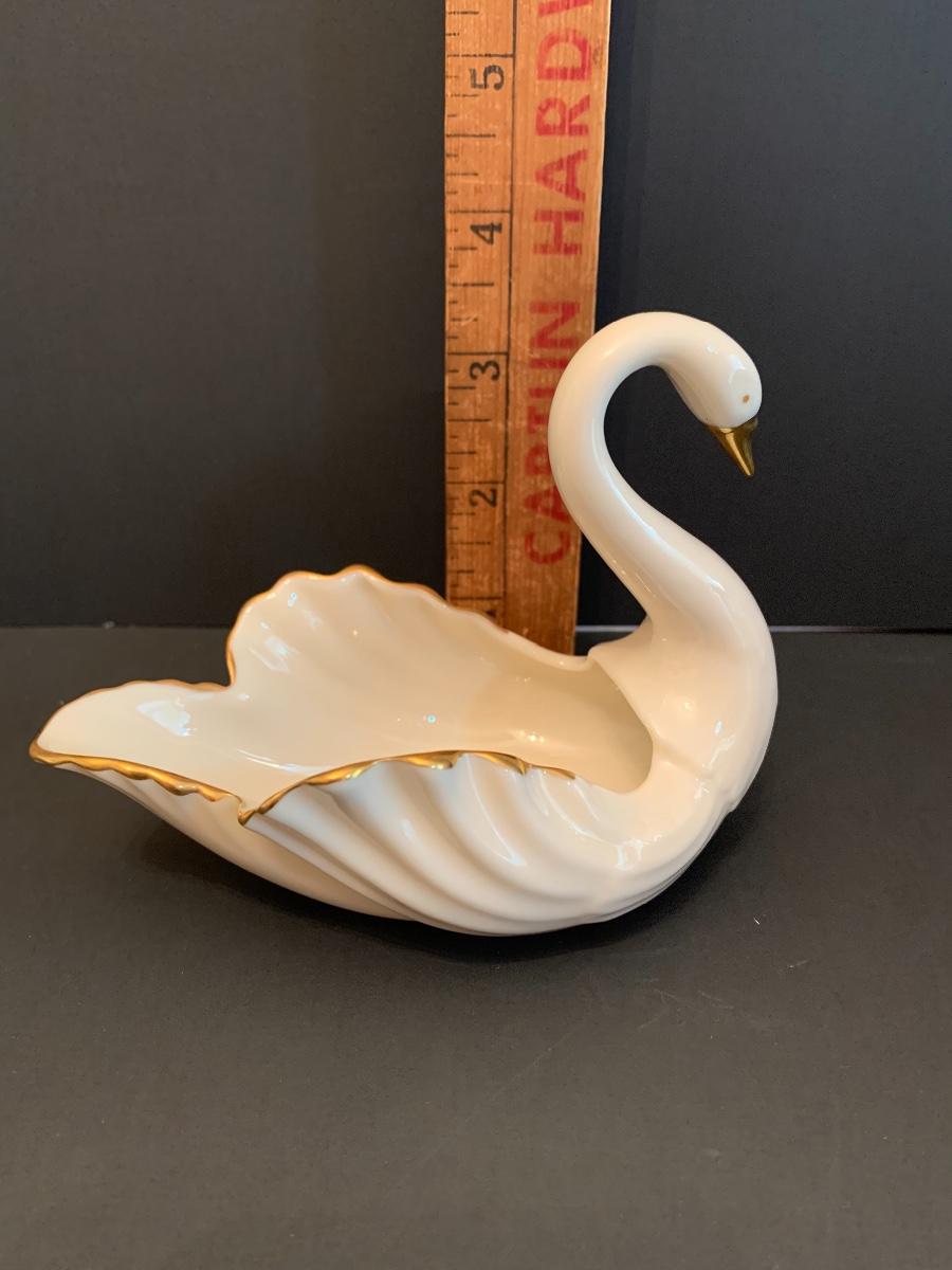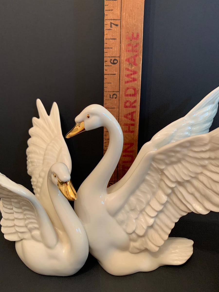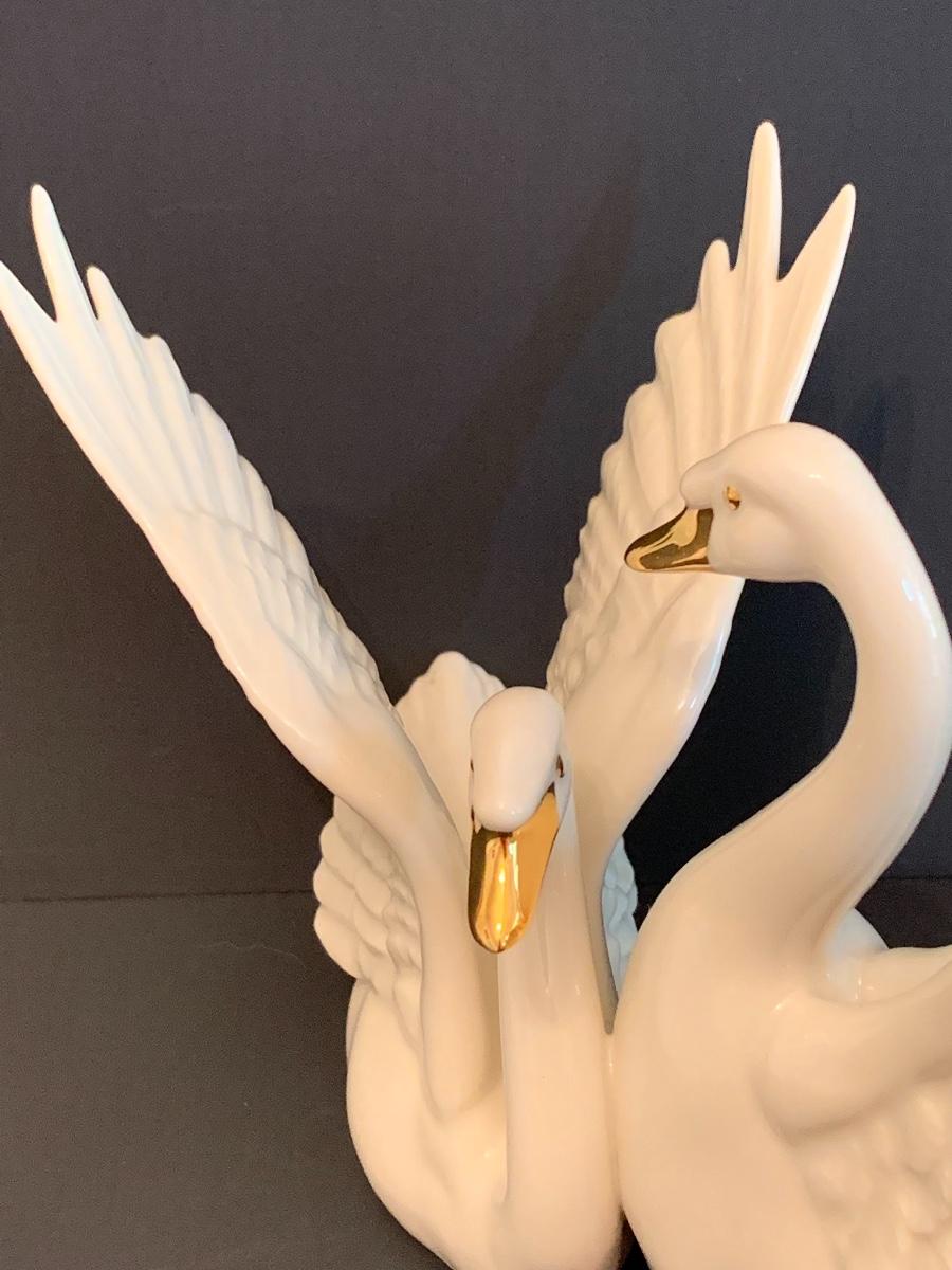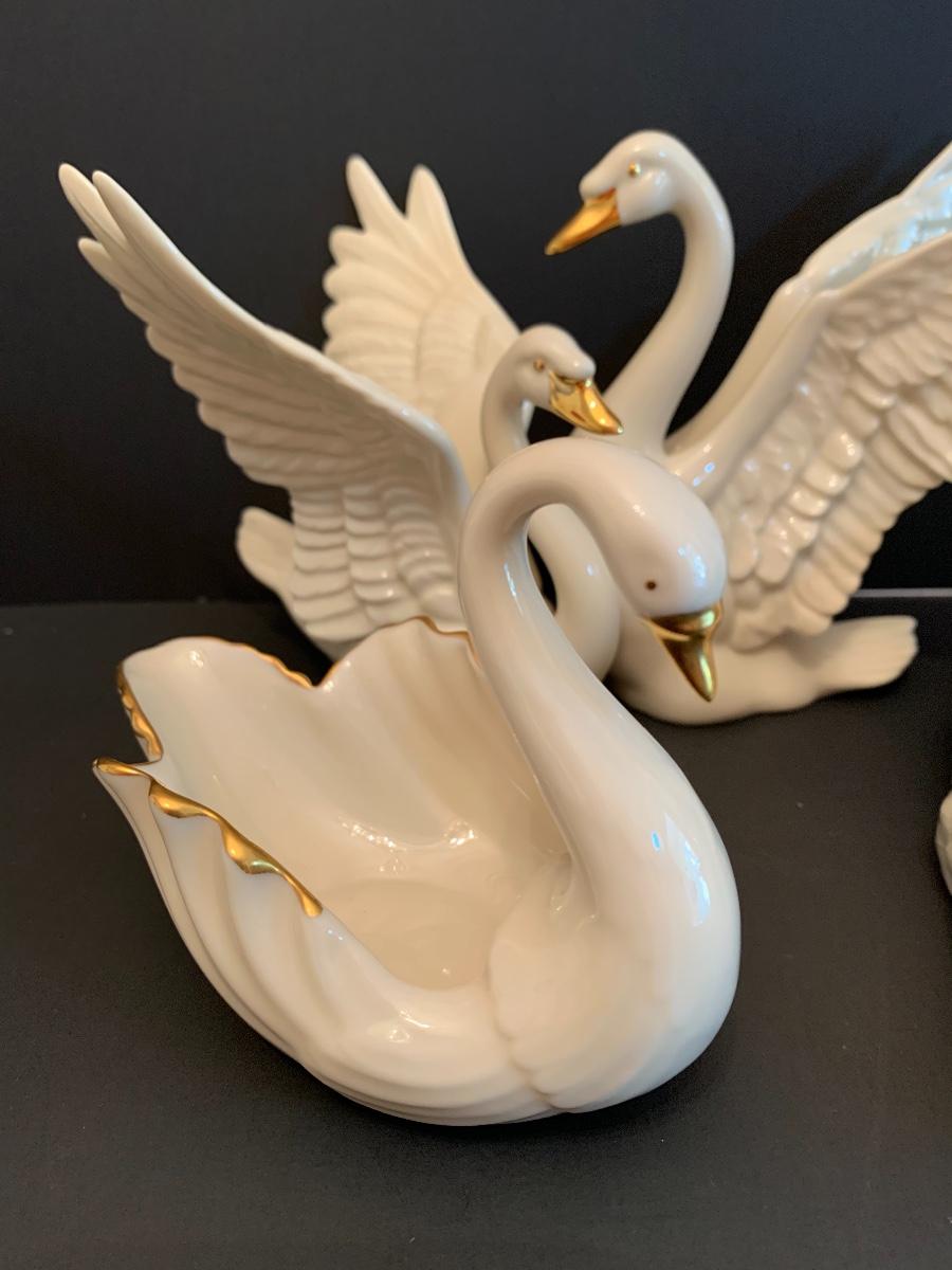 Beautifully detailed Lenox Swans and Hand Decorated 24K Swan Dish