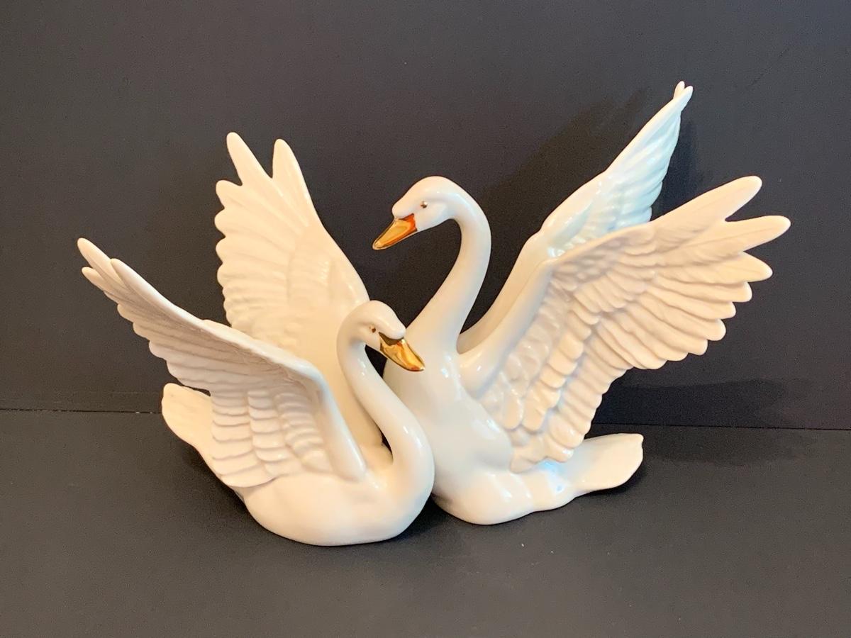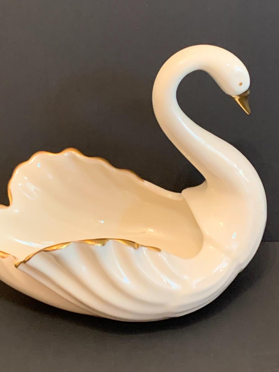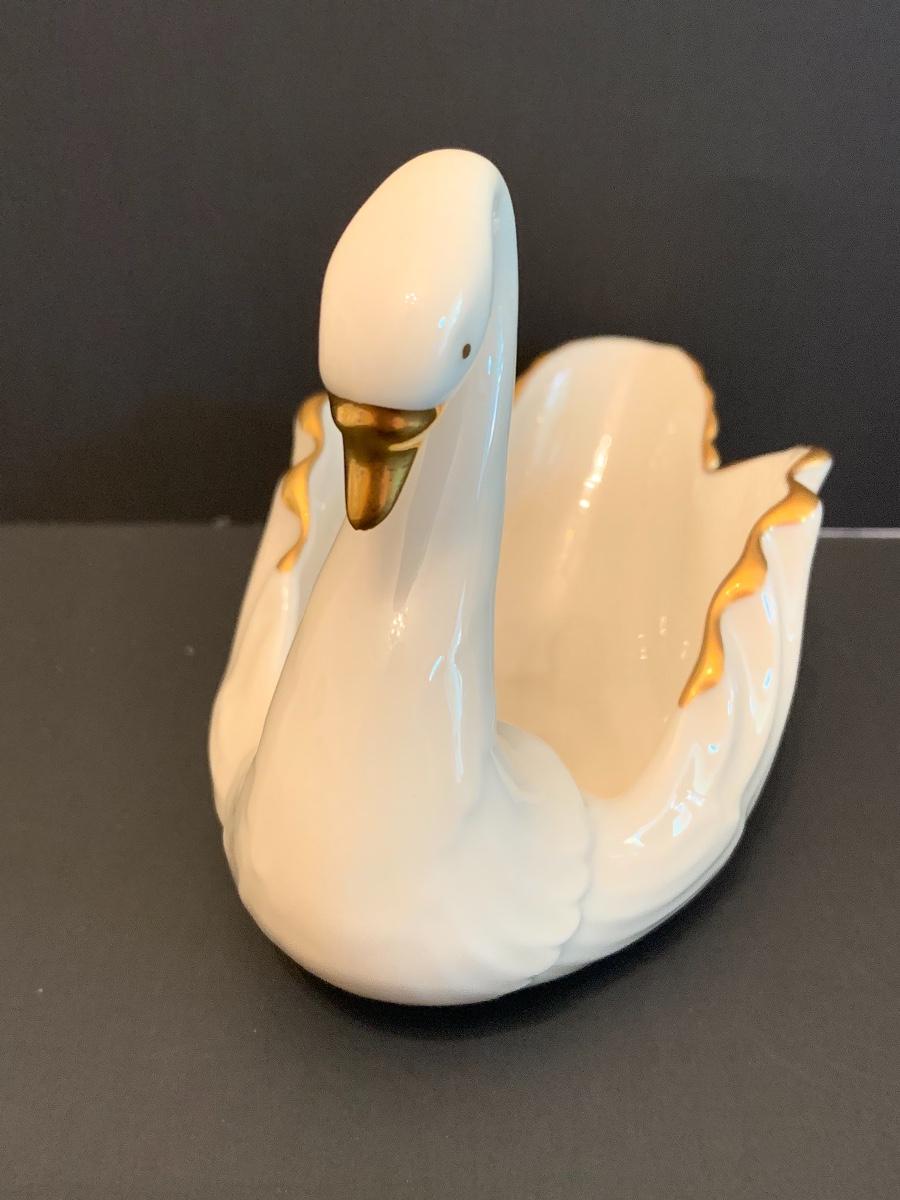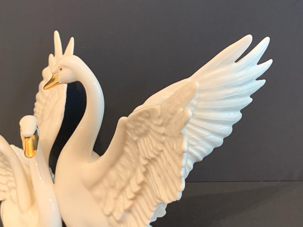 Beautifully detailed Lenox Swans and Hand Decorated 24K Swan Dish