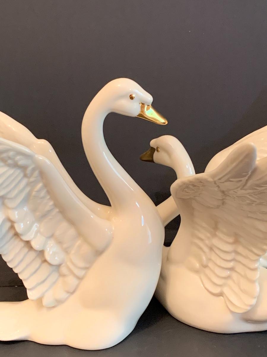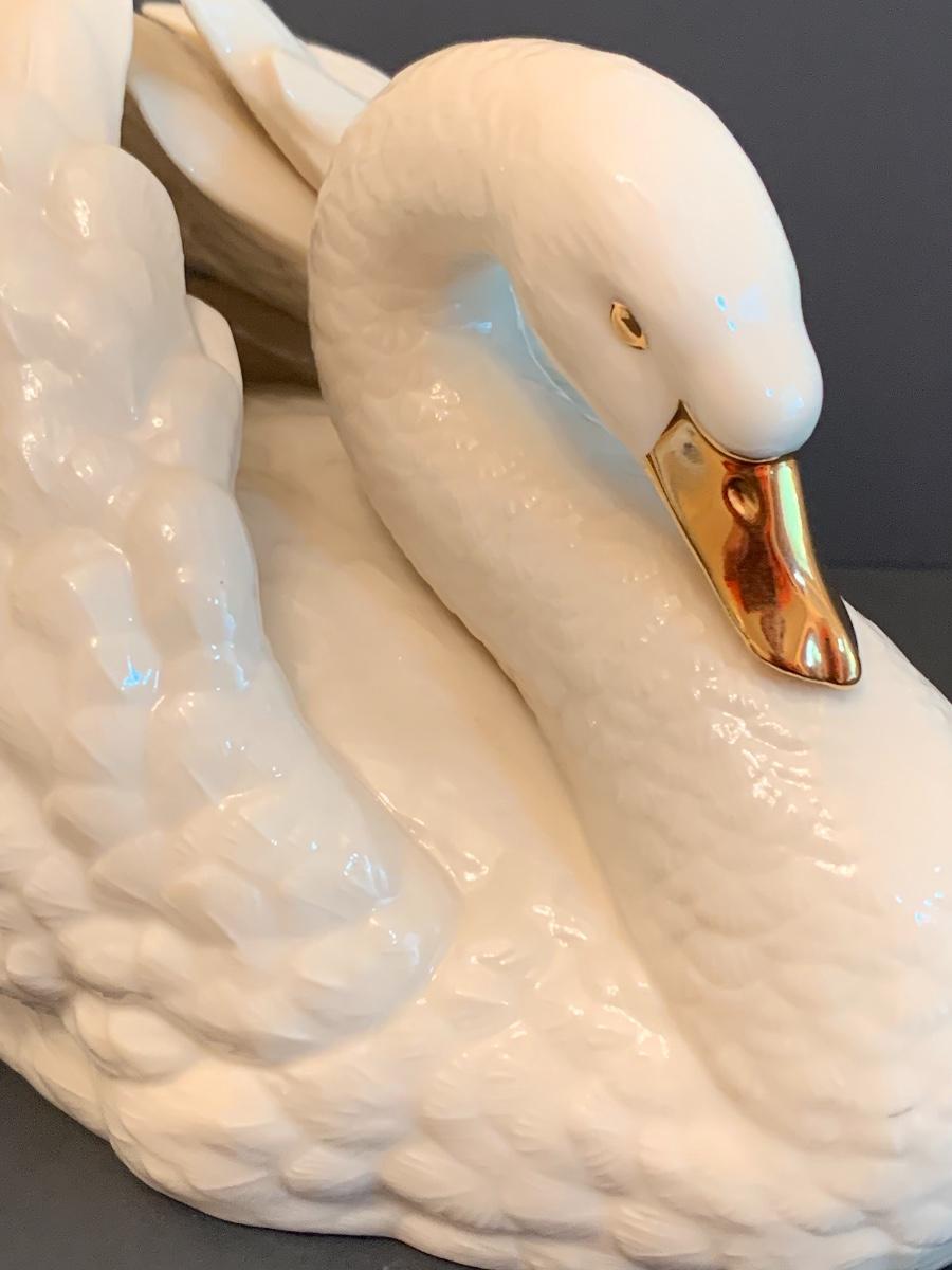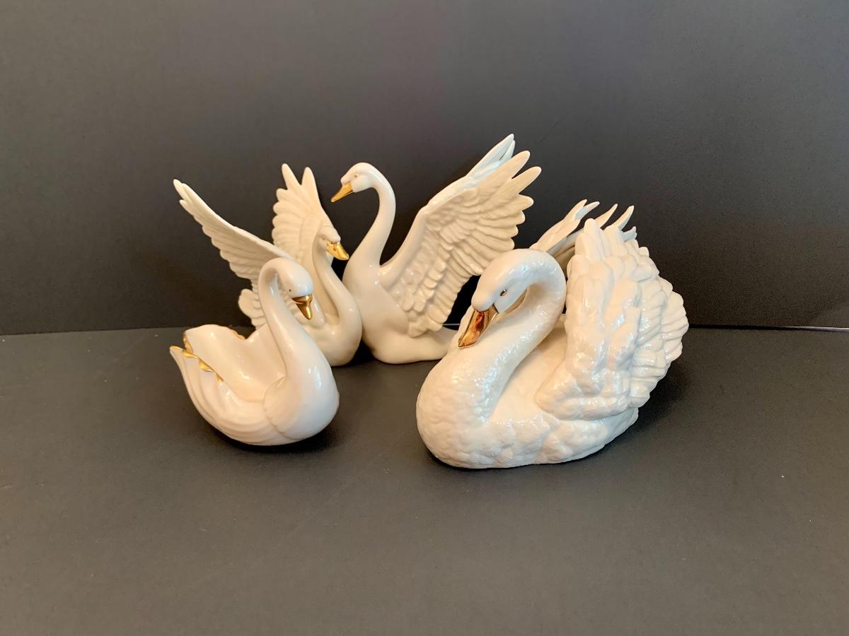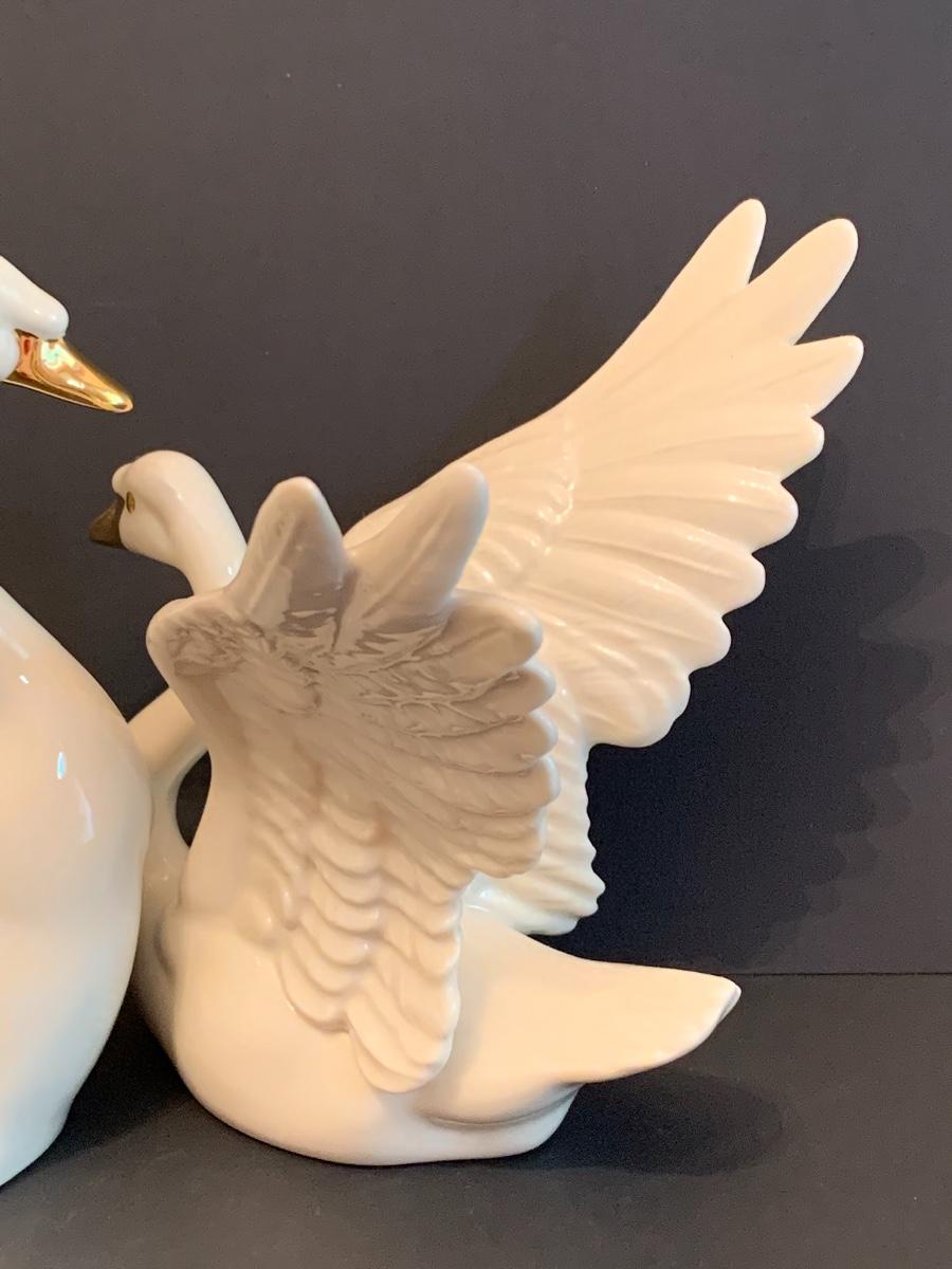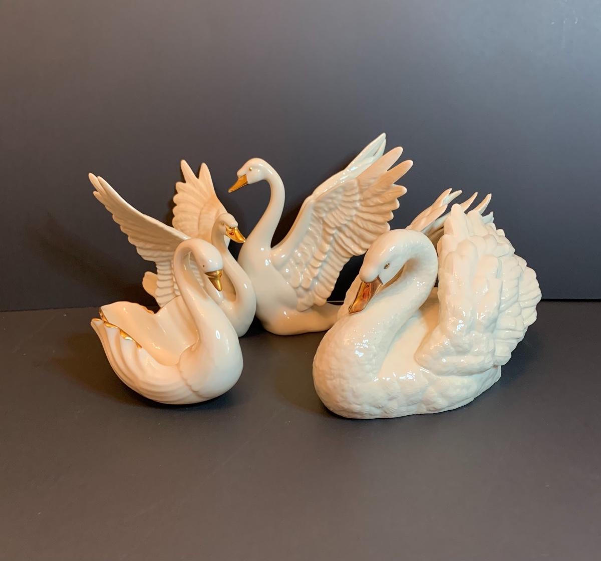 Beautifully detailed Lenox Swans and Hand Decorated 24K Swan Dish