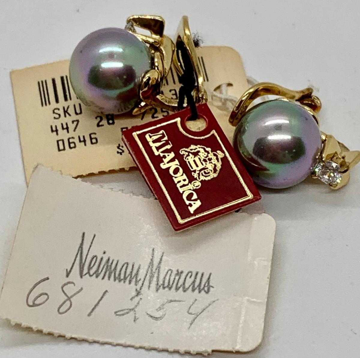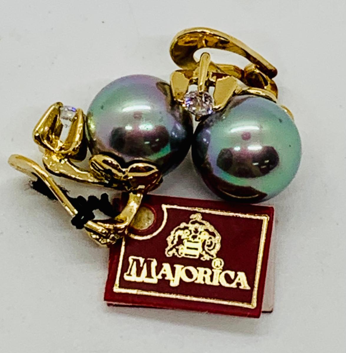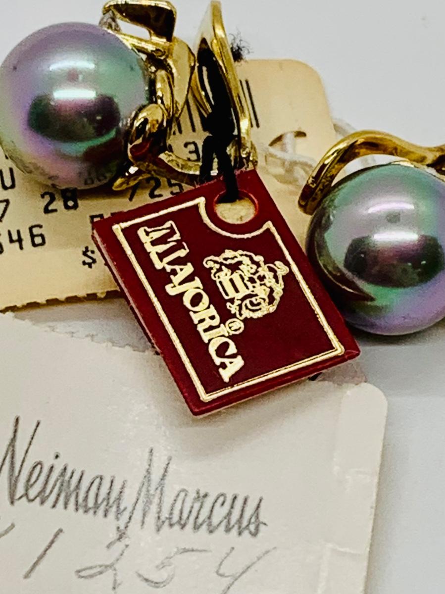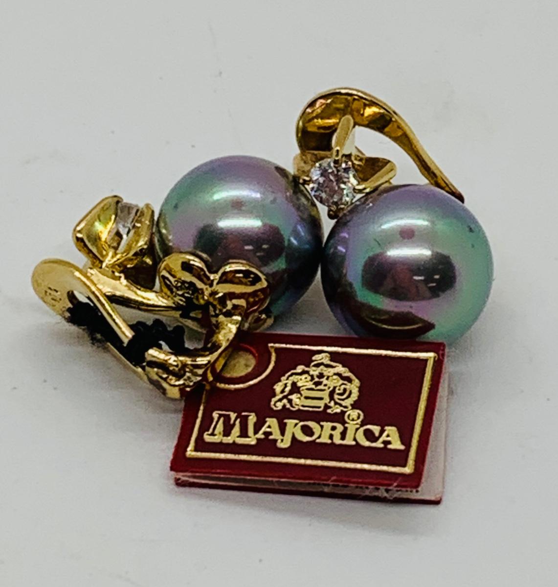 Beautiful vintage pair of Majorica gold vermeil/sterling cultured pearl clip on earrings.