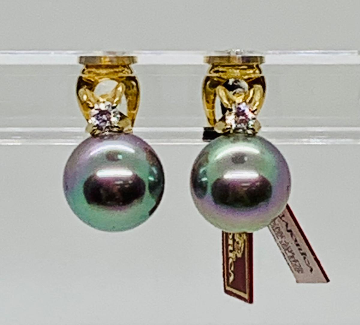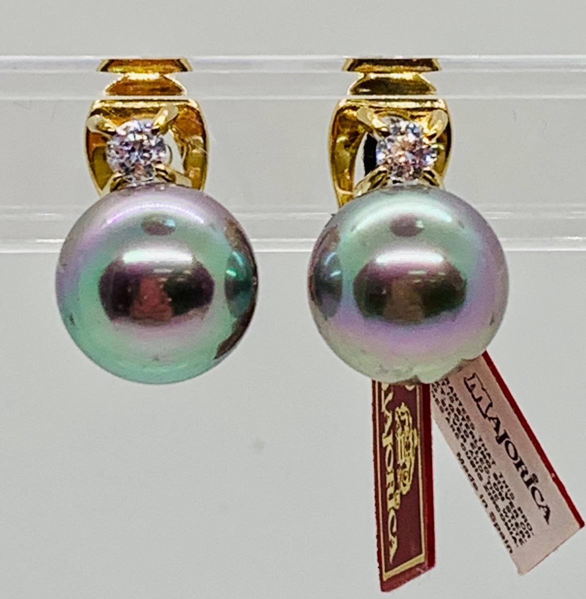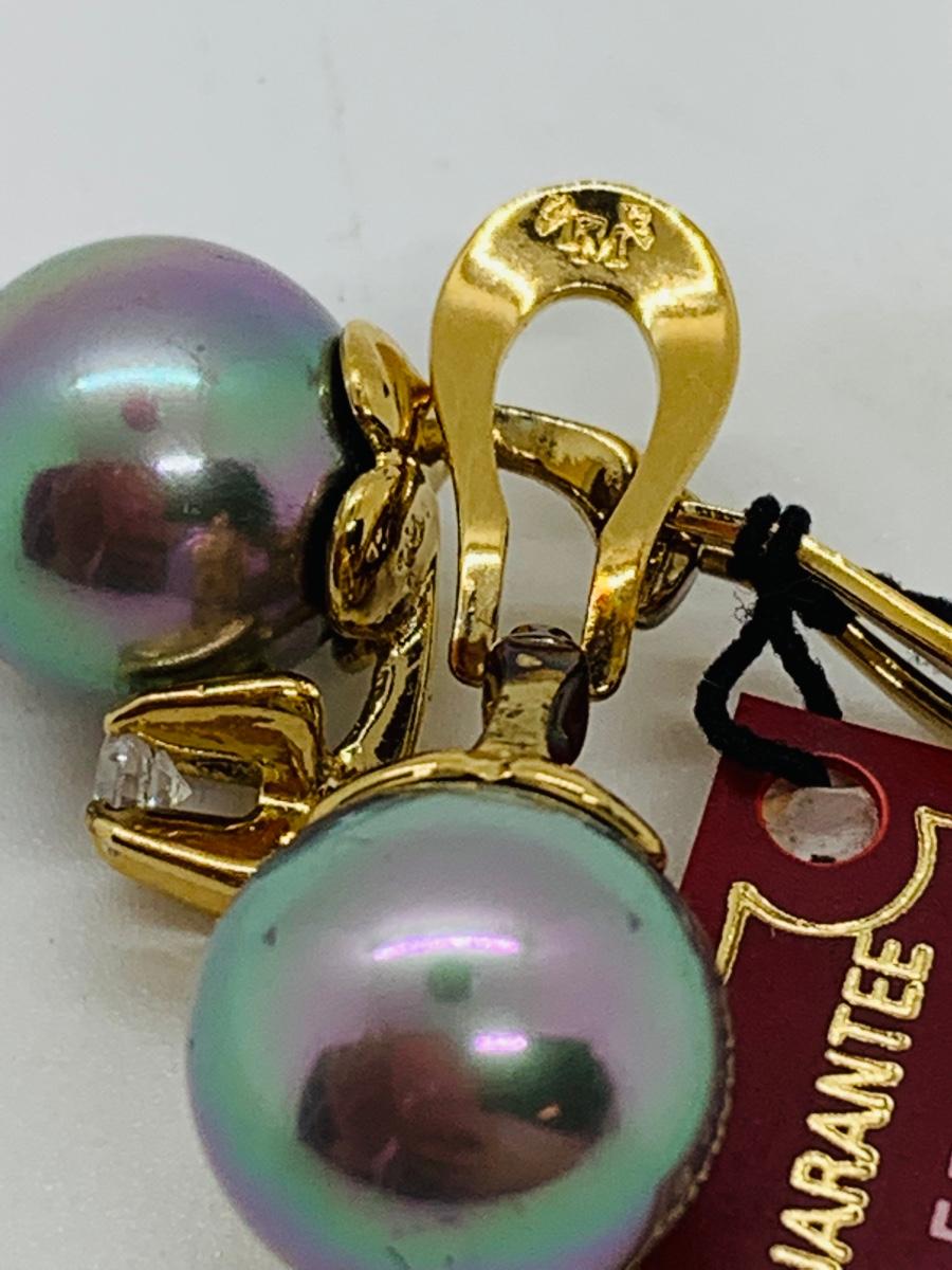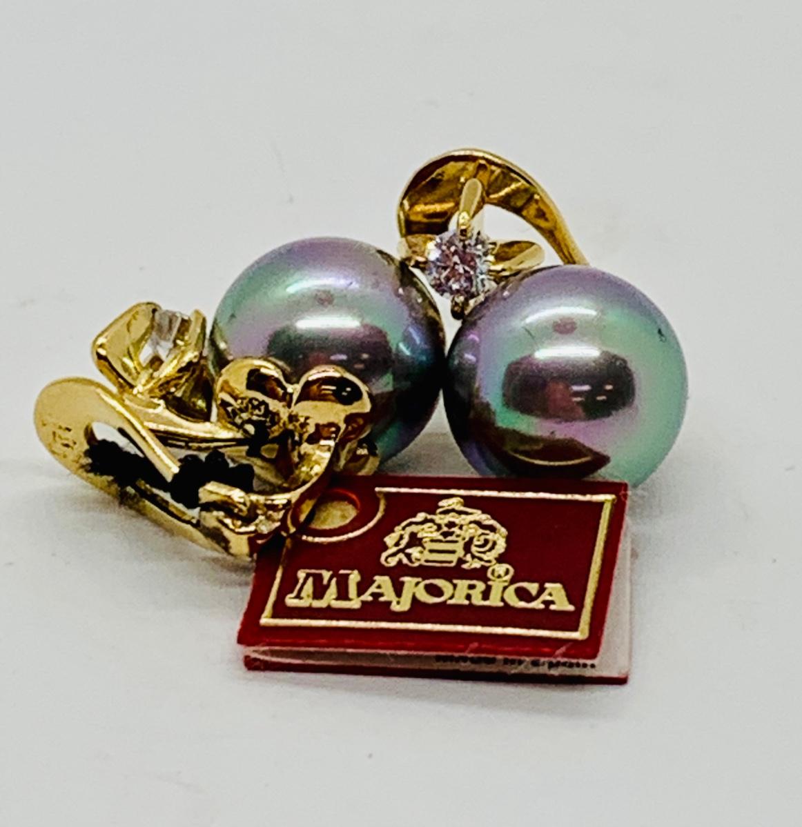 Beautiful vintage pair of Majorica gold vermeil/sterling cultured pearl clip on earrings.