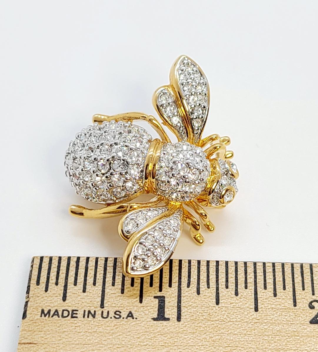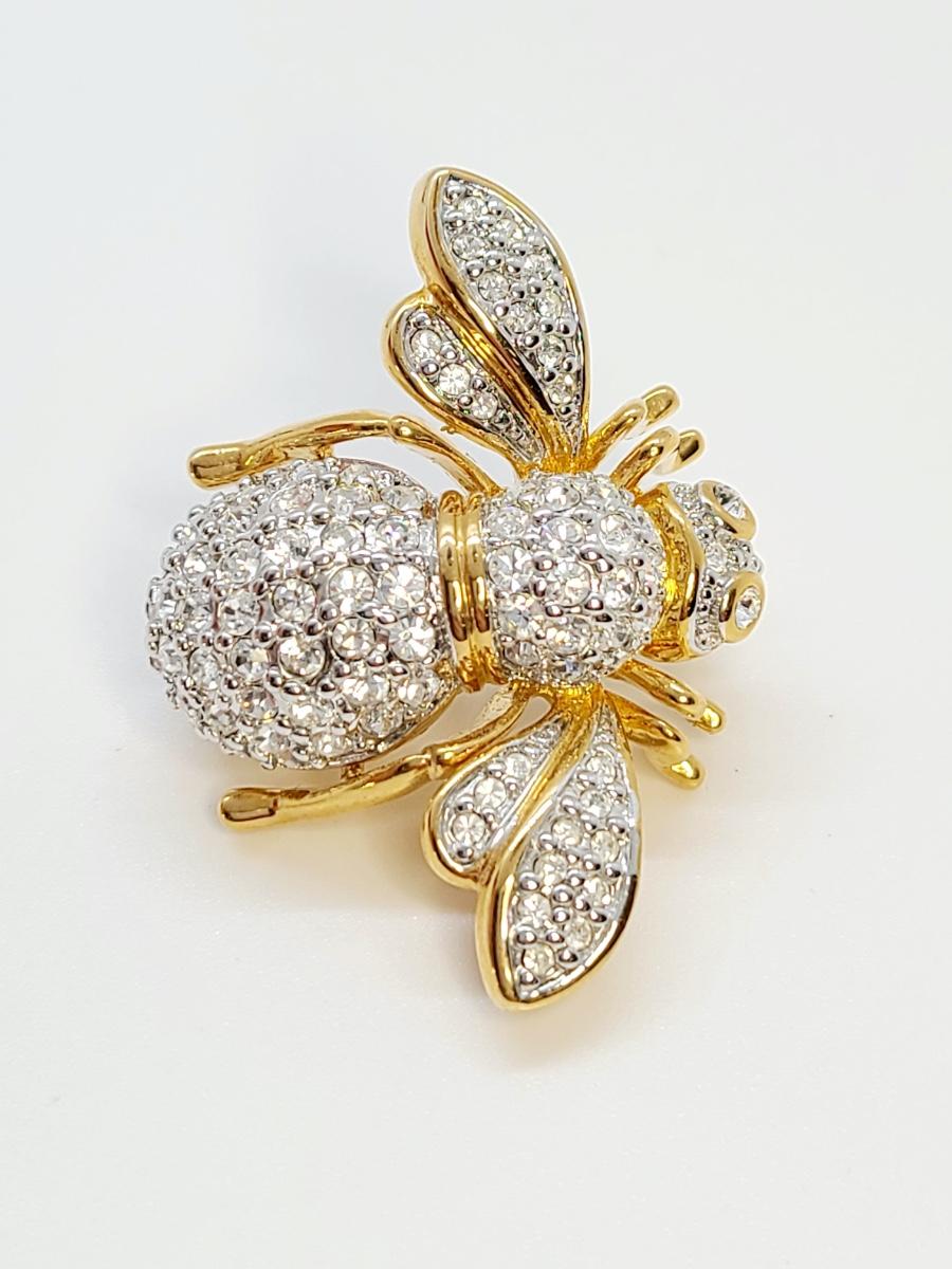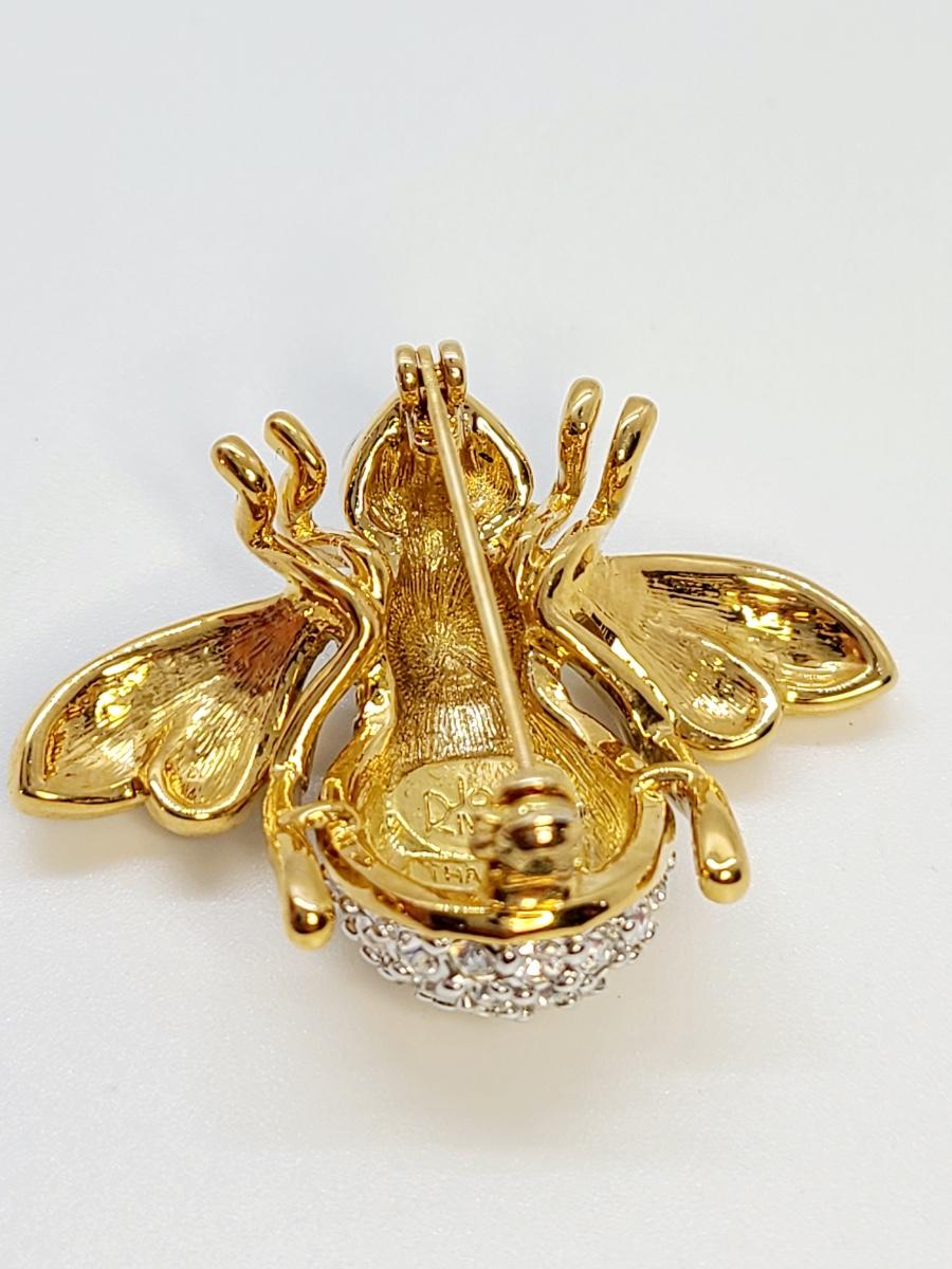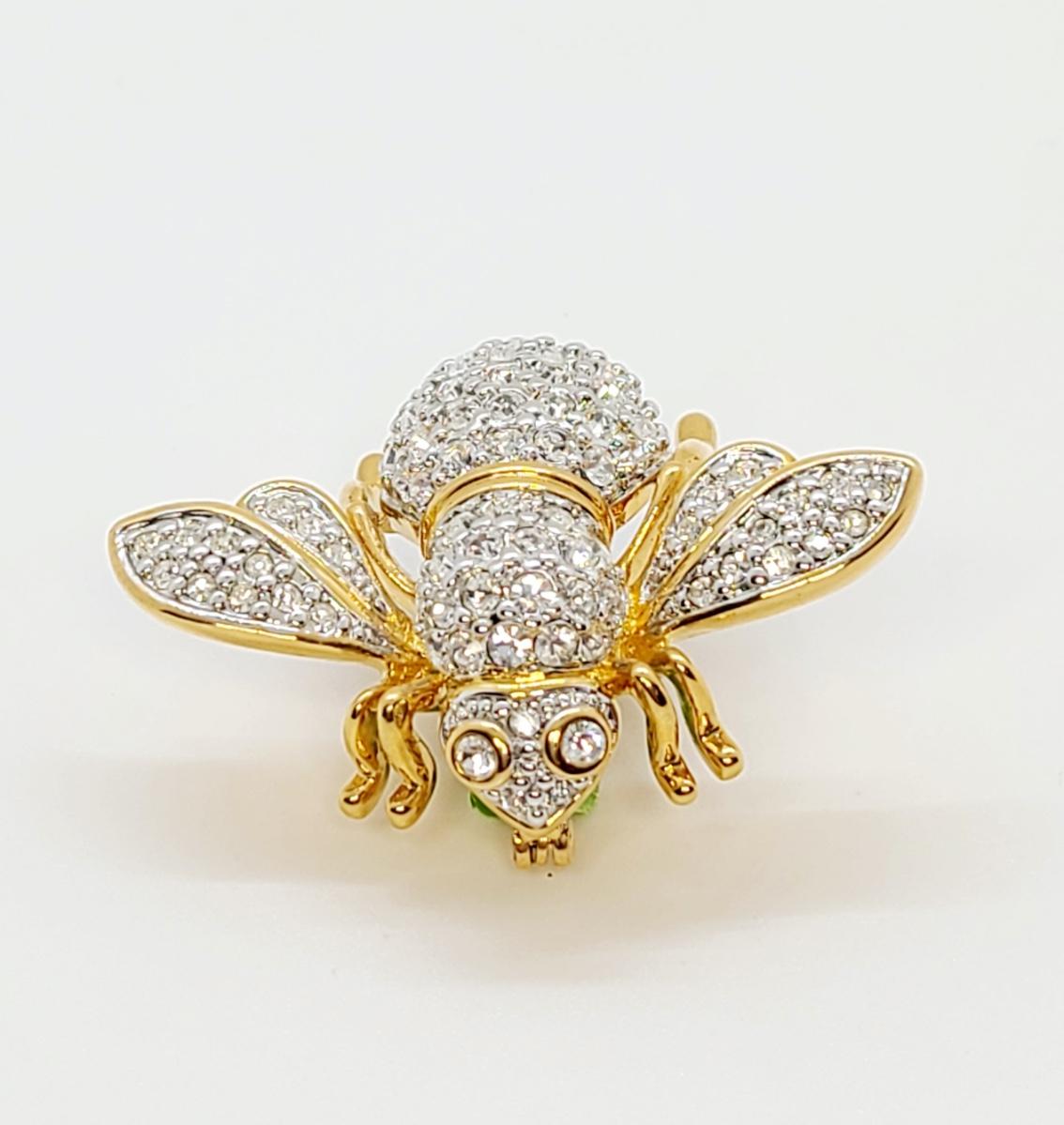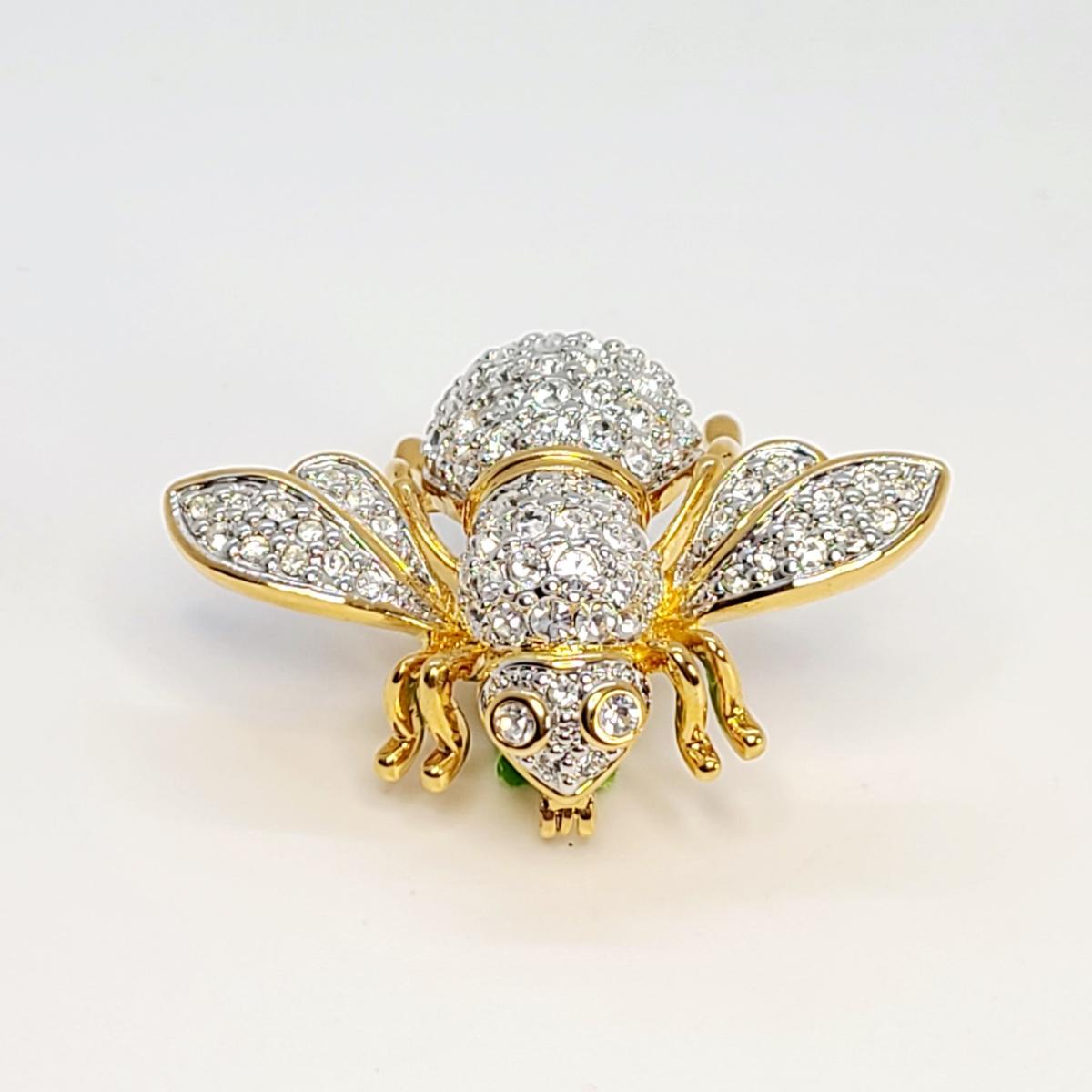 This signed piece is a Joan Rivers gold plated crystal bee pin, this has double 'queen bee" wings and clear crystal eyes.. These are very collectible! The pictures show condition, measurements if taken, and what is included in the lot. Due to the large amount that we photograph and the time frame, we are not always able to take measurements. All items unless noted, are pre-owned and have been used, and are untested. Thank you