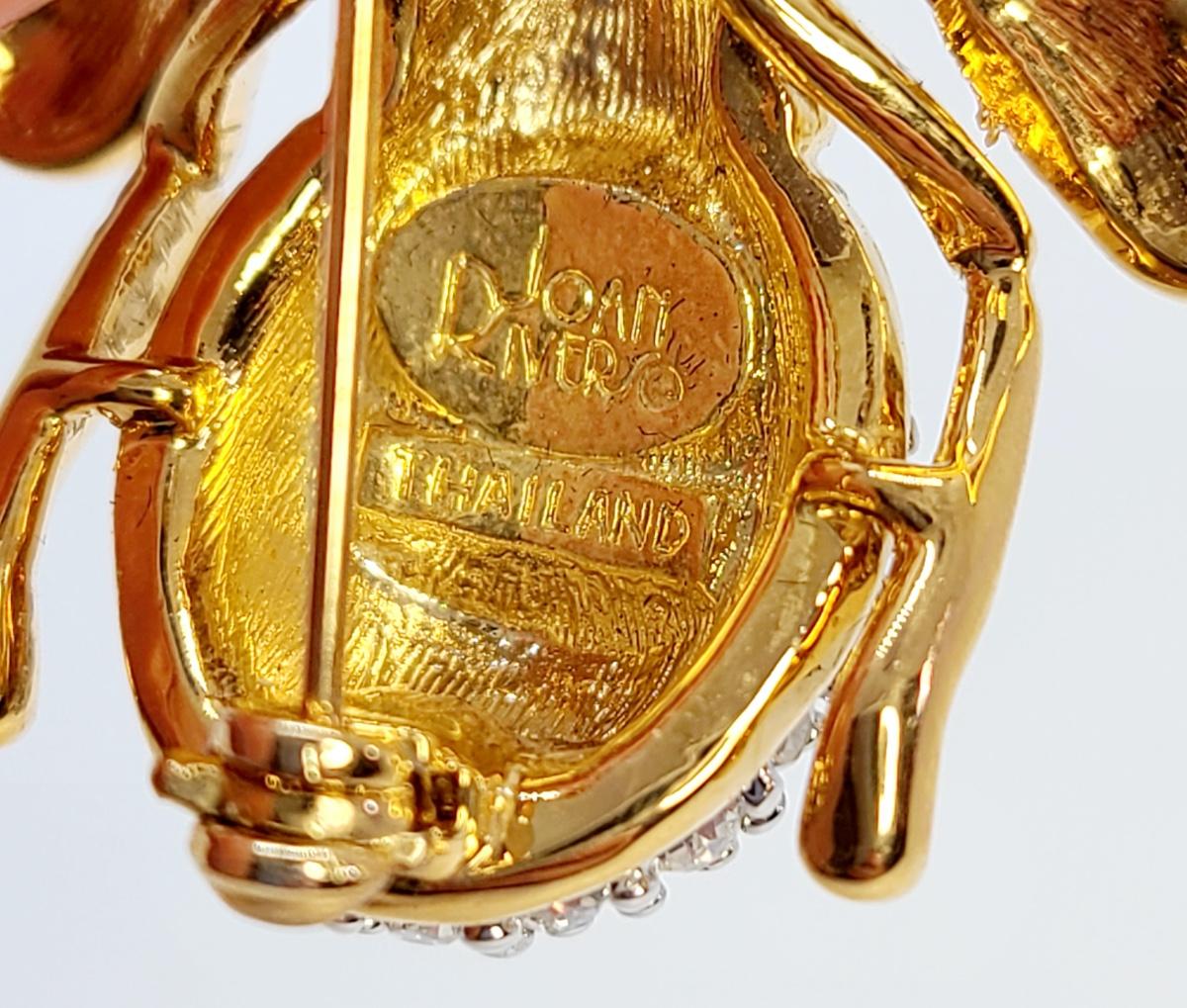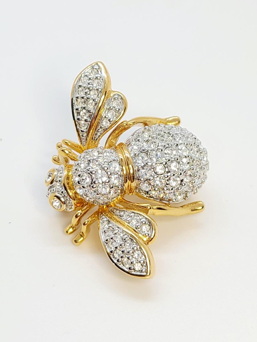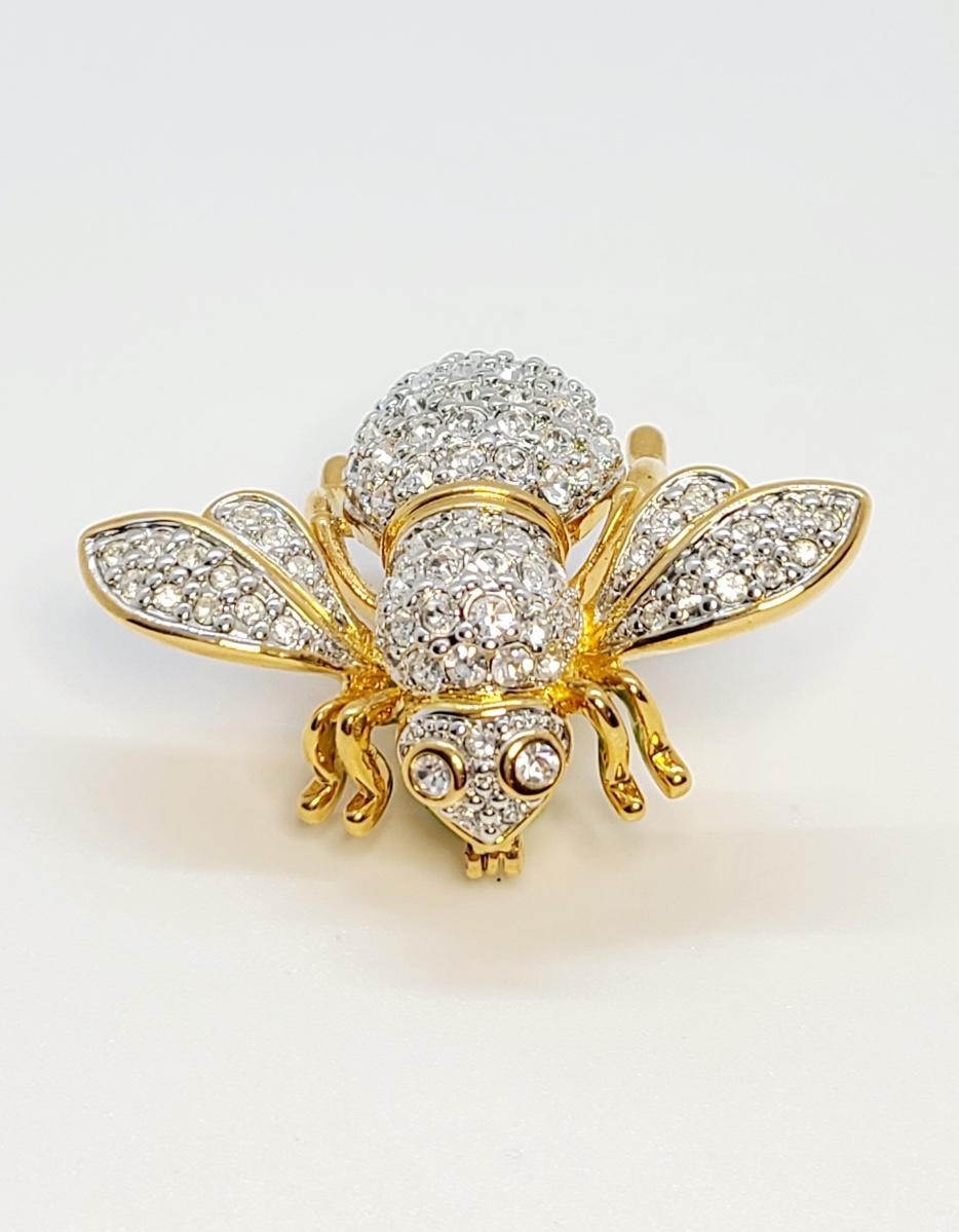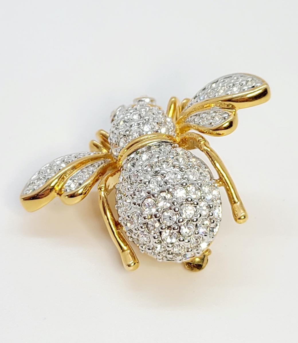 This signed piece is a Joan Rivers gold plated crystal bee pin, this has double 'queen bee" wings and clear crystal eyes.. These are very collectible! The pictures show condition, measurements if taken, and what is included in the lot. Due to the large amount that we photograph and the time frame, we are not always able to take measurements. All items unless noted, are pre-owned and have been used, and are untested. Thank you