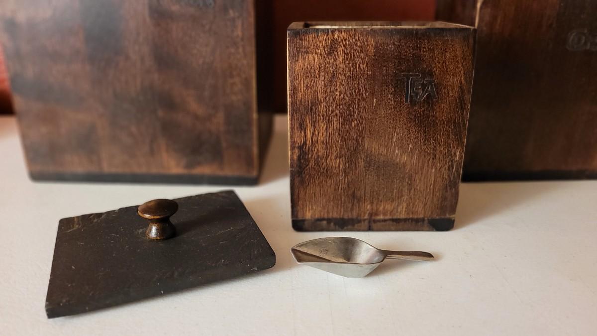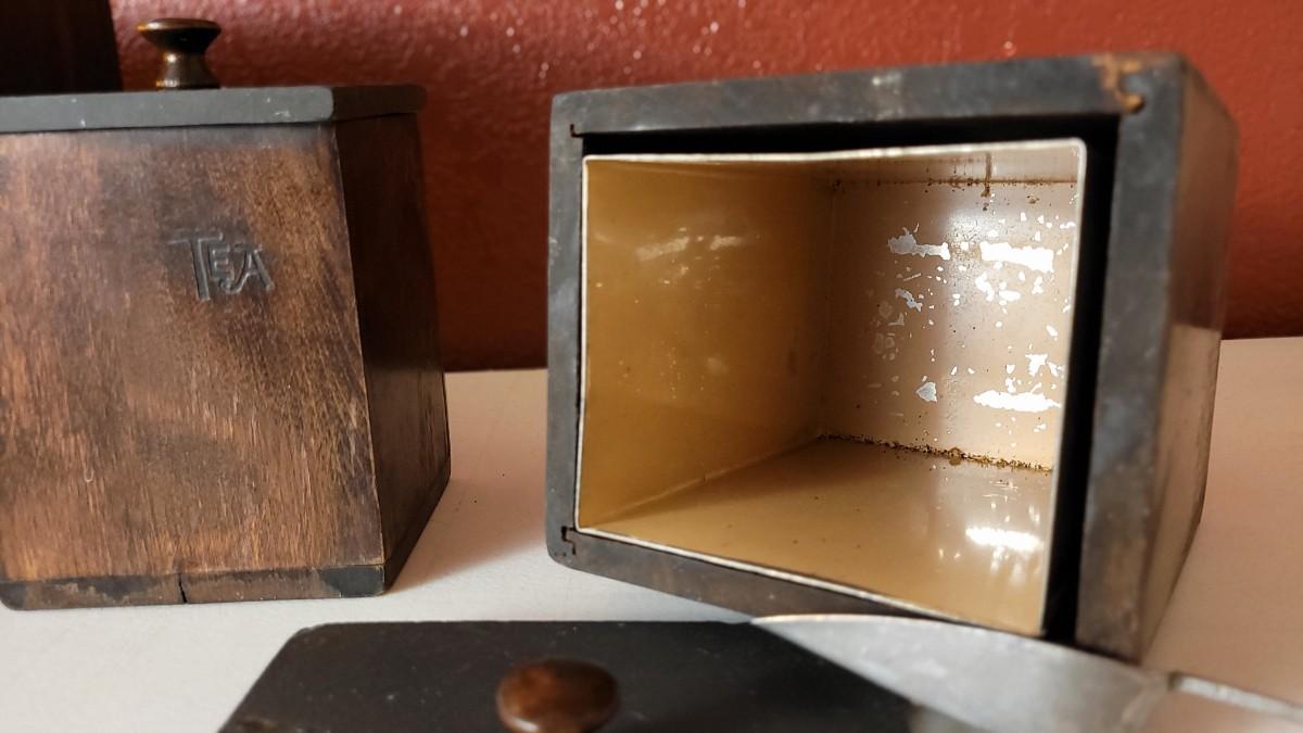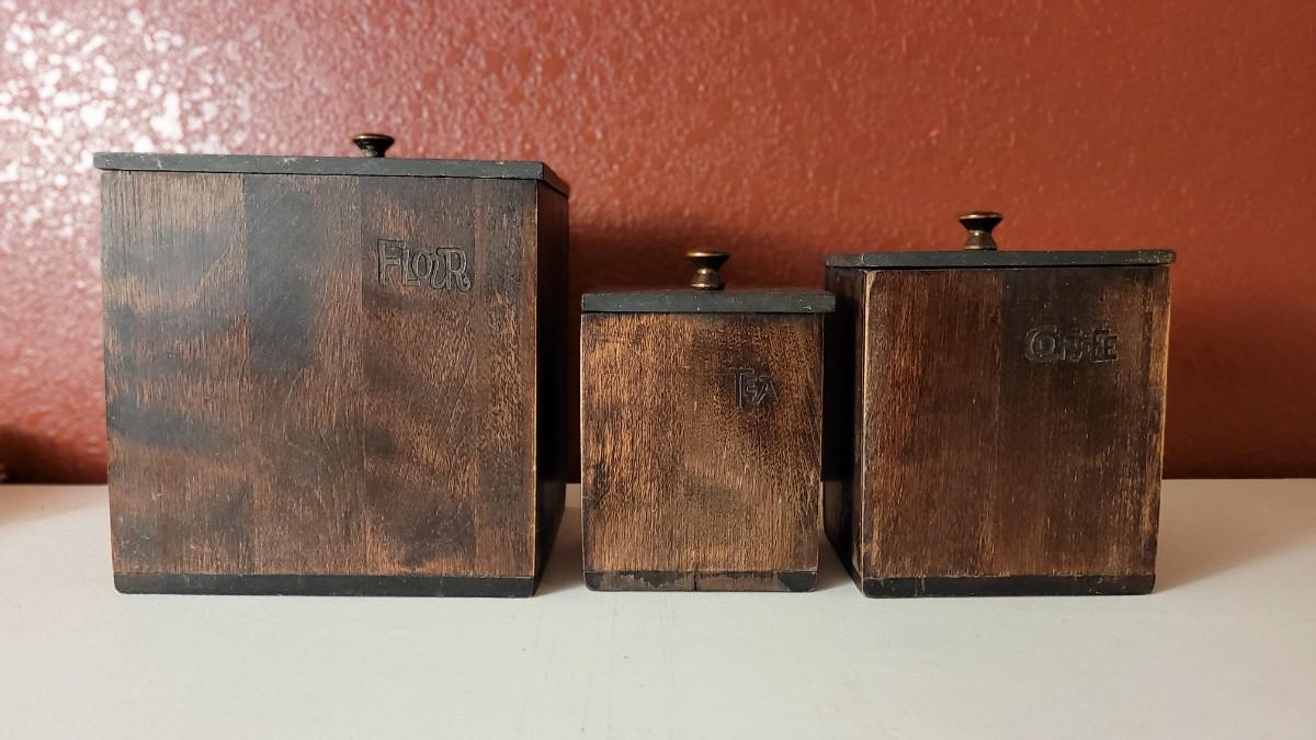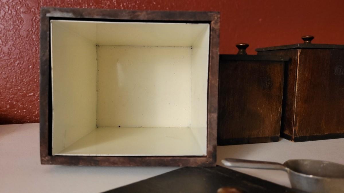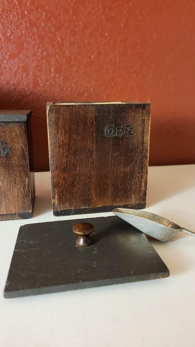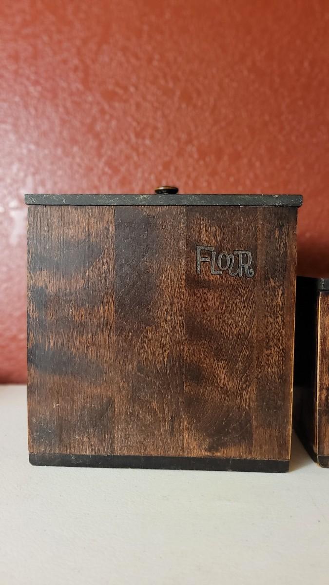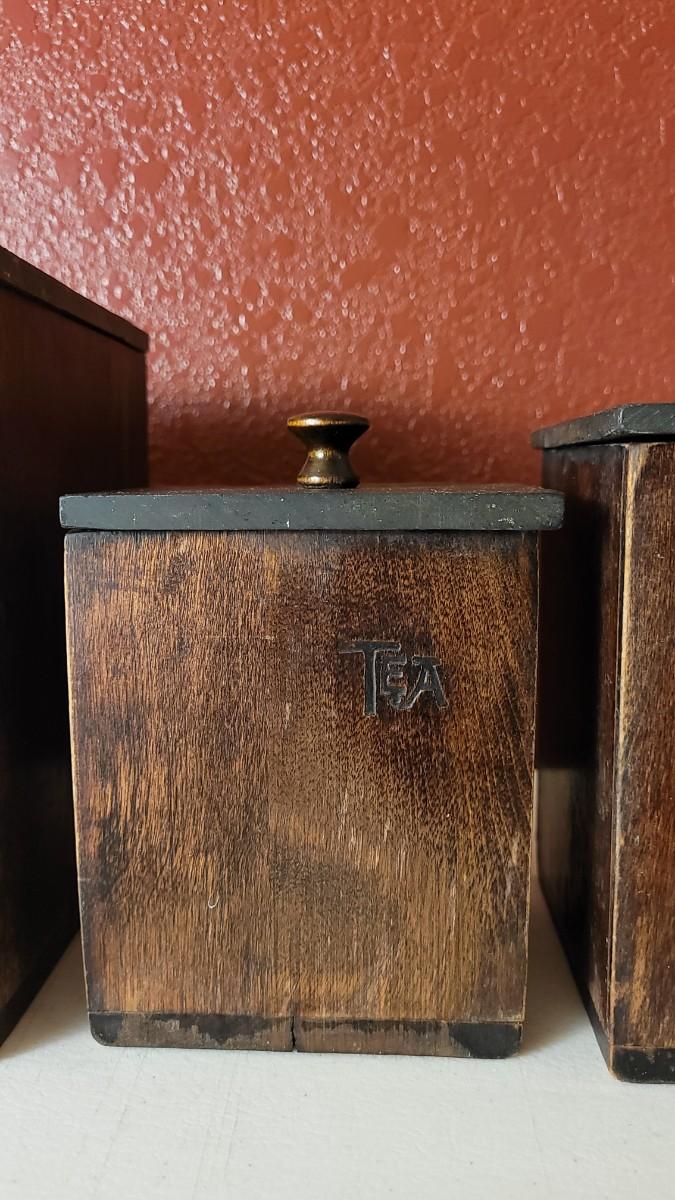 This lot features a 3-piece Canister Set that includes FLOUR, TEA & COFFEE Selections. All have their own metal interior Liner and scoop.
