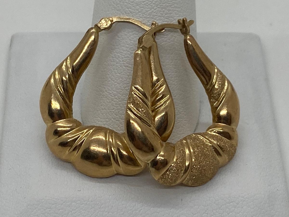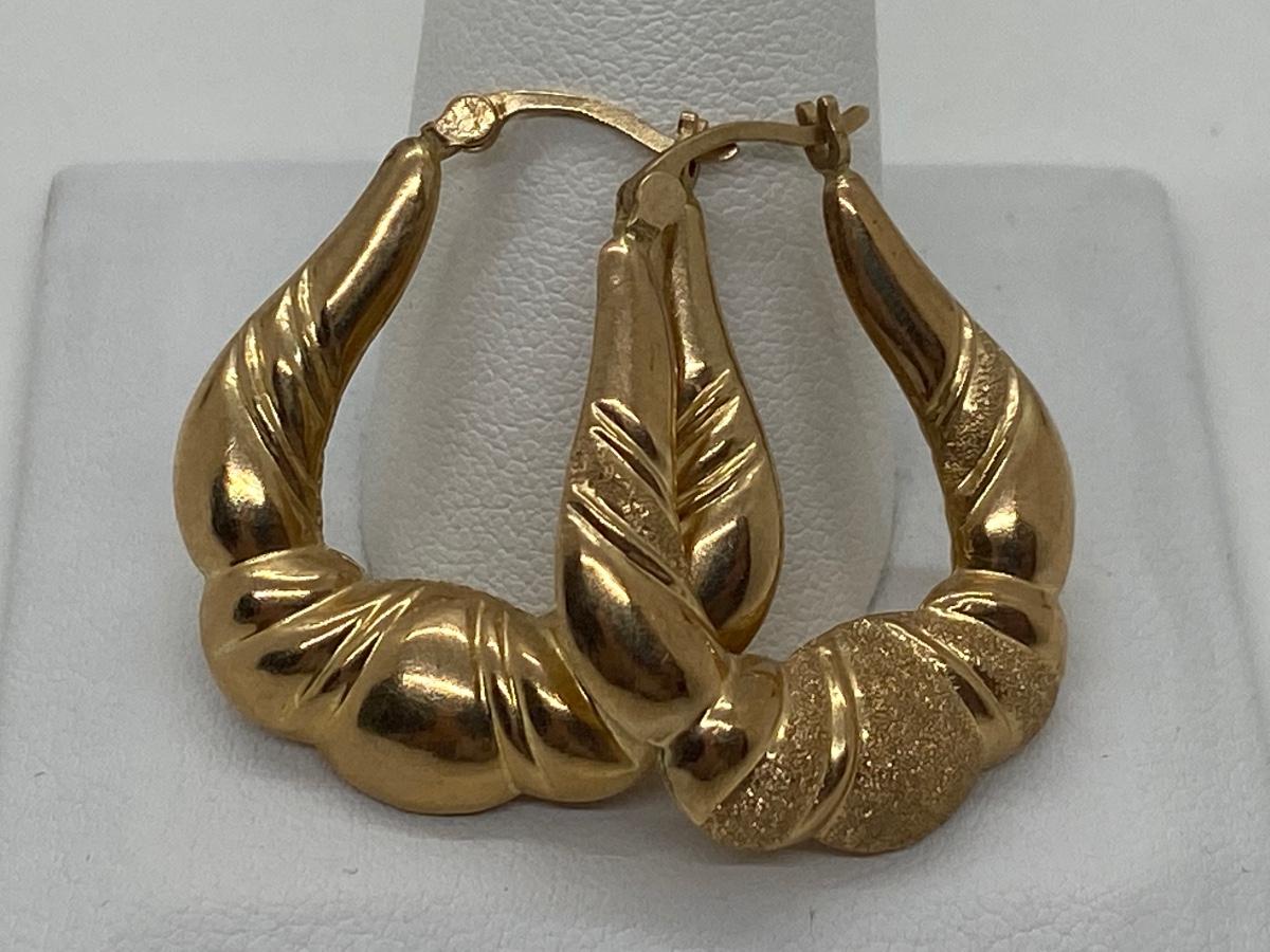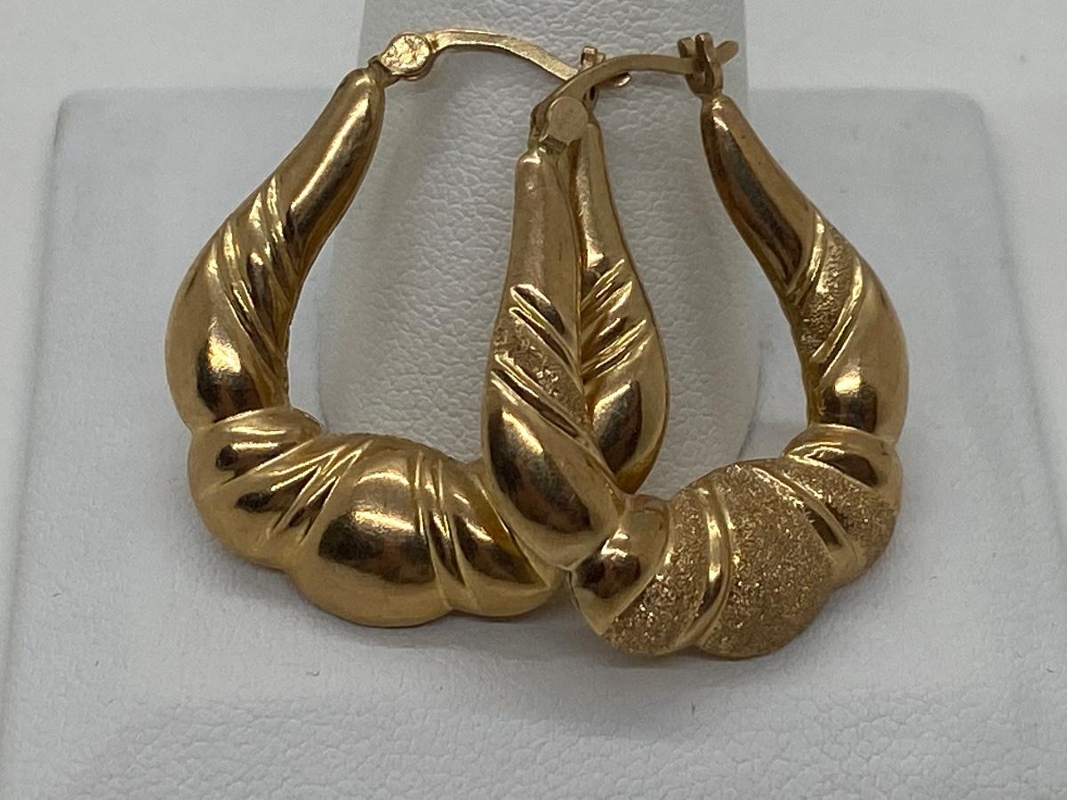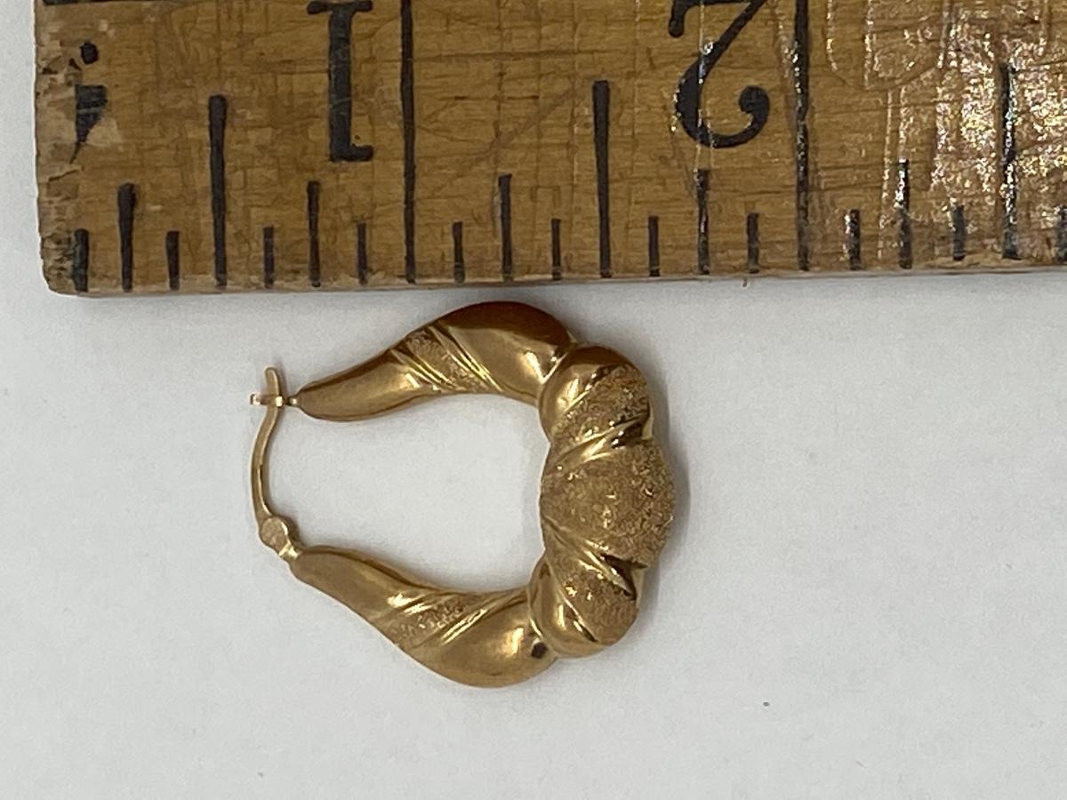 Lot 6: 14k SLC Yellow Gold Shrimp Scalloped Pierced Hoop Earrings with Applied Gold Flake